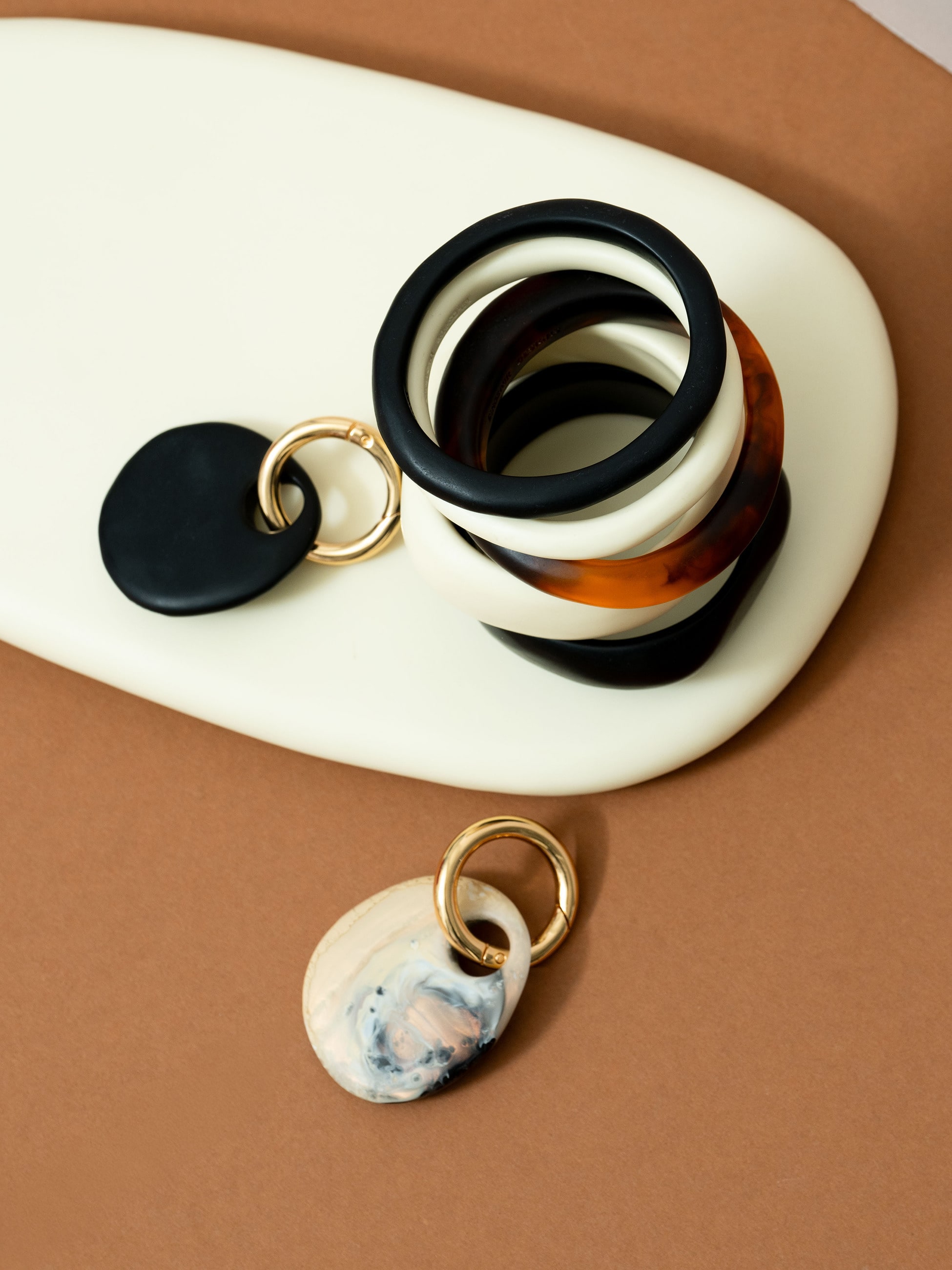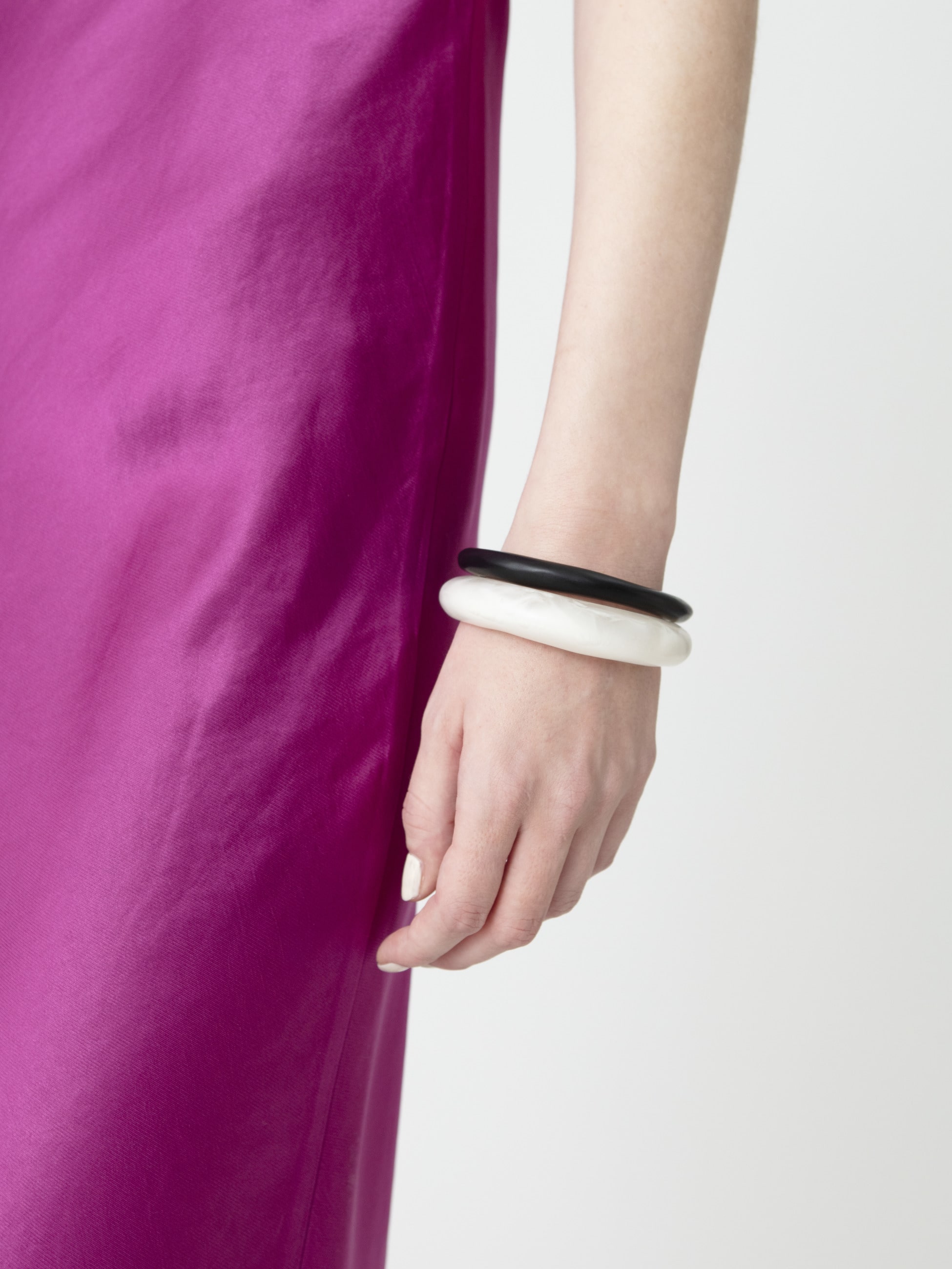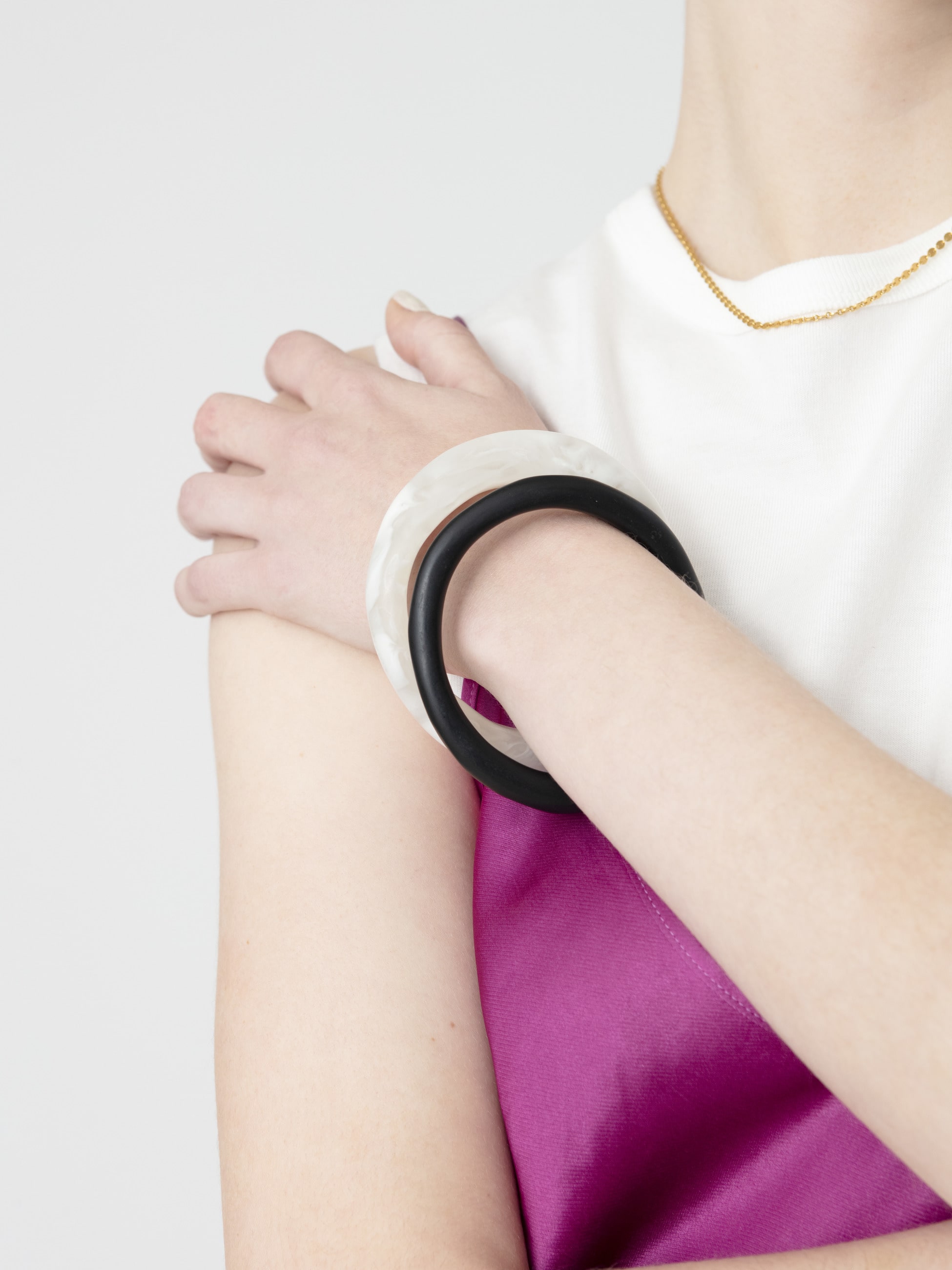 カラーラインナップが豊富なウィッシュボーンバングルは、様々なスタイルにマッチし、カラーを組み合わせた重ねづけもおすすめです。カジュアルからラグジュアリーまで、抜け感をつくるアイテムとしてミックスしていただくのも素敵です。