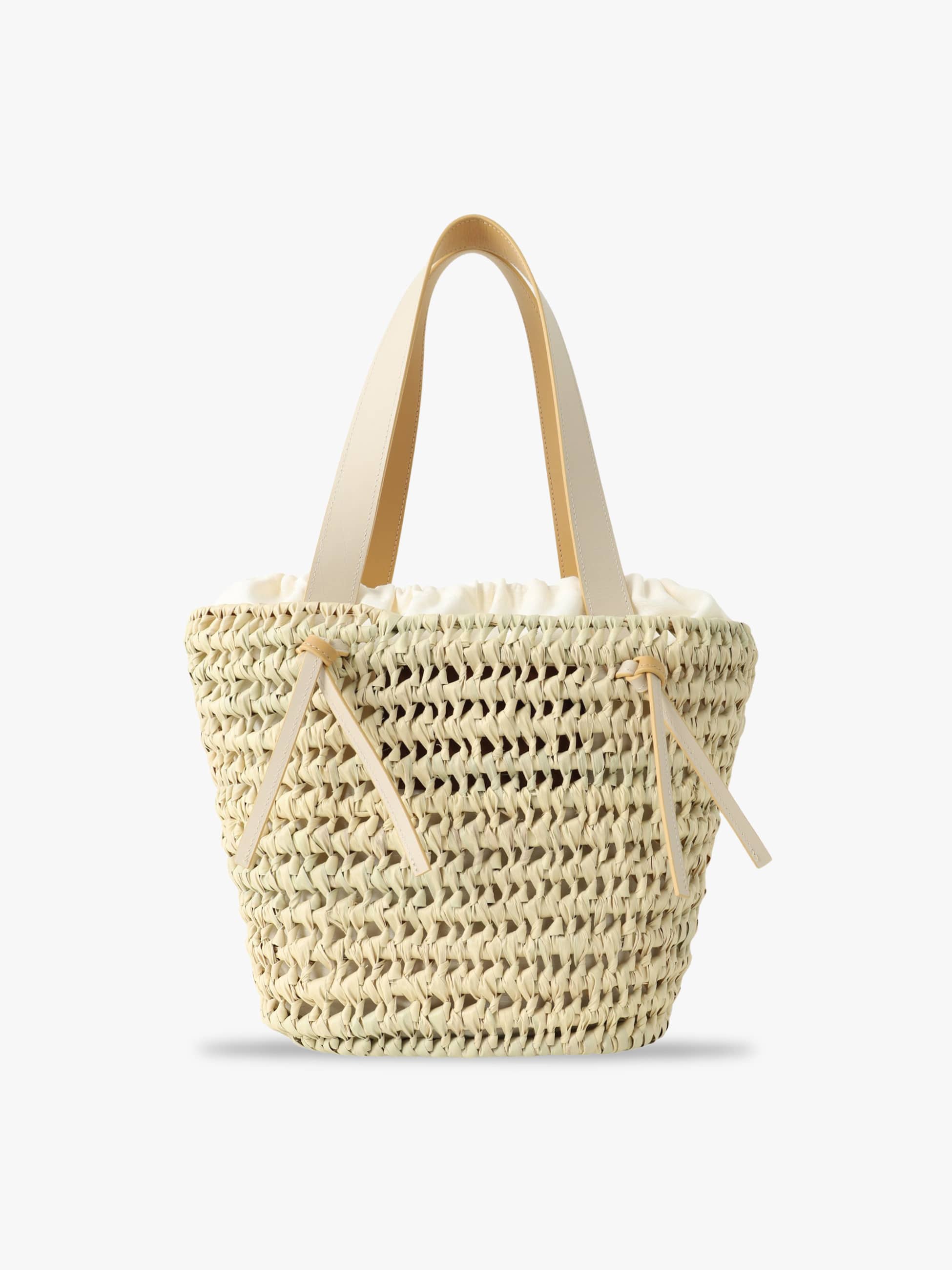- シーズンムードが高まるトートバッグは、トウモロコシの葉を伝統的なウクライナの麦わら編み技法を用いて作られ、丁寧な手仕事のあたたかみを感じられる仕上がりに。しっかりと肩掛けもできるダブルハンドル仕様で、コットン製の巾着ポーチが付属しています。