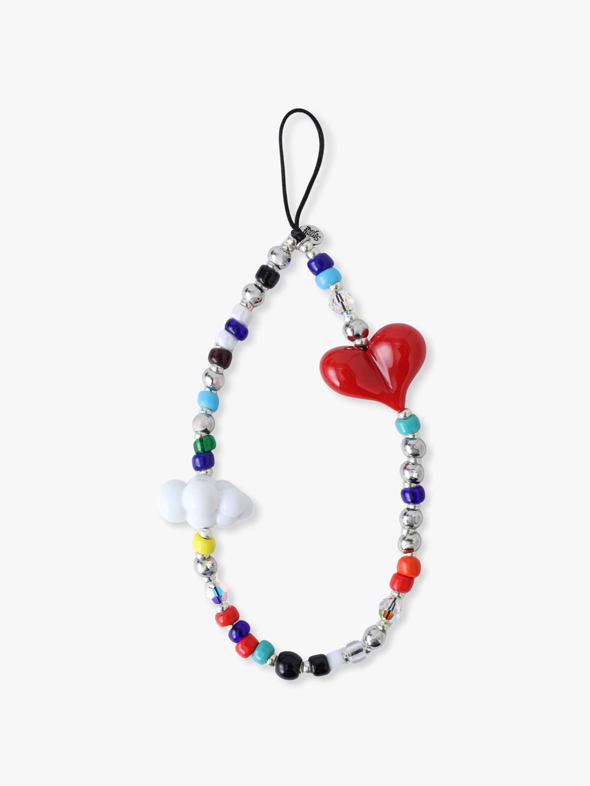 雲とハートのモチーフに、全体に散りばめられたカラフルなビーズがとびきりキュートなストラップです。ロンドンで一つ一つ手作業で作られている、特別感のあるアイテムです。