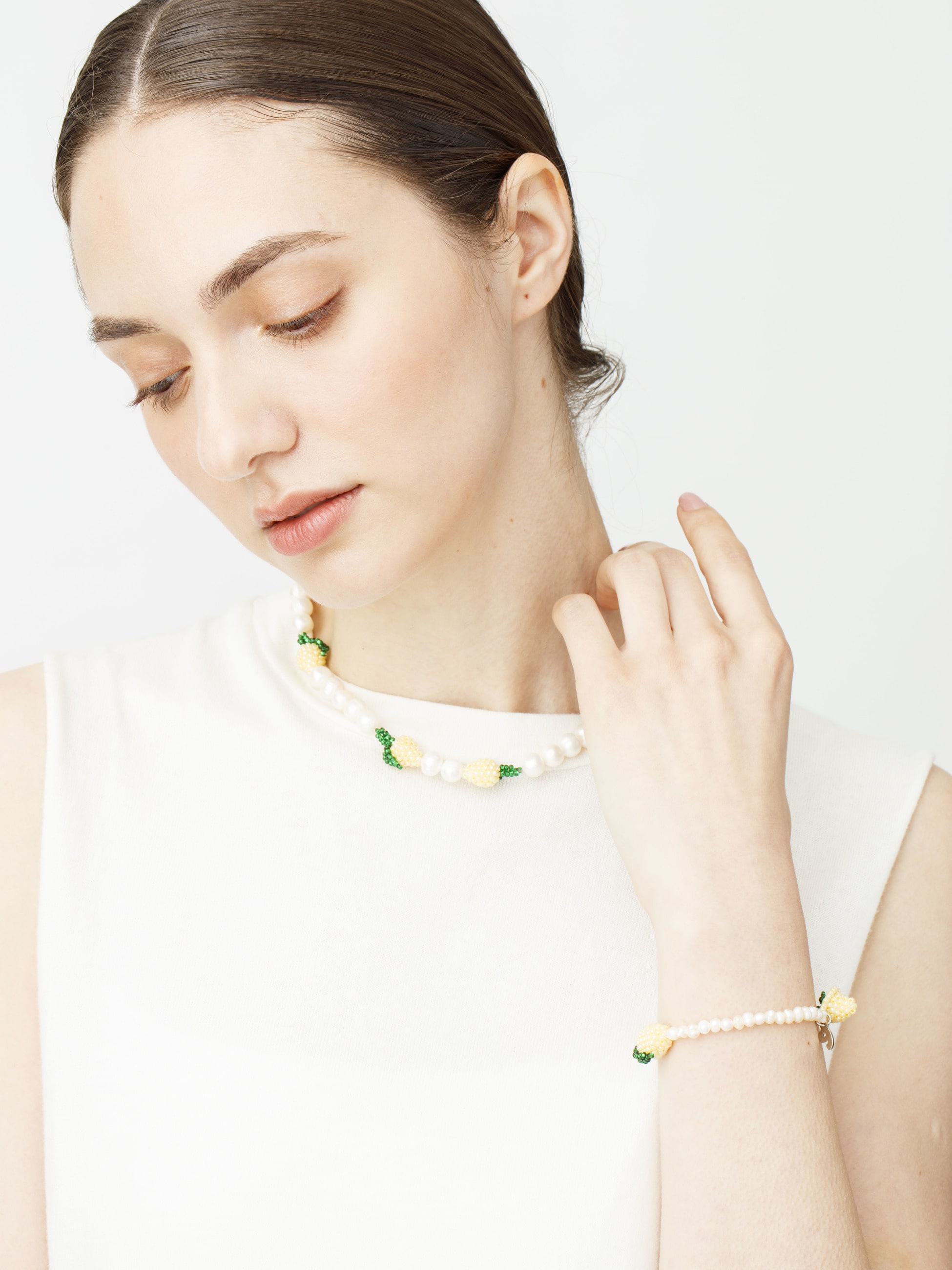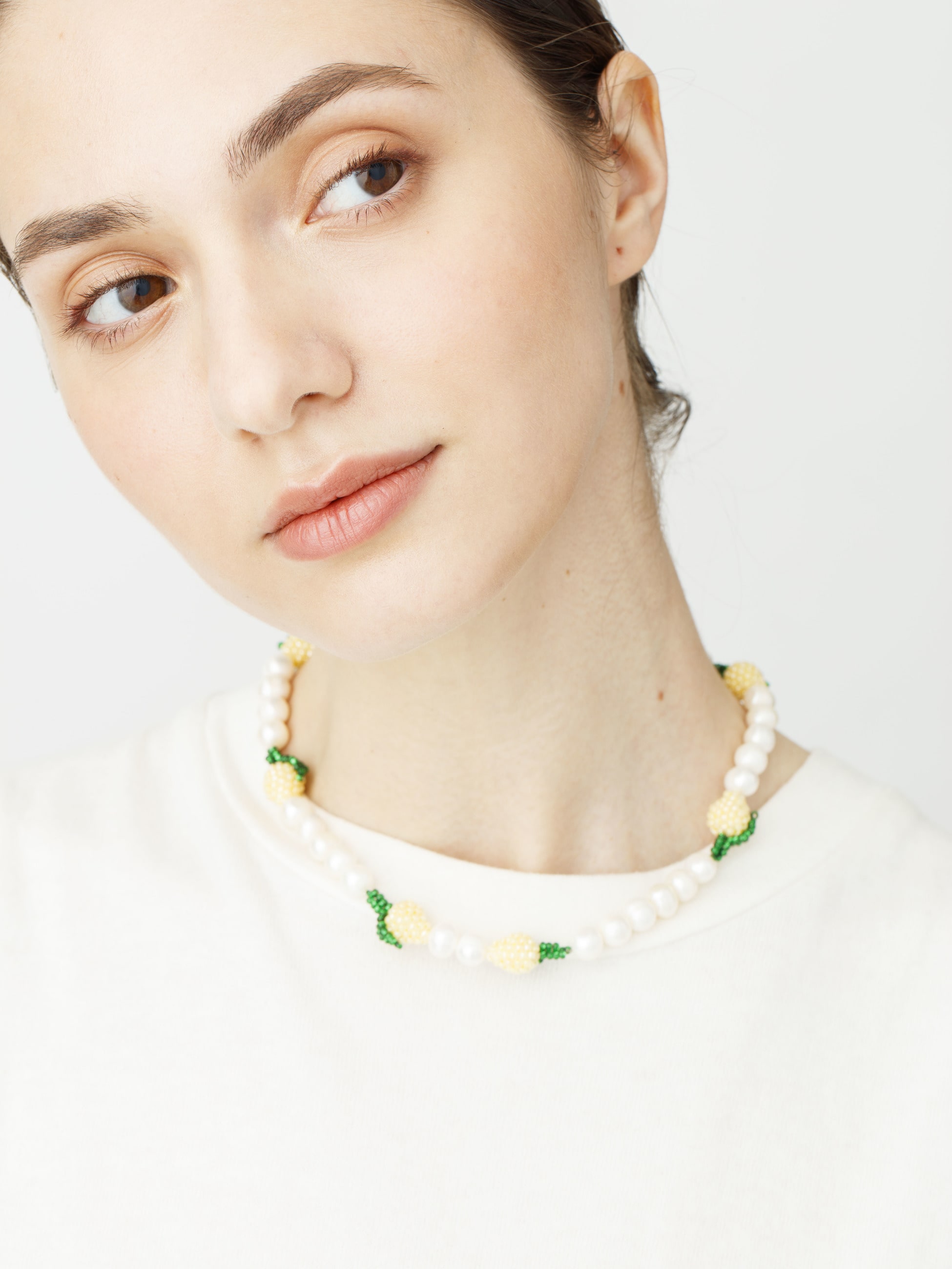 - 高品質のガラスビーズを使用し、職人によって1点ずつ生み出されるネックレスは、淡水パールの個性豊かな艶感と、愛らしいレモンモチーフが首元を彩ります。コーディネートに遊び心をプラスする、Pura Utzらしいデザイン性が楽しめるアイテムです。