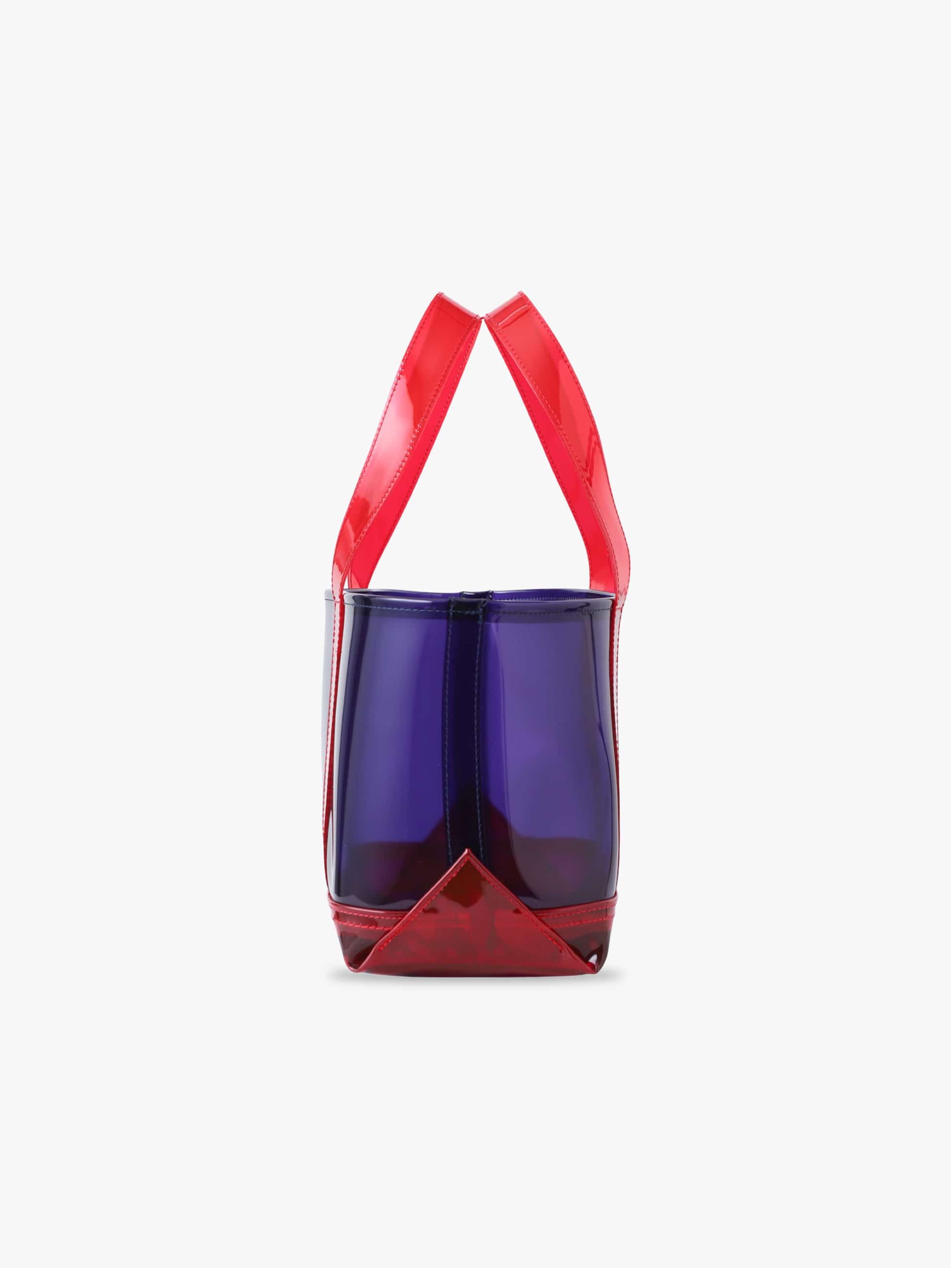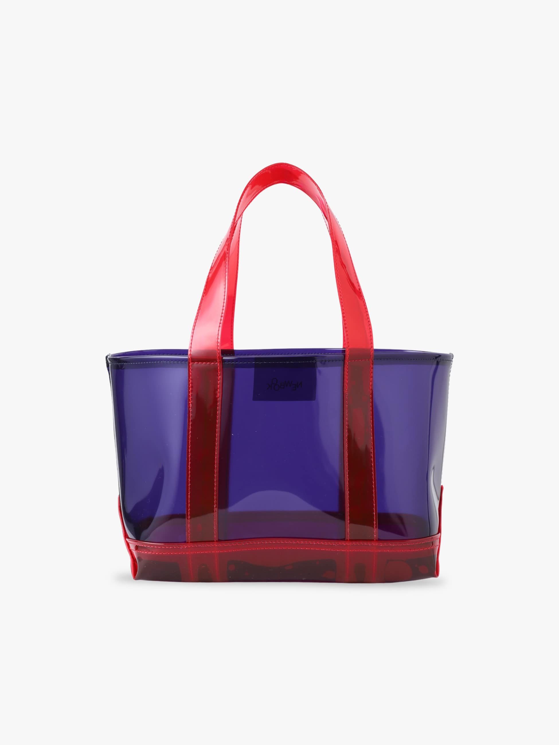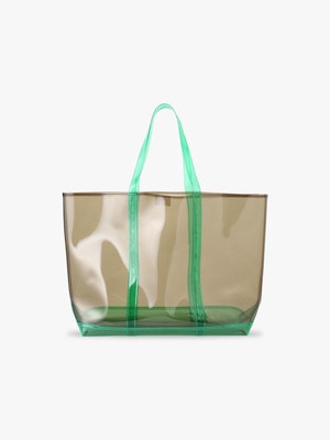 - 肉厚なPVC素材を使用したトートバッグ(SMALL)は、身の回りの小物を収めるのに適した、持ち運びやすいコンパクトなサイズ感が特徴です。クリアな透明感やツヤが、夏の装いに軽やかな印象をプラスします。耐久性や防水性を兼ね備えたPVC素材は、イージーケアで型崩れしにくいのも嬉しいポイントです。Lサイズ(クリア/ネイビー)や、別注カラーのMサイズ(オフホワイト/ブラウン)の展開もございます。