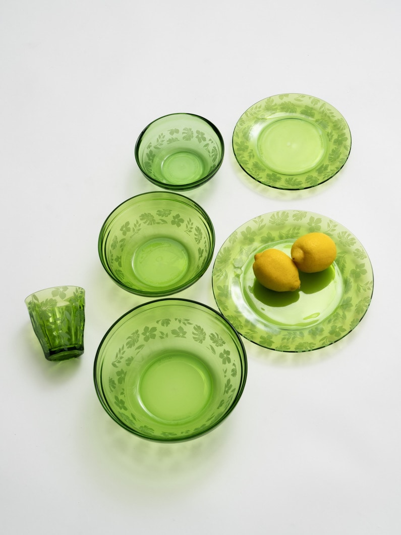 - 世界中で長く愛されているDURALEXのテーブルウェアは、シンプルで使いやすく、普段使いにぴったりのシリーズです。自然を感じさせる「ジャングル グリーン」カラーに、Ron Hermanオリジナルの柄をさりげなくプラスした、シンプルながらも存在感のあるデザインに仕上げたプレート、ボウル、グラスが登場。これからの暑い季節にぴったりな、見た目にも涼やかな器が食卓を彩ります。