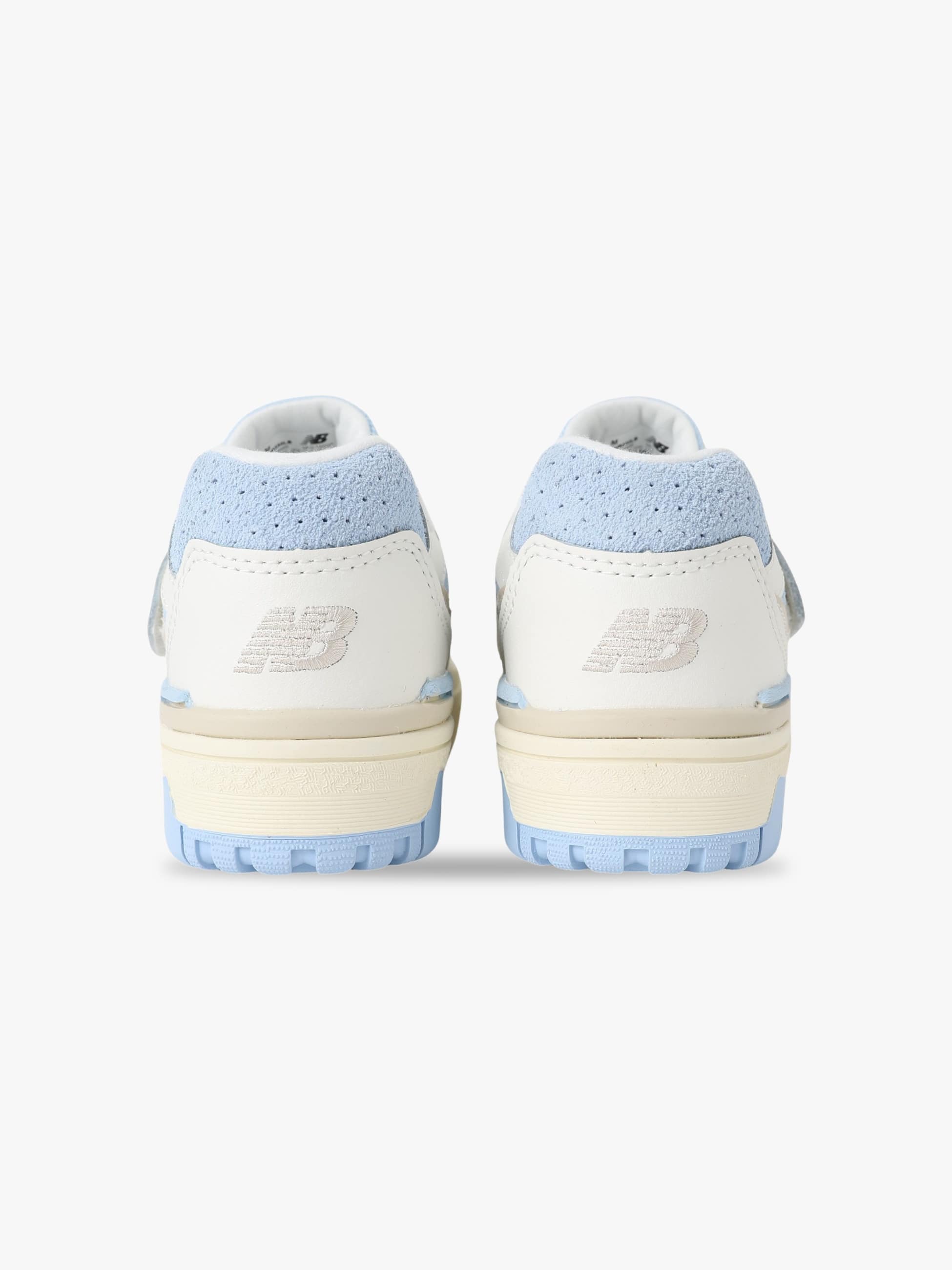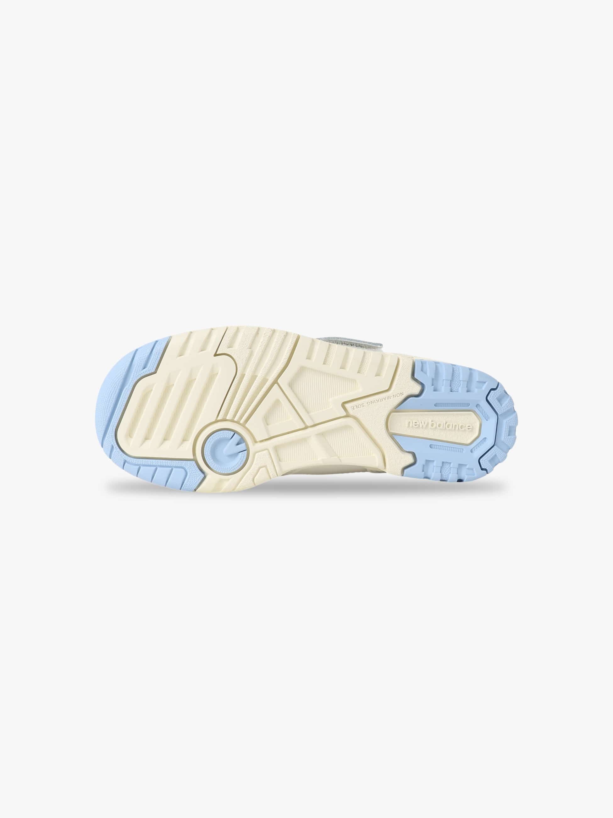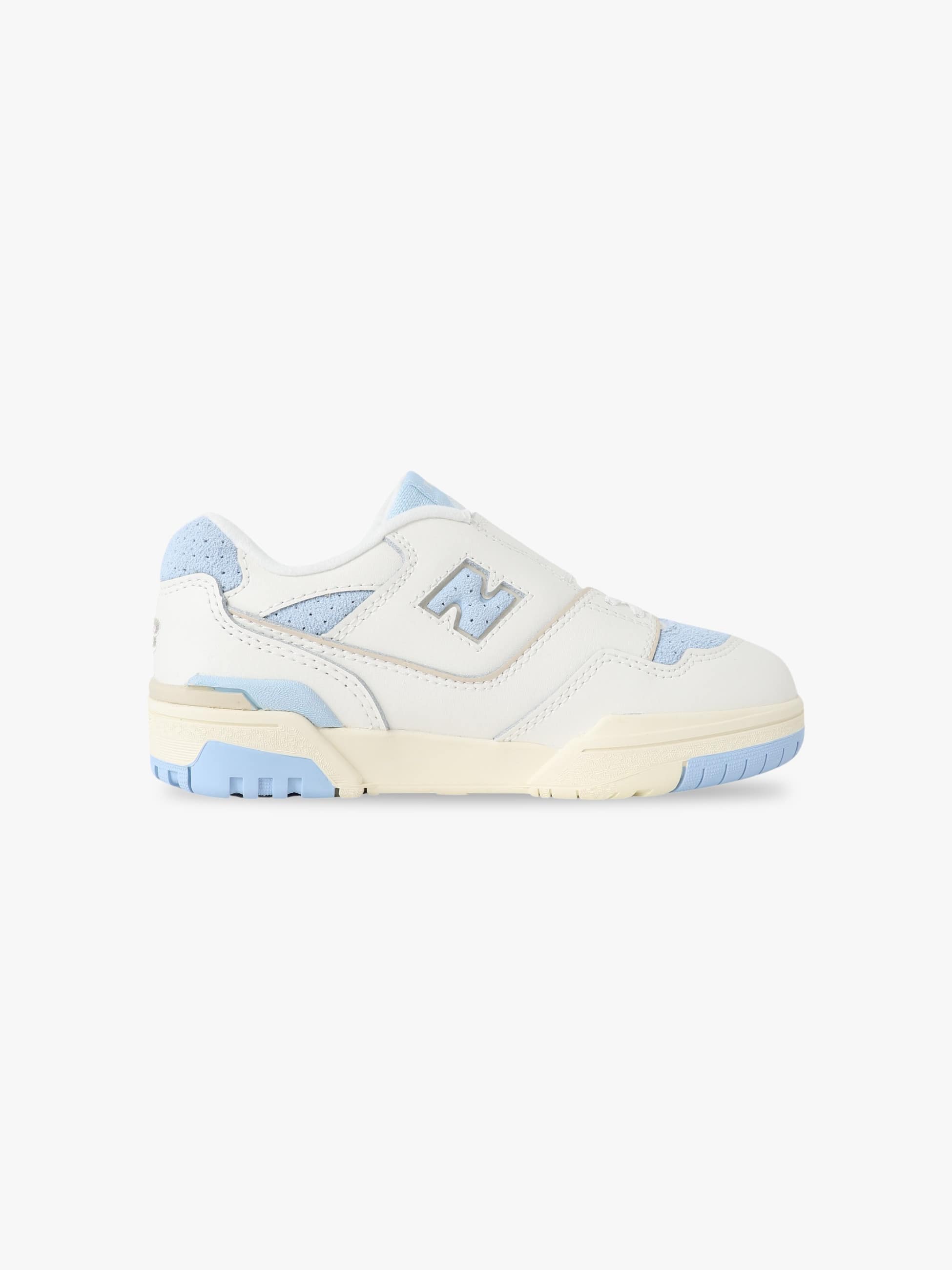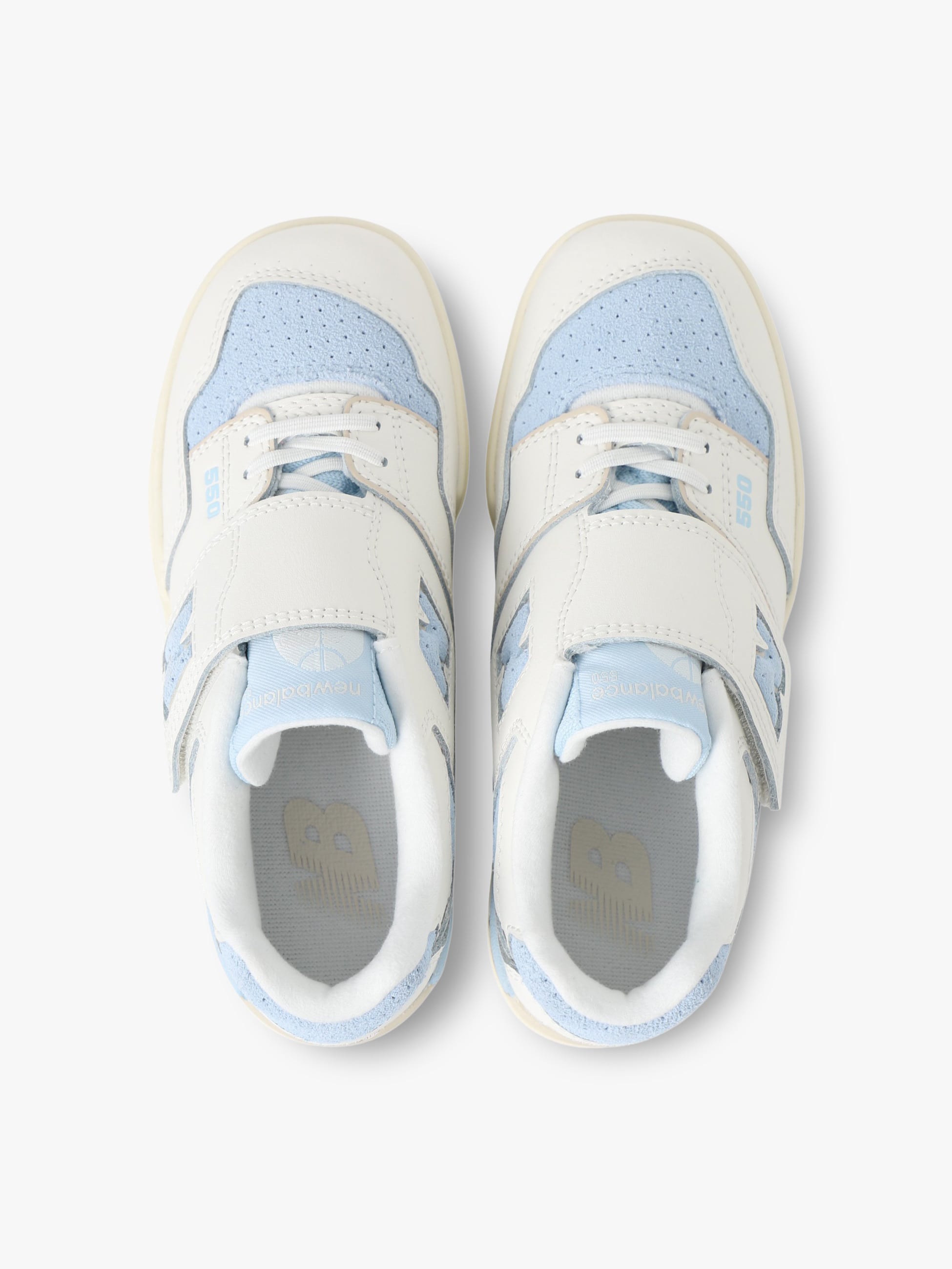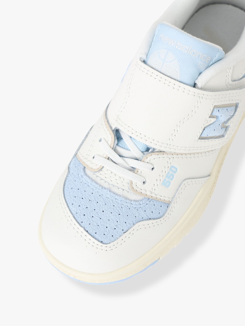 オリジナルの550ロートップのキッズ仕様シューズは、爽やかなカラーリングと面ファスナーで脱ぎ履きしやすいデザインが特徴です。流線形のシルエットが80年代後半のヘビーデューティデザインを踏襲しつつ、頑丈なレザーアッパーを使用しており、グリップ性と耐久性に優れたラバーアウトソールを備えています。アクティブに動きたいお子さまの足にしっかりとフィットする一足です。 -