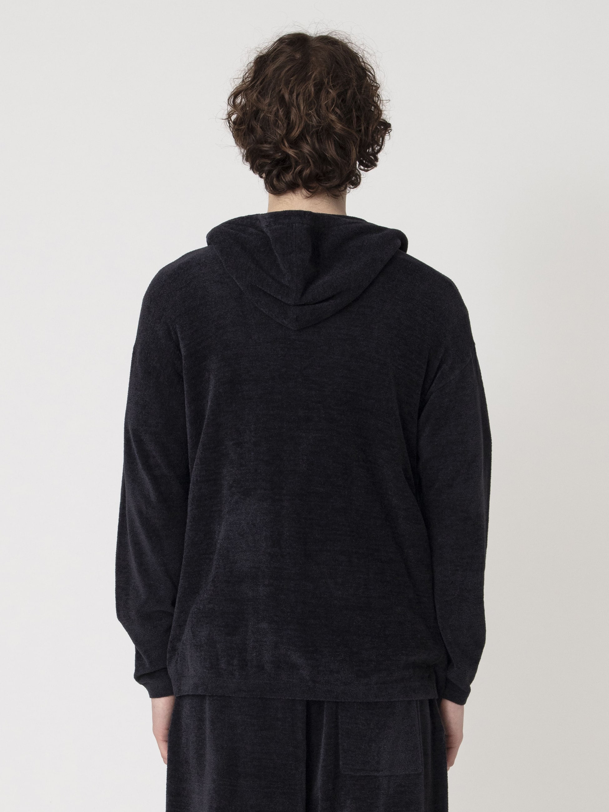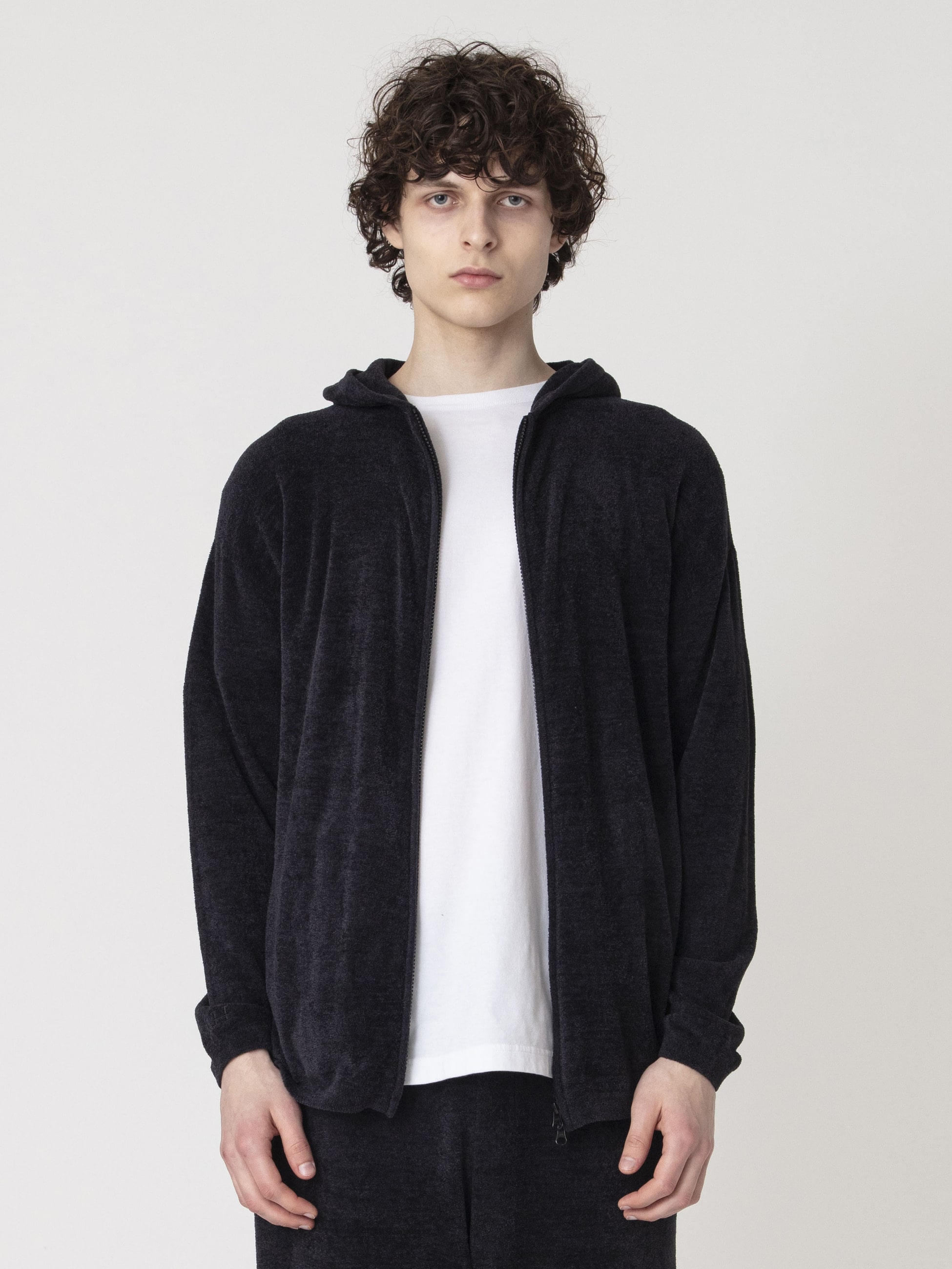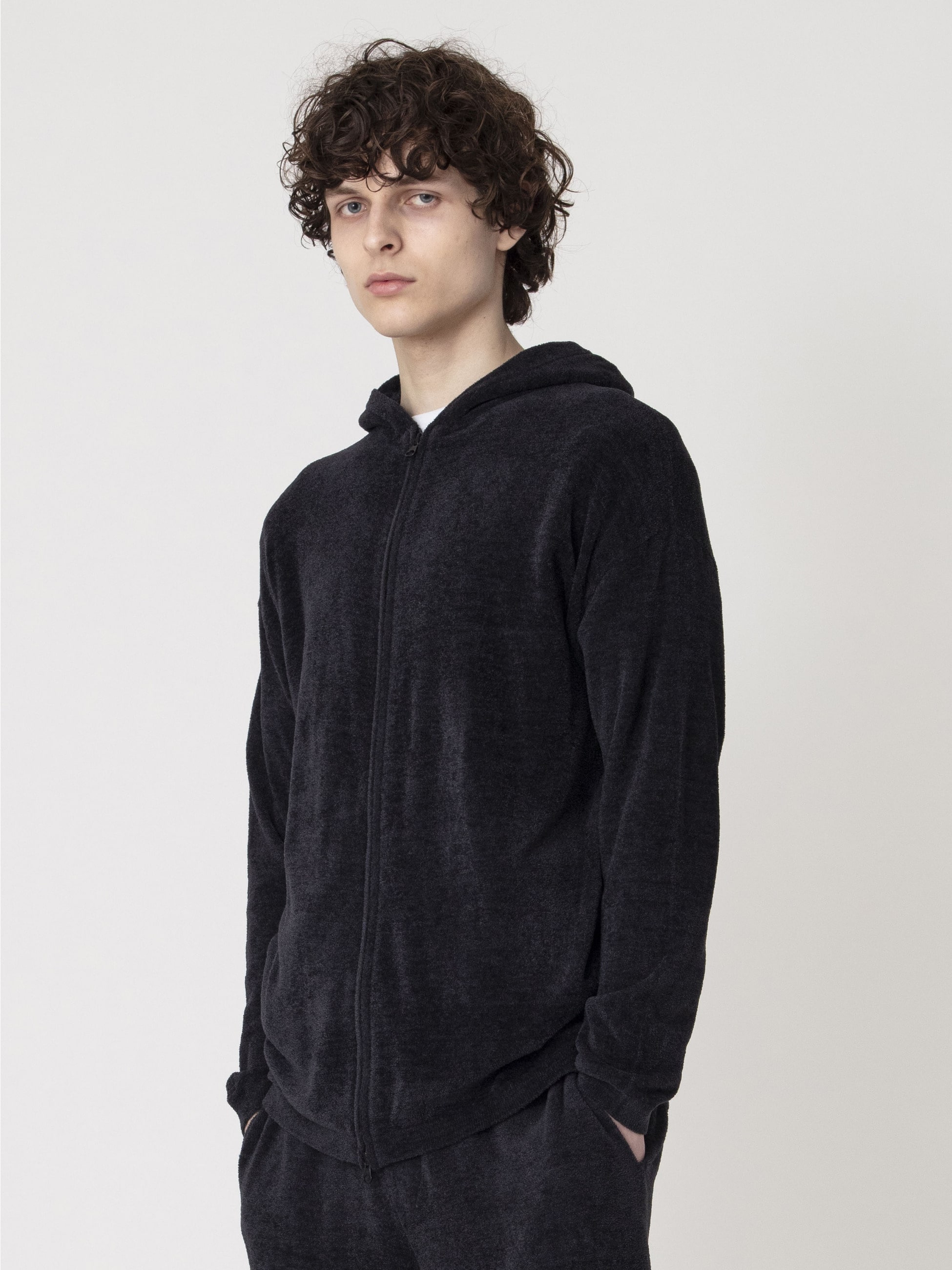 BAREFOOT DREAMS for Ron Hermanから、ナイロンとビスコースの混合素材であるCozyChic Ultra Lite素材を使用したジップフーディーが登場。ナイロンとビスコースの混合素材は、羽のように軽い着心地だけではなく、柔らかく美しい微光沢のある仕上がりです。また、深みのあるブラックのカラーリングや袖口に刺繍で施されたトーナルカラーのRH刺繍は、落ち着いた上品さを演出しています。さらに、冷水による洗濯洗いができるのも魅力のひとつ。程よくゆったりとしたフィットは、デイリーユースしやすい一着です。