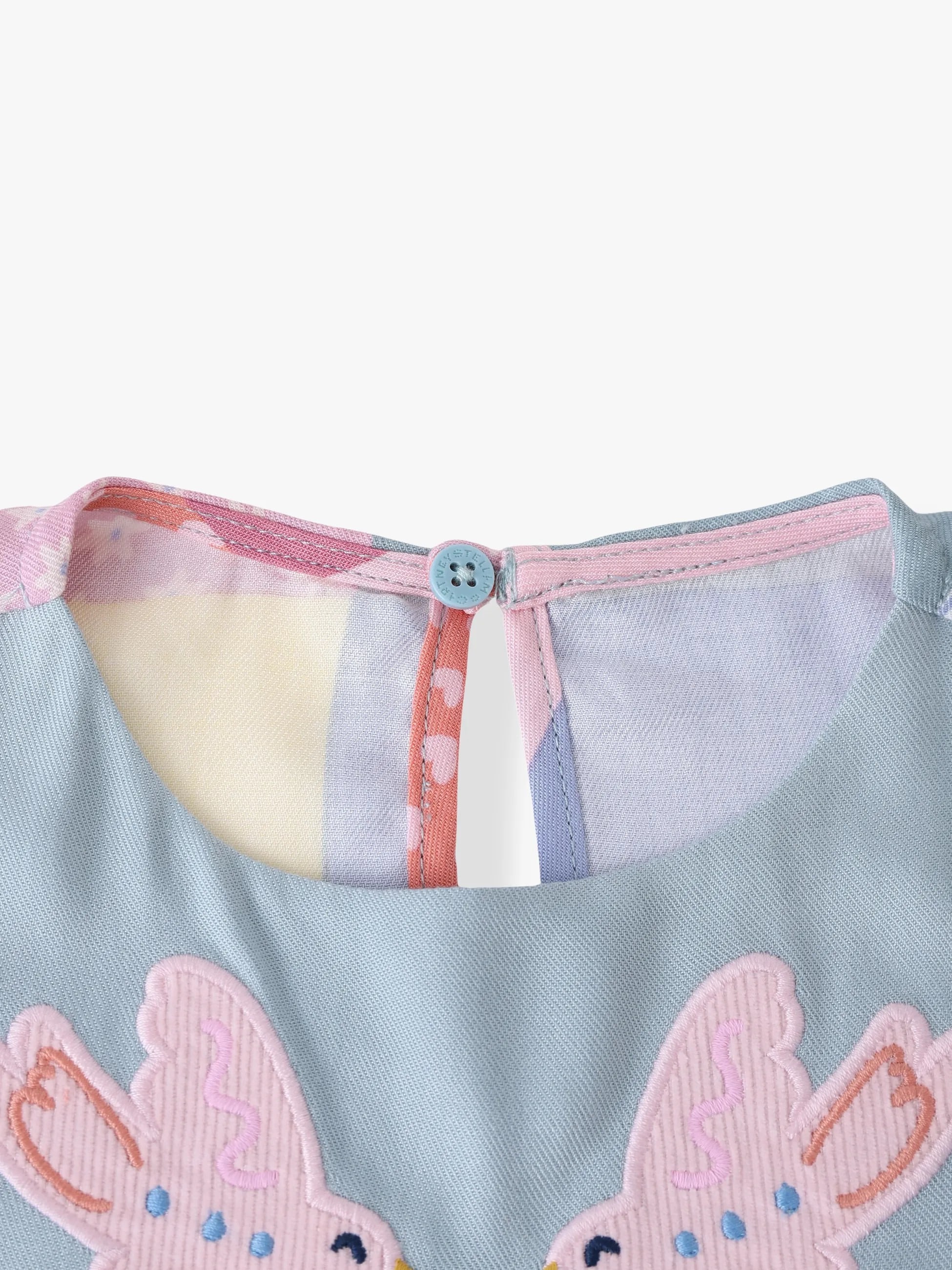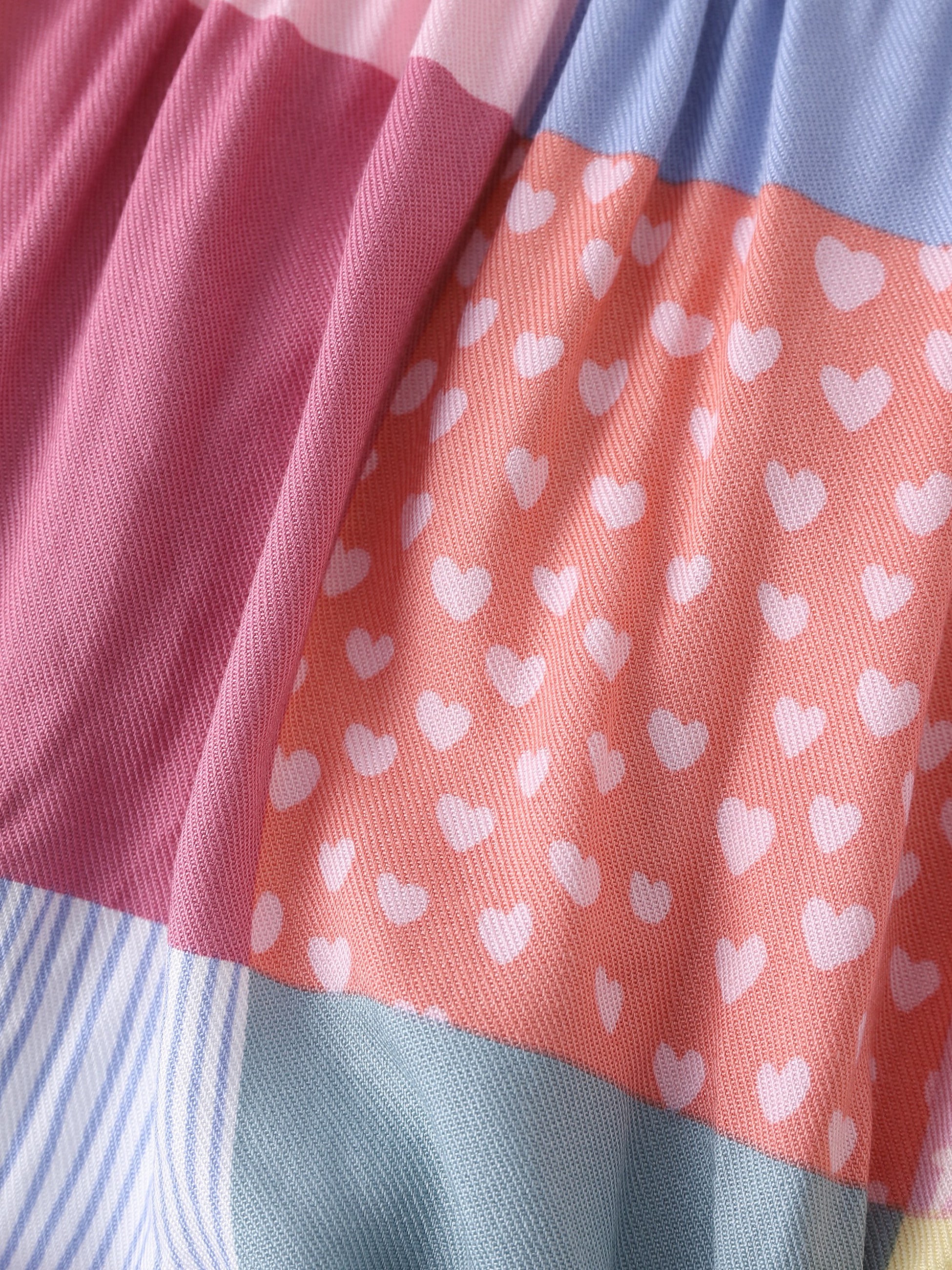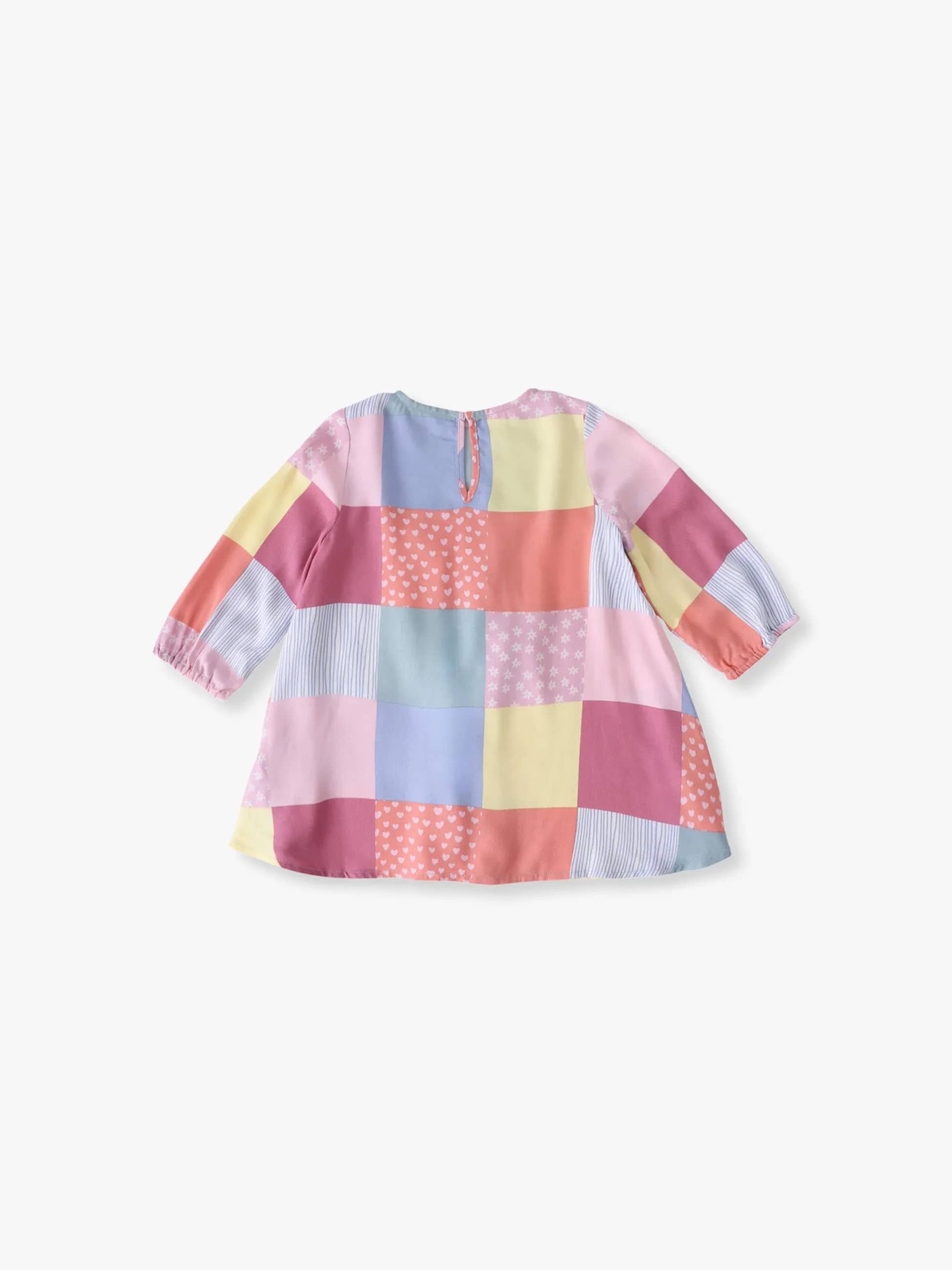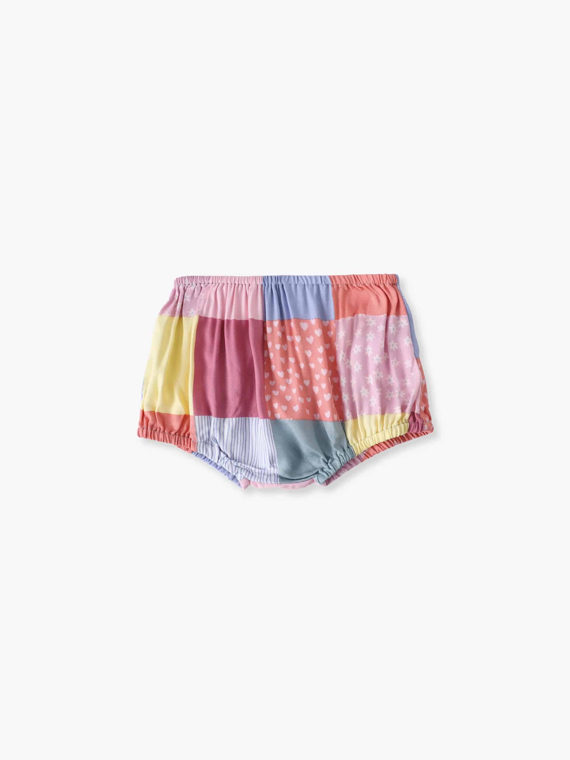カラフルなパネルデザインがとびきりキュートなセットアップは、1枚でコーディネートの主役になります。首元には平和の象徴とされる愛らしい2羽の白鳩があしらわれています。