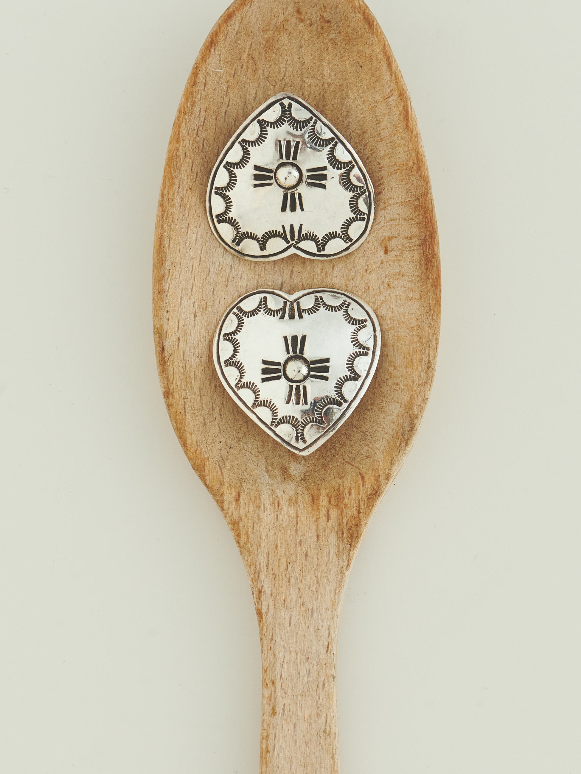 愛らしいハートモチーフのシルバーイヤリングは、表面の刻印模様が甘さを控えめにし、大人が身に付けやすいデザインです。大きめのサイズSilver 13G Heart Earringsもございます。※こちらの商品はハンドメイド仕様のため、一点ずつデザイン、刻印、歪み、左右差、傷、変色やサイズに個体差が生じますので予めご了承ください。ハンドメイドならではの良さをお楽しみください。