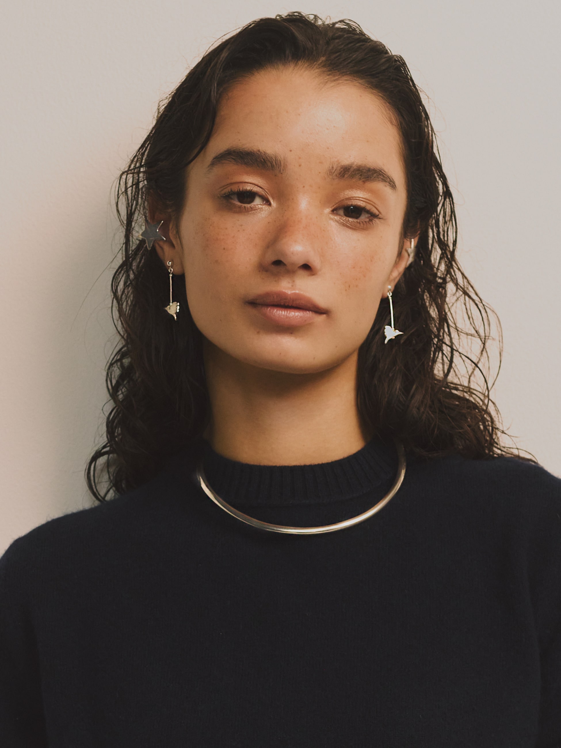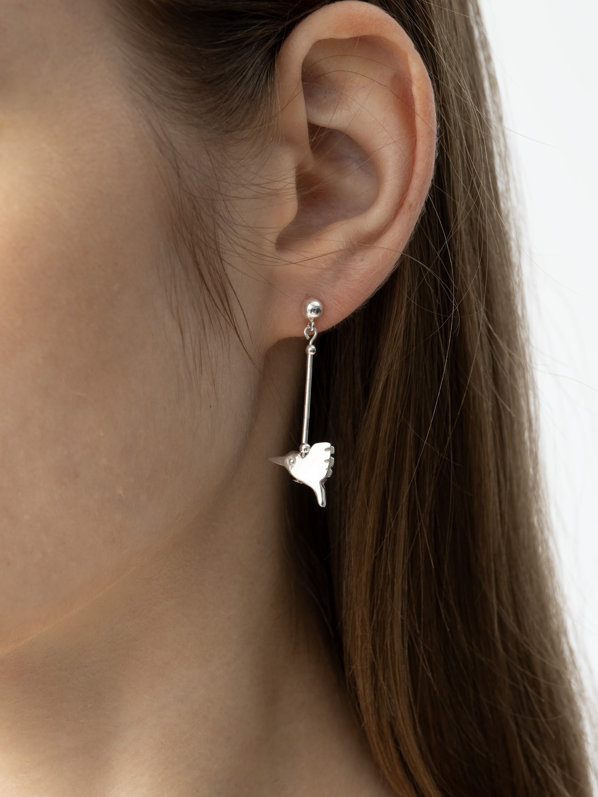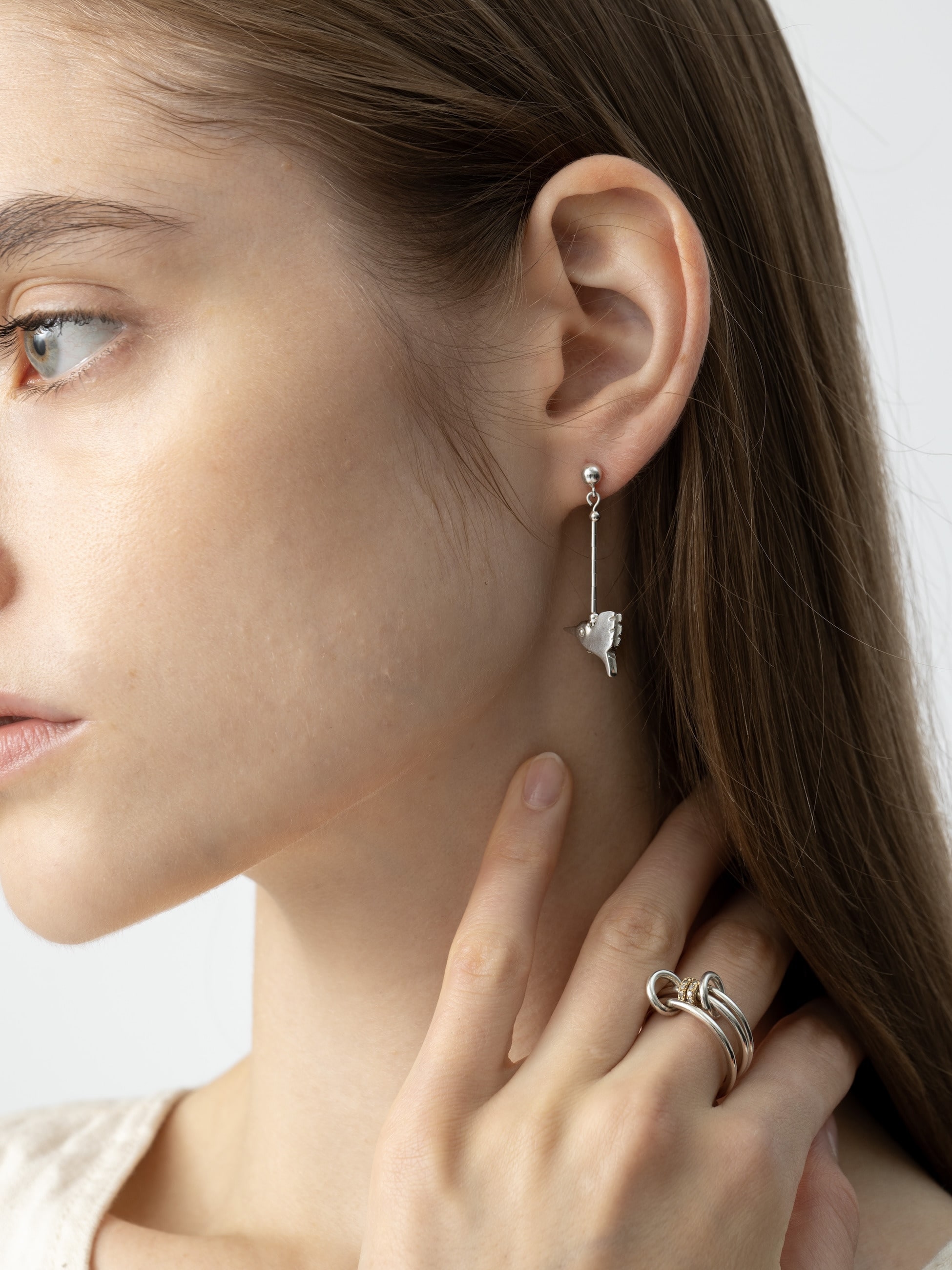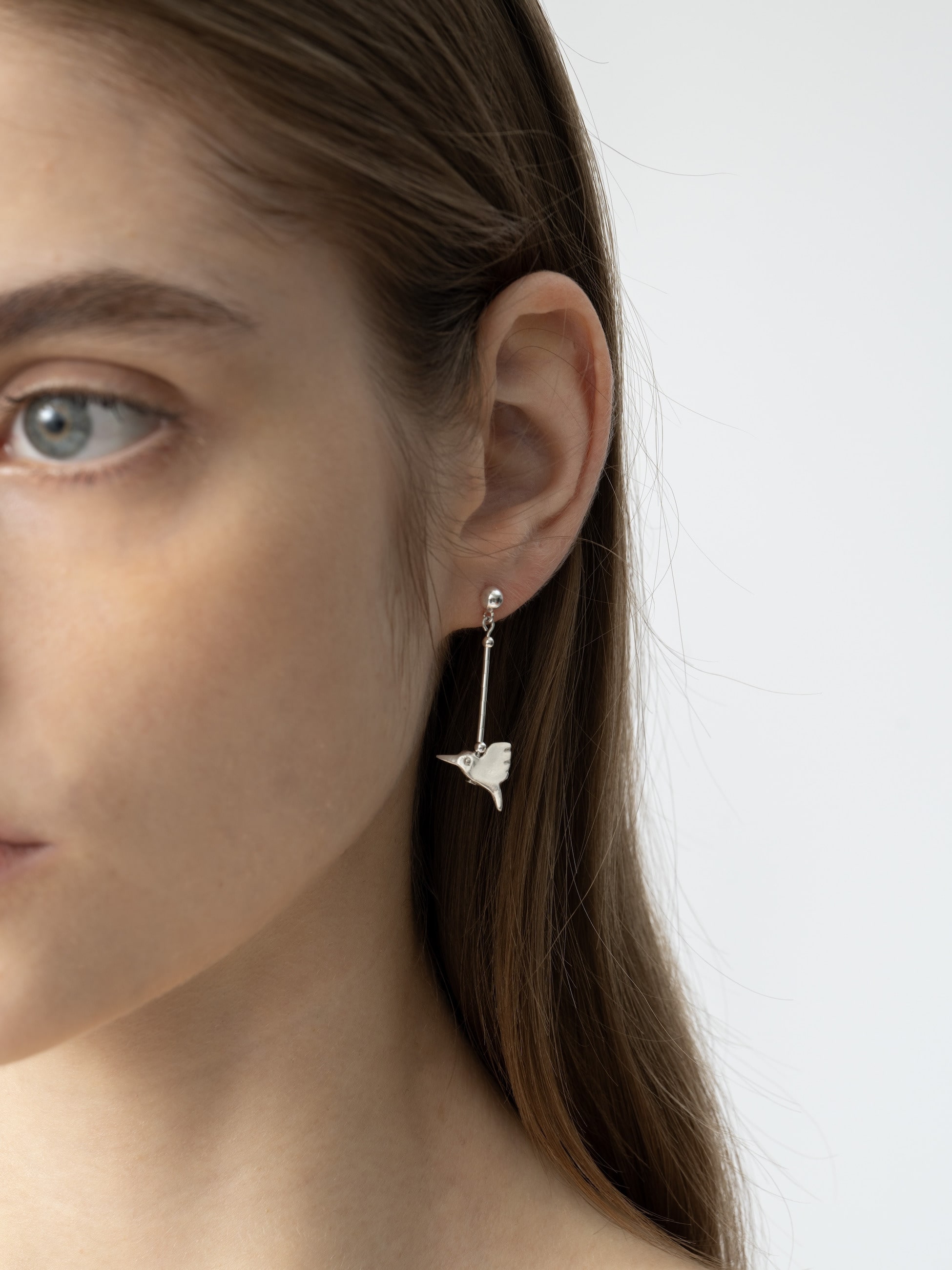 - 愛らしいハミングバードモチーフで別注したピアスは、耳元で揺れるたびさりげない存在感を醸します。ハンドメイドの温かみを感じられ、スタイリングの外し役としてもおすすめです。
