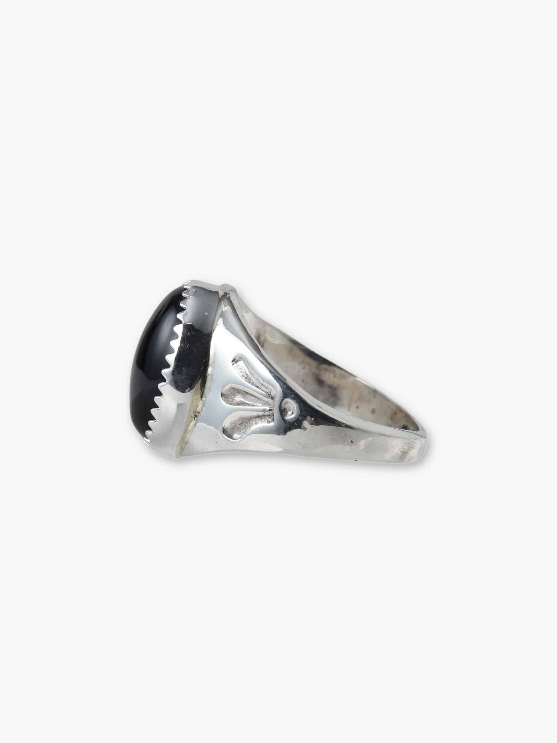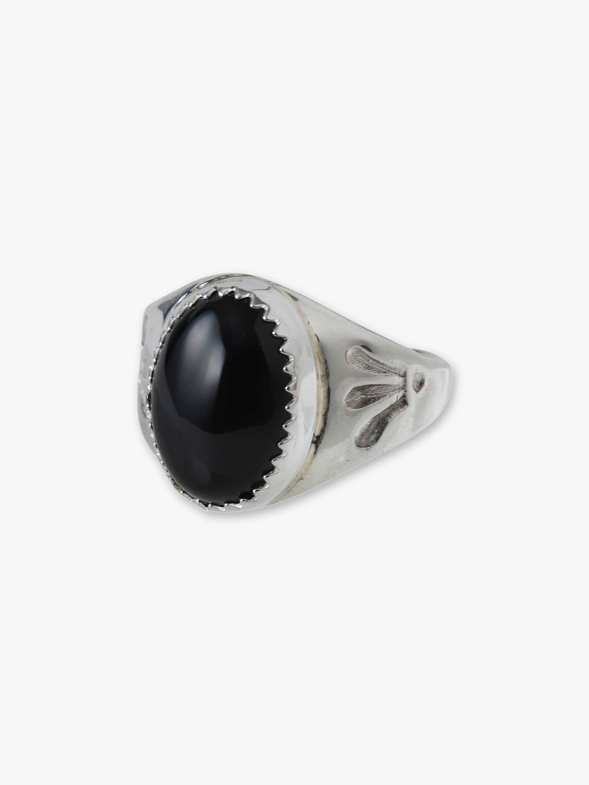 - 目を惹くオニキスがセッティングされたシルバーリングは、アームに施された彫刻や波形のフレームなど、細かなディティールもお楽しみいただけます。ひとつで存在感を醸すアイテムです。