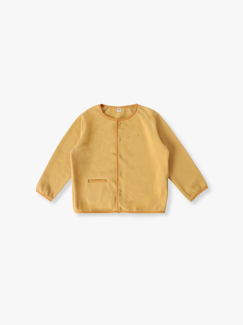 パイピングがアクセントになったフリースジャケットは、フロントのスナップボタンを小さいサイズにすることで前身頃がフラットになり、お子様の動きを妨げず快適に着ていただけます。ミニマムなスリットポケットもポイントに。薄手でありながらもあたたかく、男の子にも女の子にもおすすめなアイテムです。