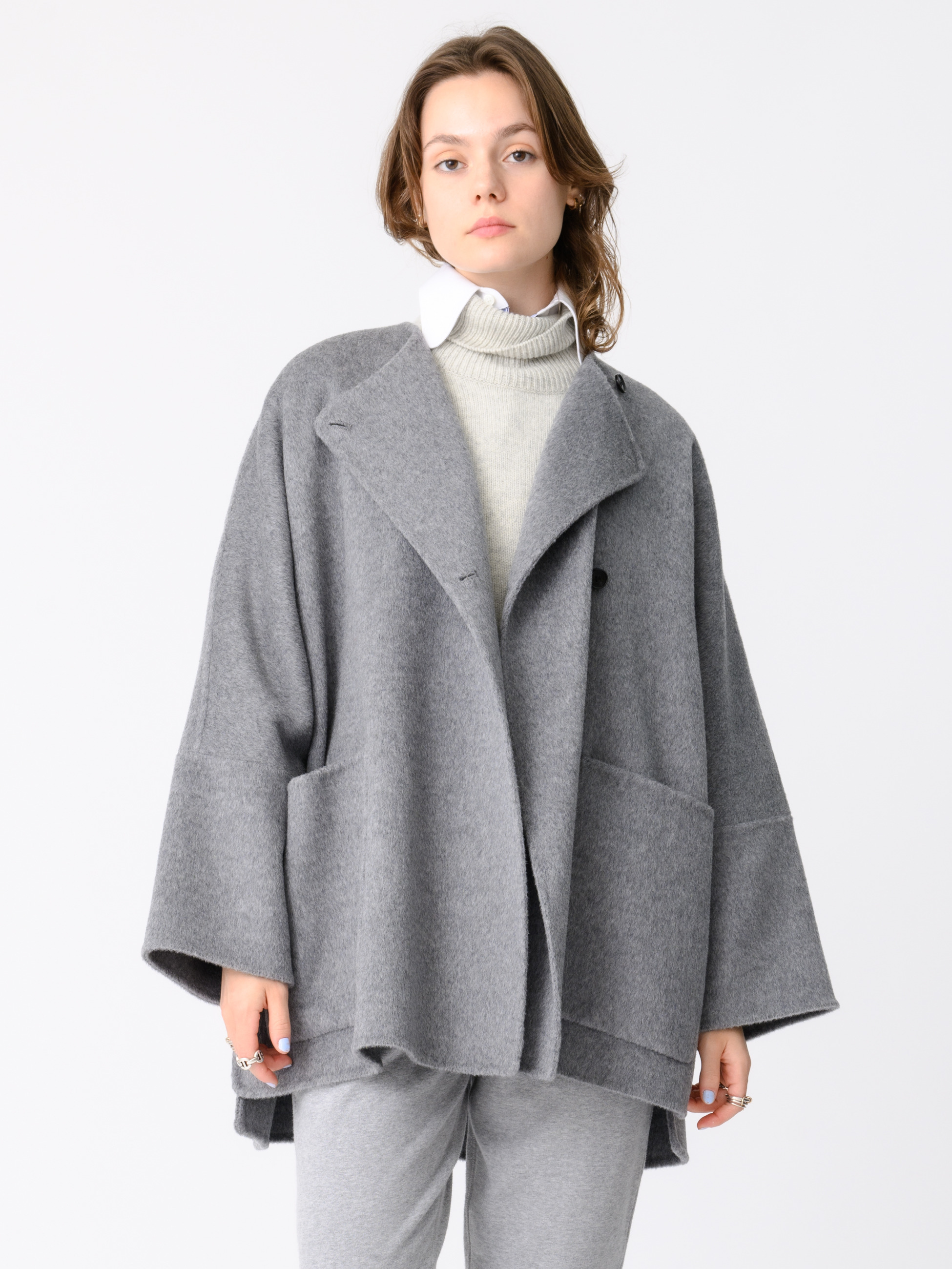 • ウール ショートコート & スカーフ 詳細画像 top gray