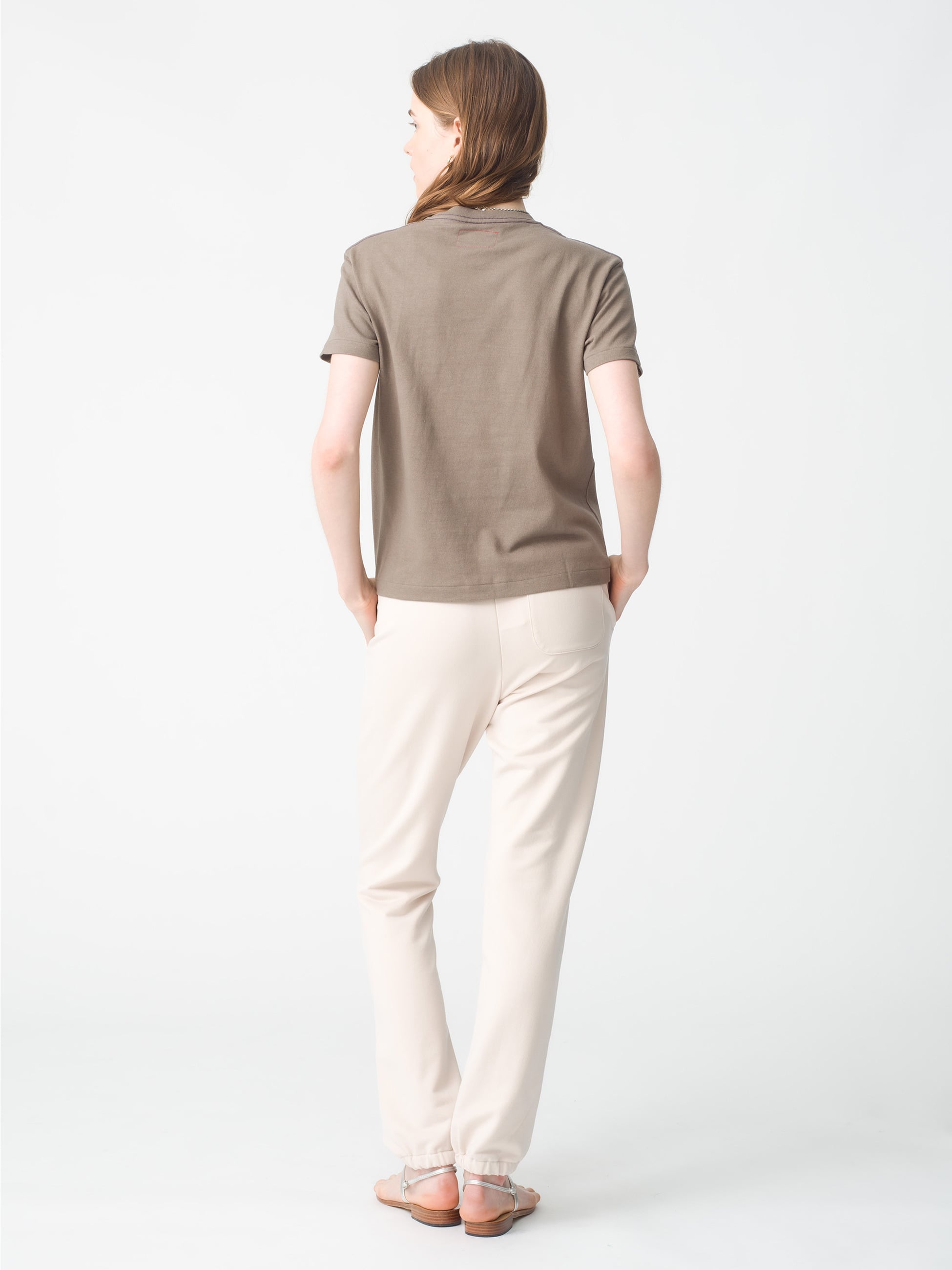 - キュプラならではの滑らかな表面感が特徴の裏毛素材のスウェットパンツです。軽やかな着心地でラフな印象でありながら、スッキリとしたテーパードシルエットと柔らかいカラーが女性らしく上品な雰囲気を醸します。同シリーズのスウェットトップスと、セットアップで着用していただくのも素敵です。