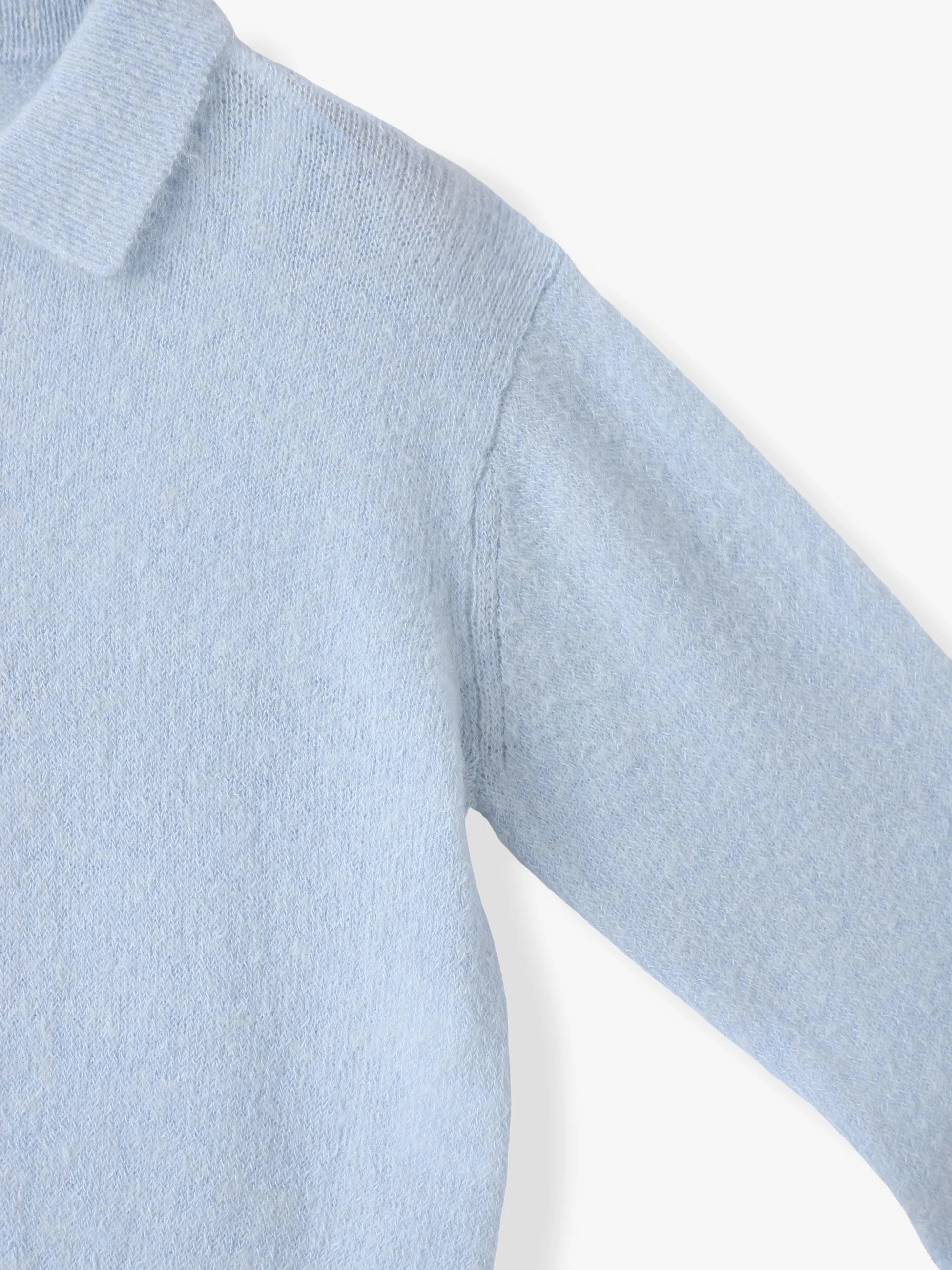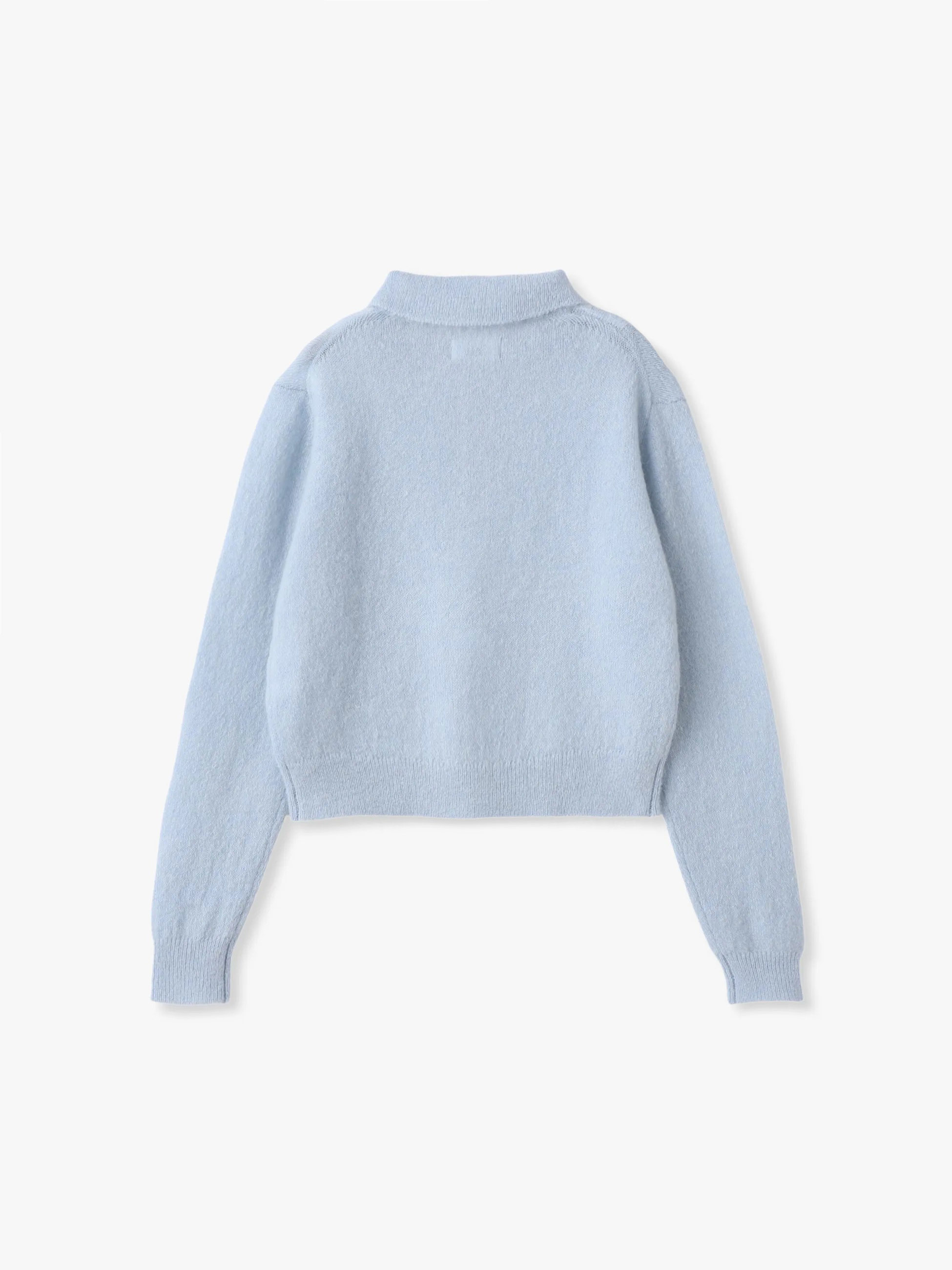 - ふわふわとした肌触りが心地よいモヘア素材を使用した、可愛らしい印象のポロニットトップスです。シンプルなブラック、ホリデーシーズンにぴったりなレッド、爽やかなライトブルーの3色展開です。コンパクトな着丈は、ハイウエストのボトムスとも好相性で、シンプルなスタイリングに女性らしさをプラスします。