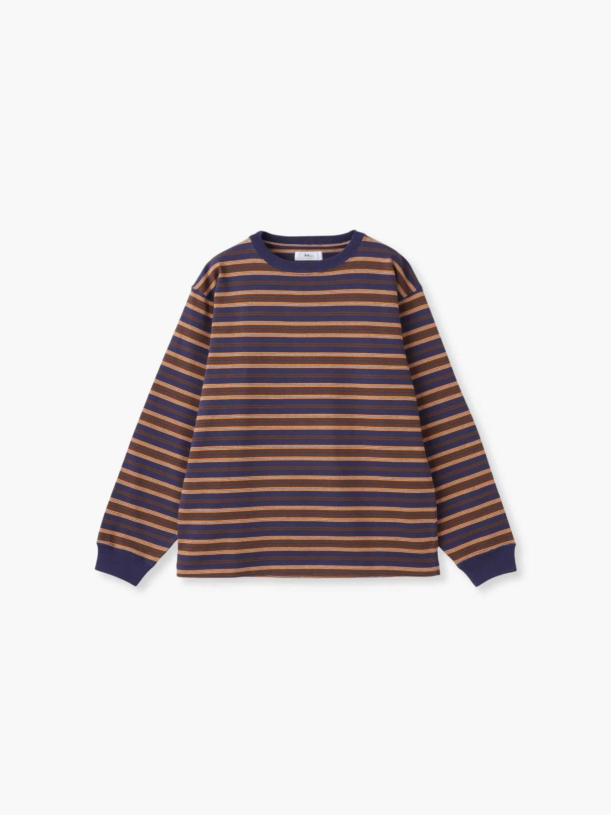 - ロンハーマンオリジナルのマルチボーダー柄のロングスリーブティーは、秋らしいネイビーとブラウン、ナチュラルなアイボリーとグリーンの配色がポイントです。ゆったりとしたサイジングでラフな印象で着用いただけ、程よい肉厚感はスウェット感覚で寒い時期まで活躍します。ウールパンツと合わせたきれいめなスタイリングや、肩や腰に巻き、スタイリングのアクセントとしても重宝します。