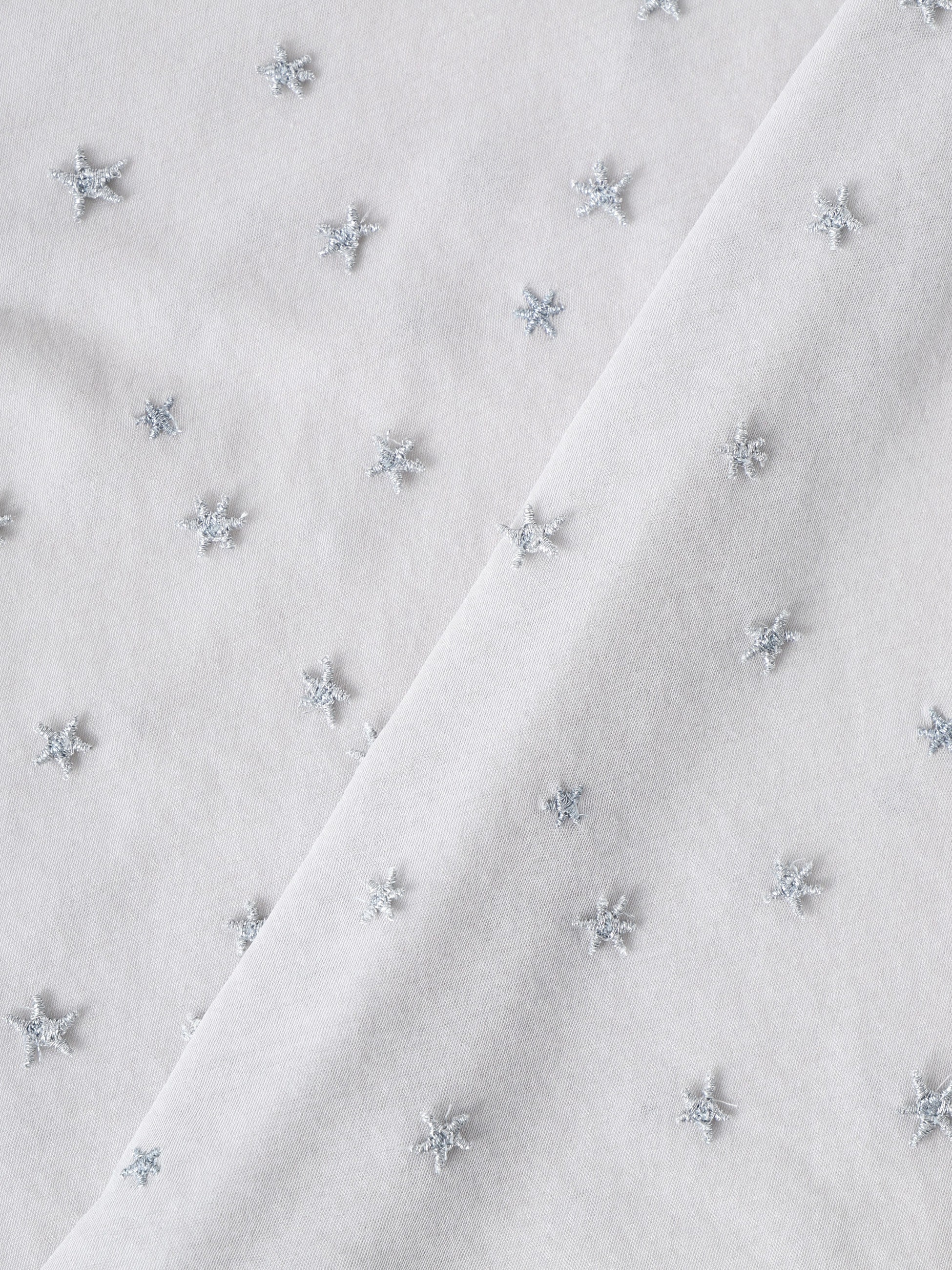 煌めく星の刺繍を施したチュールブラウスチュールスカートと同シリーズのシアーカットソーです。ニットやスウェットのインナーとして、袖や裾からキラキラとした星を覗かせ、スタイリングに華を添える1着です。