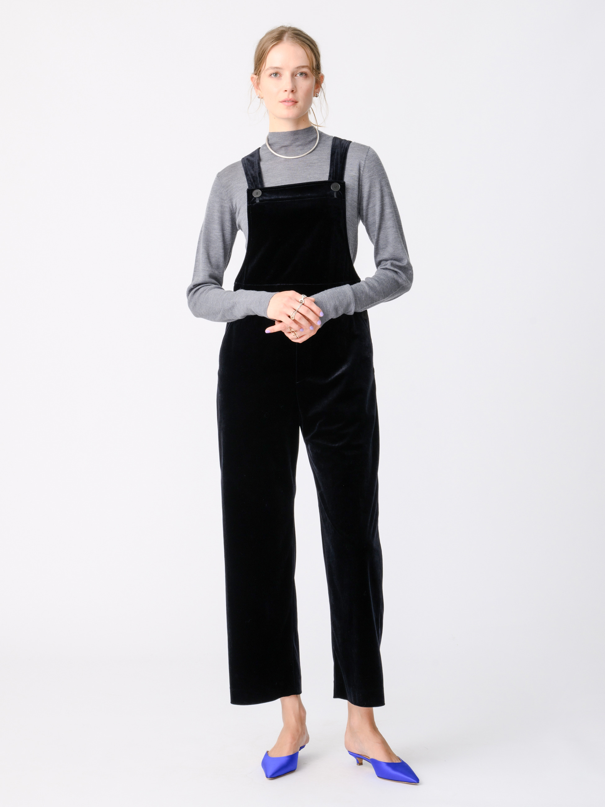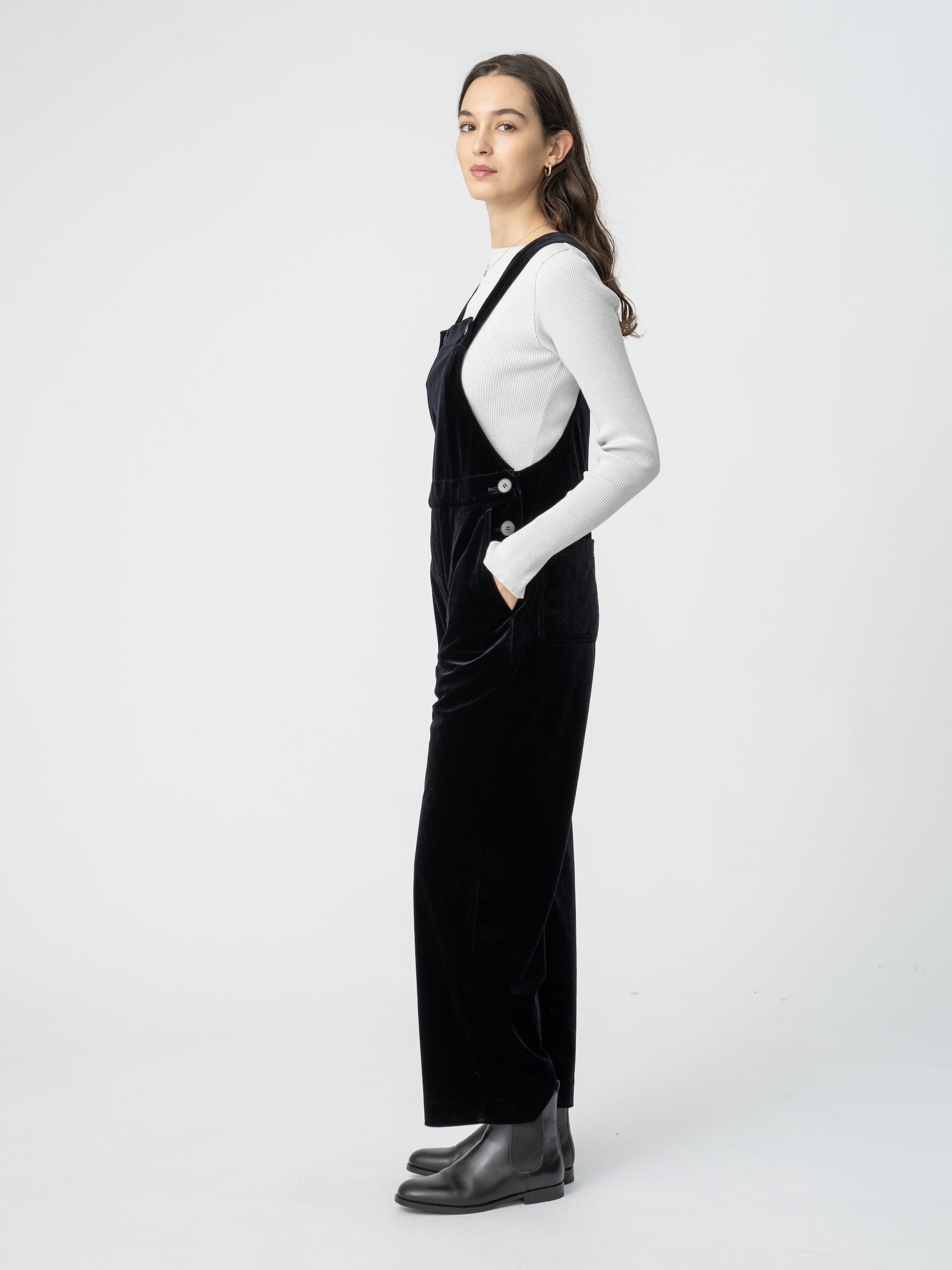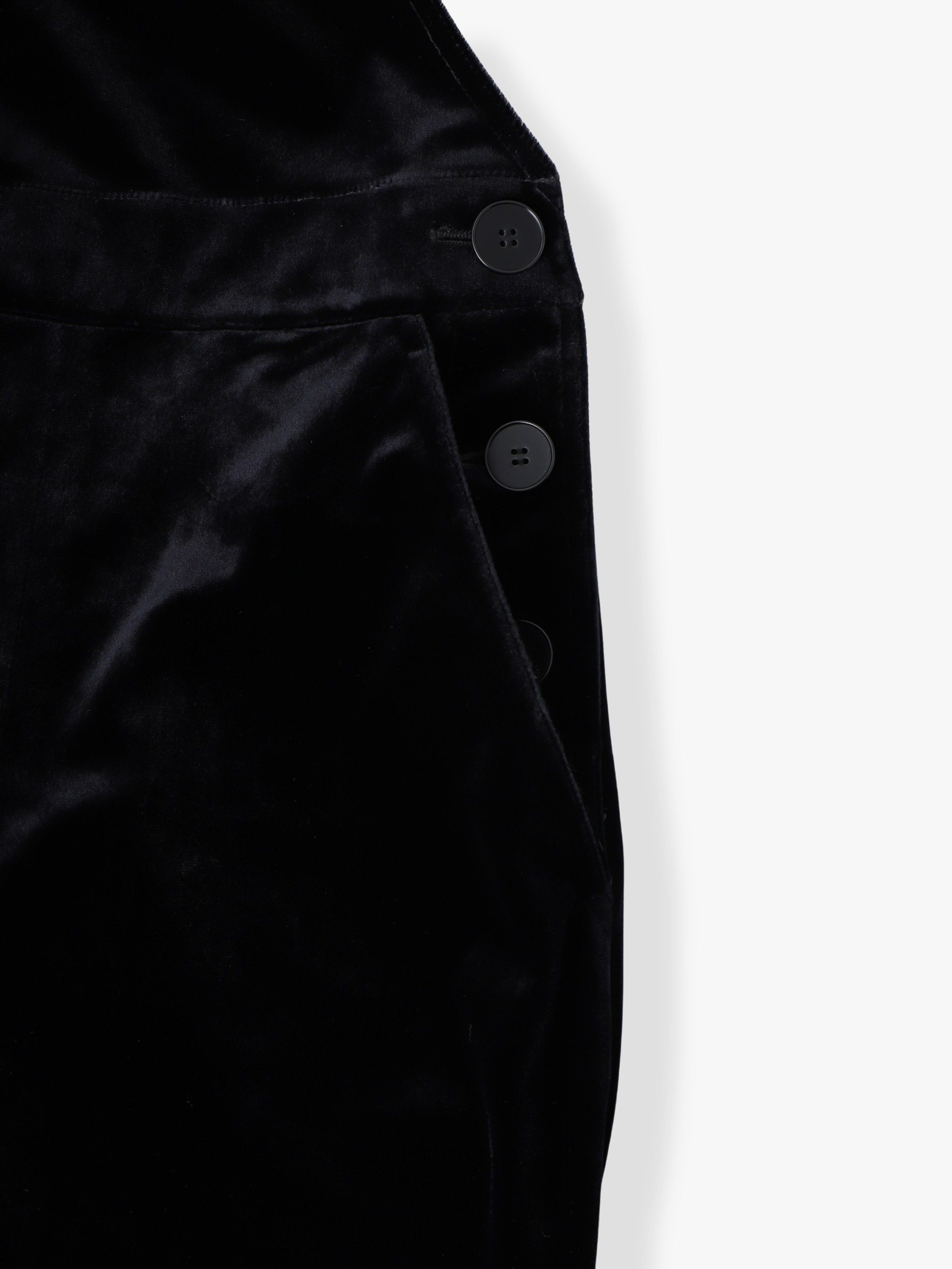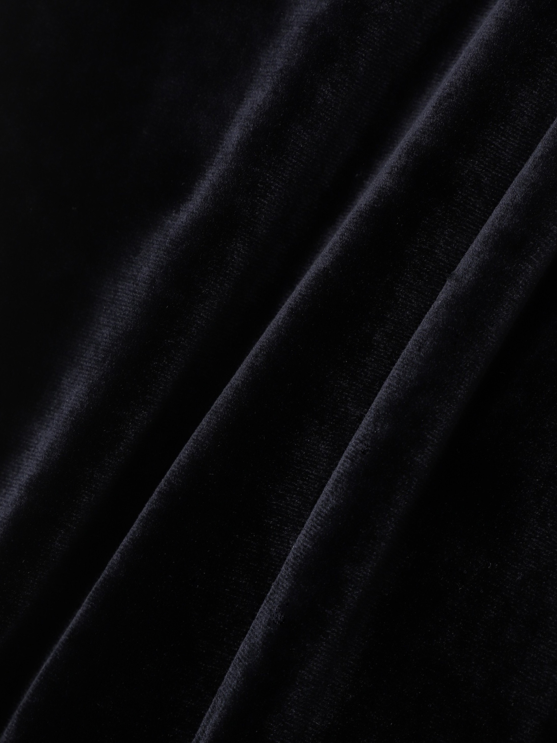 - トリアセテートならではの滑らかな風合いを感じるベロア素材のオールインワンは、もっちりとした肉感と上品な光沢が女性らしさを引き立てます。カジュアルなシルエットのオールインワンに仕立てることで、リラックス感のある着心地でありながら、綺麗めにもきまり、冬のワードローブとしても活躍する一枚です。