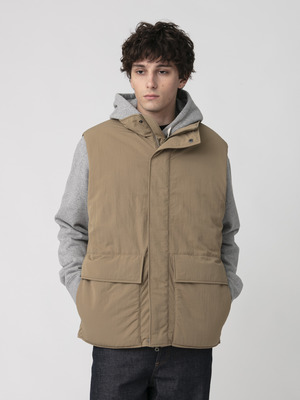 シルク100%のフリース素材を使用したリバーシブルベスト。シルク特有の上品な光沢と裏地に配した防風性に優れた100%リサイクルナイロンは、リバーシブルで使用することでそれぞれ違った印象を与えてくれます。また、熱伝導率が低いシルク素材は、あたたかな時季は涼しく、気温の低い時季はあたたかな快適な着心地を実現しています。程よくゆったりとしたフィットは、様々なコーディネートに合わせやすく、汎用性の高い一着です。