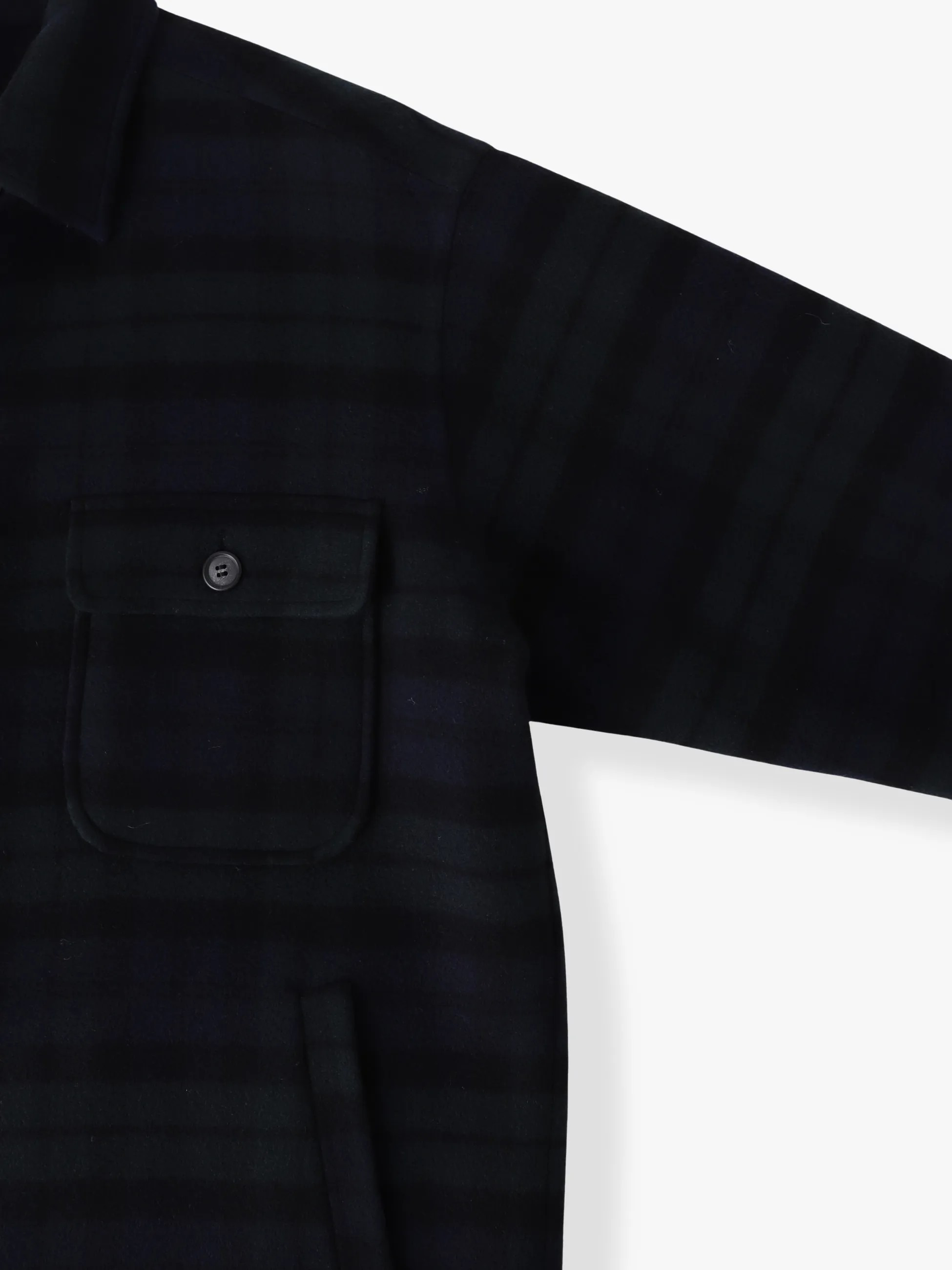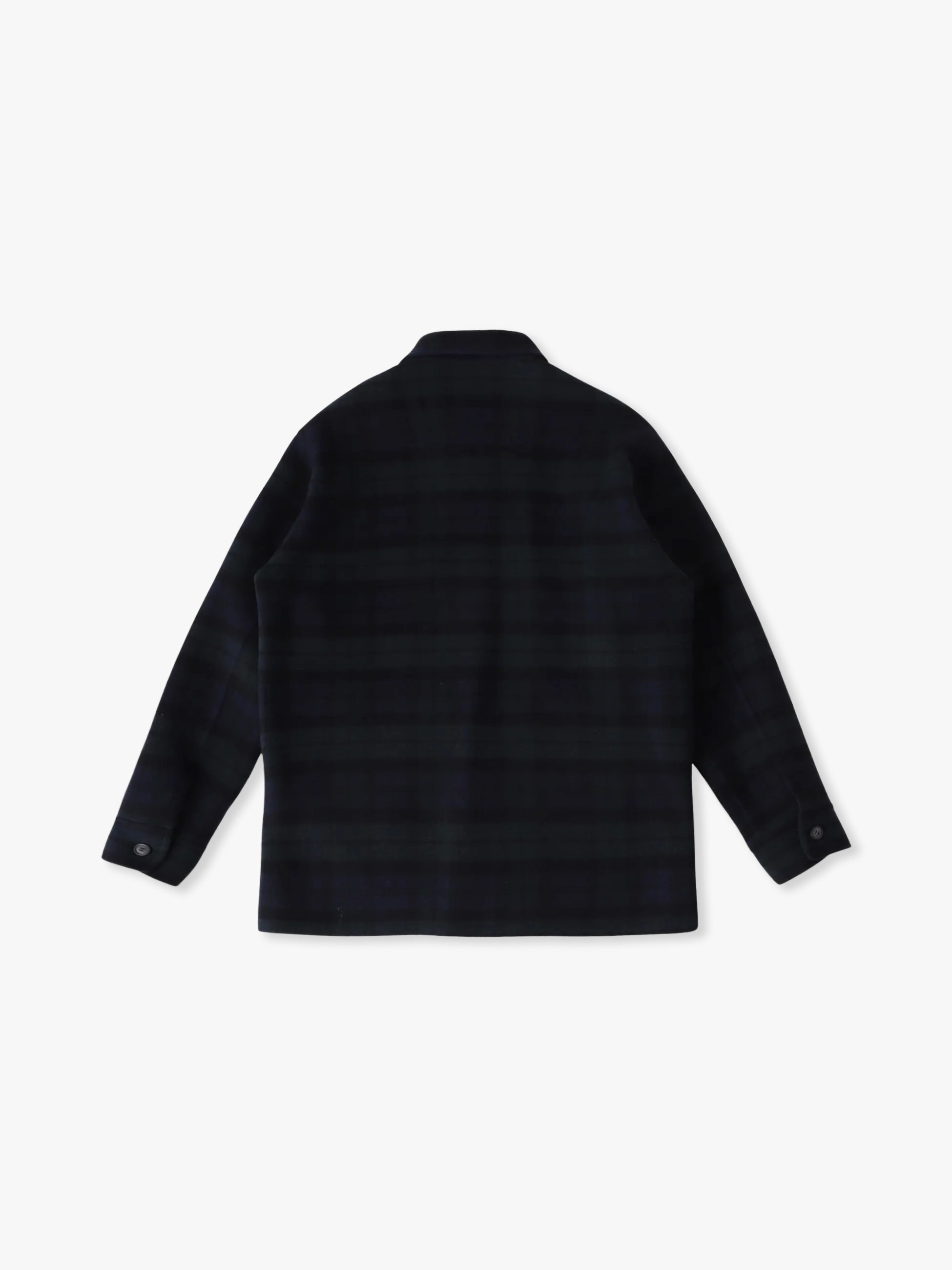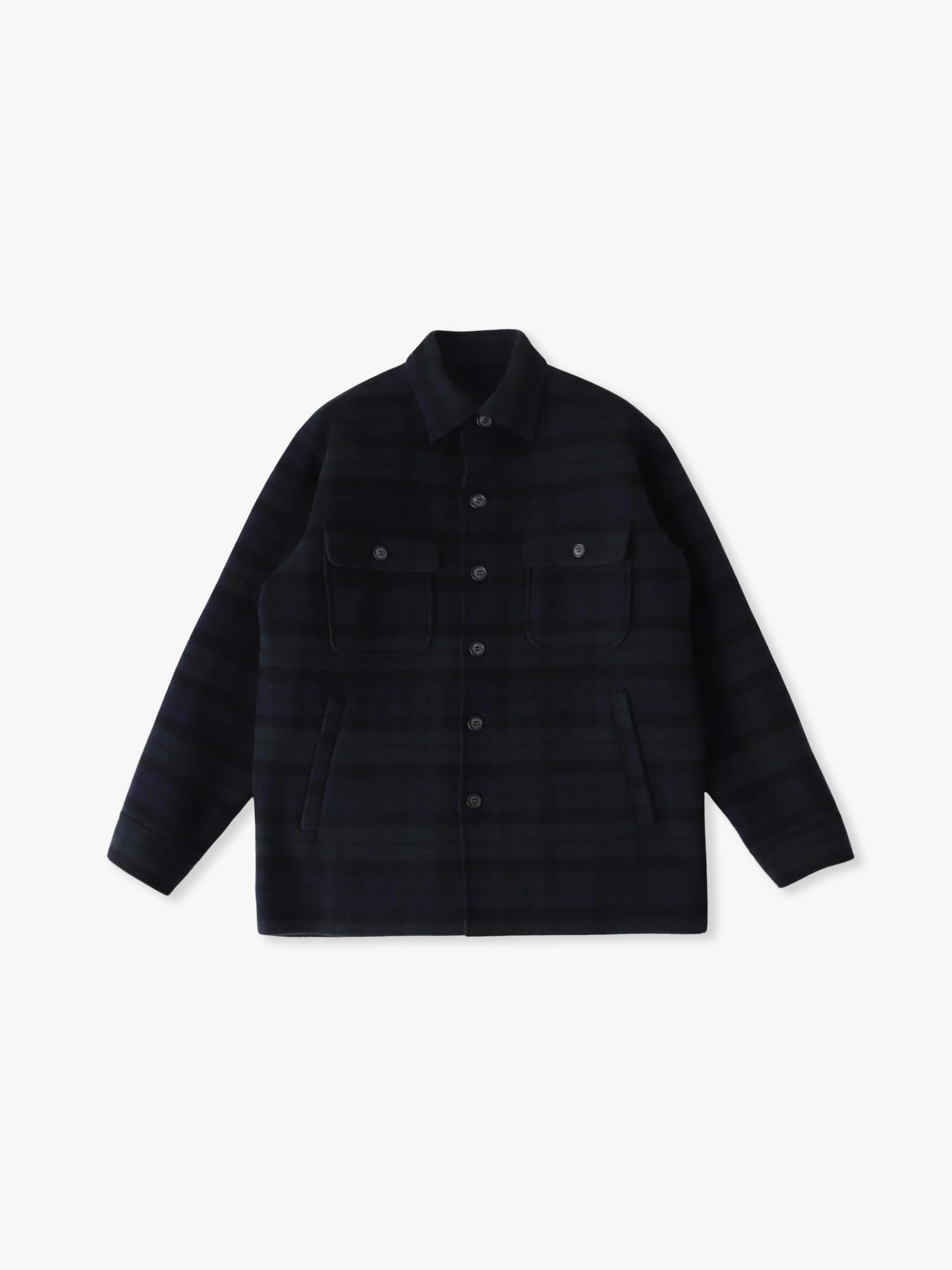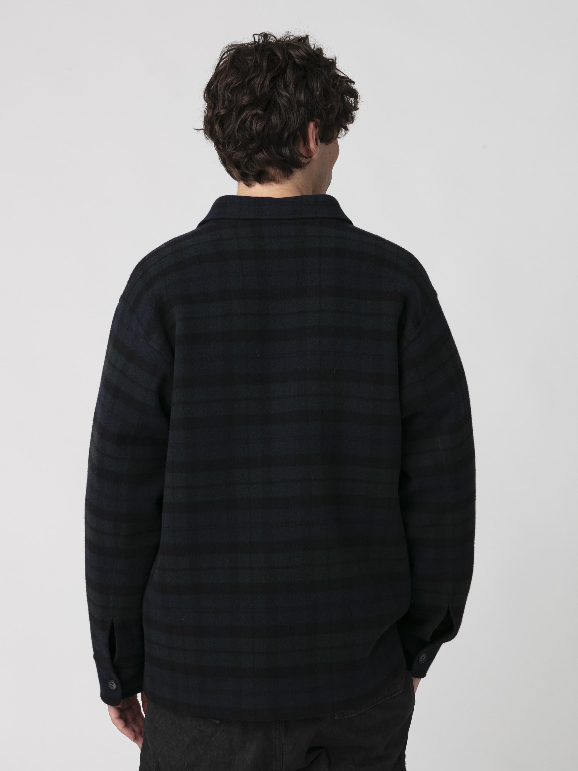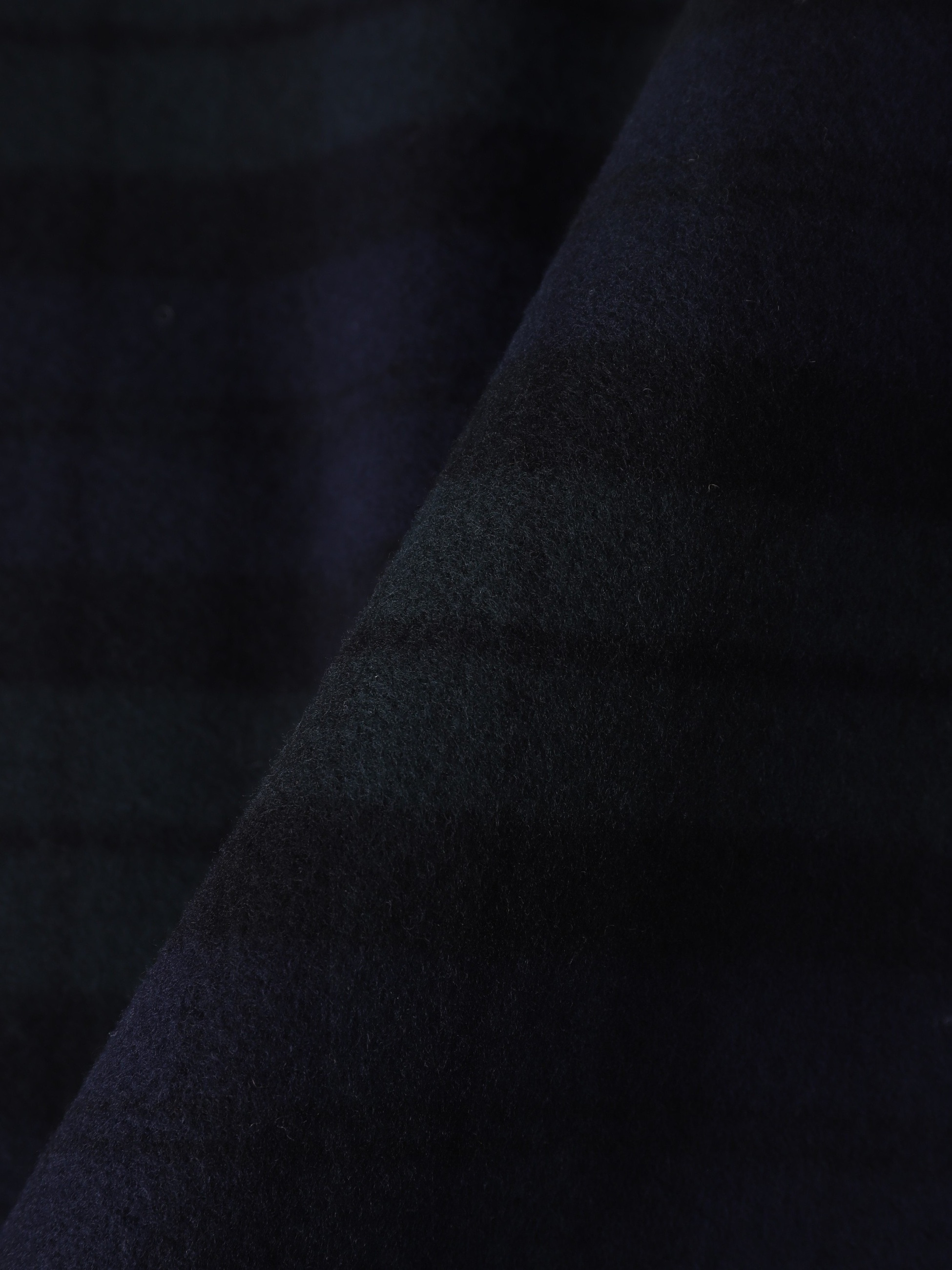 - カシミアのような風合いが特徴のSP160という二重織り生地をリバー仕立てにしたシャツジャケット。表地には配色のコントラストを抑えたブラックウォッチ柄と裏地にはソリッドなネイビーカラーを組み合わせたモダンな印象が特徴です。また、裏地のないリバー仕立てを採用することで、生地本来のしなやかで軽やかな着心地を生み出しています。ラグランスリーブ仕様とゆったりとしたフィットは、様々なコーディネートに合わせやすく、汎用性の高い一着です。