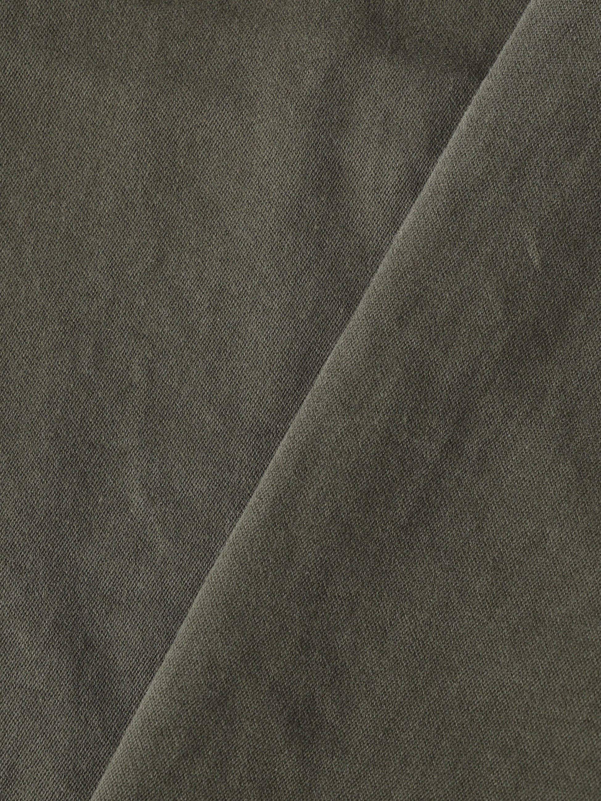 ヴィンテージバックサテン生地をベースに、リプロダクションした素材を使用したファティーグパンツ。ストーンバイオ加工とボールウォッシュ加工を施し、ヴィンテージのような表情を実現しています。また、バックサテン生地本来の滑らかな風合いと優れた耐久性も魅力のひとつ。ゆったりとしたフィットは、デイリーユースしやすい一着です。
