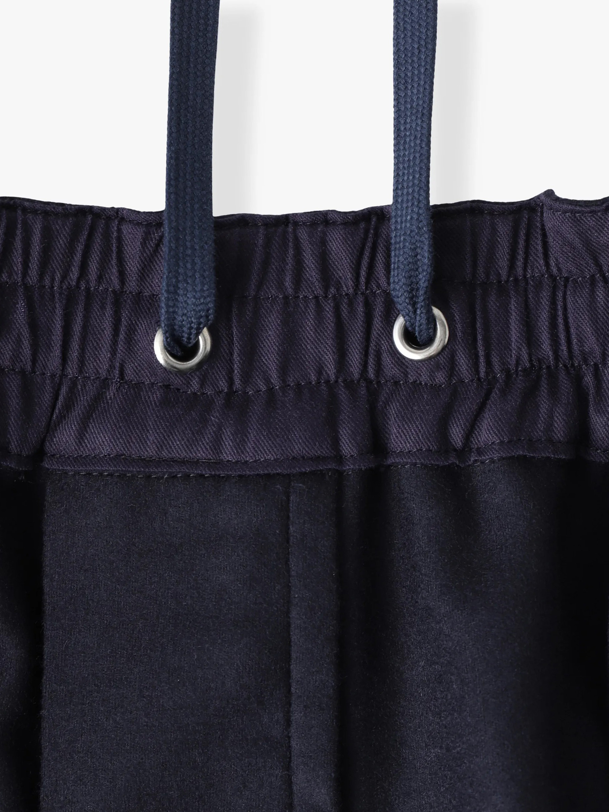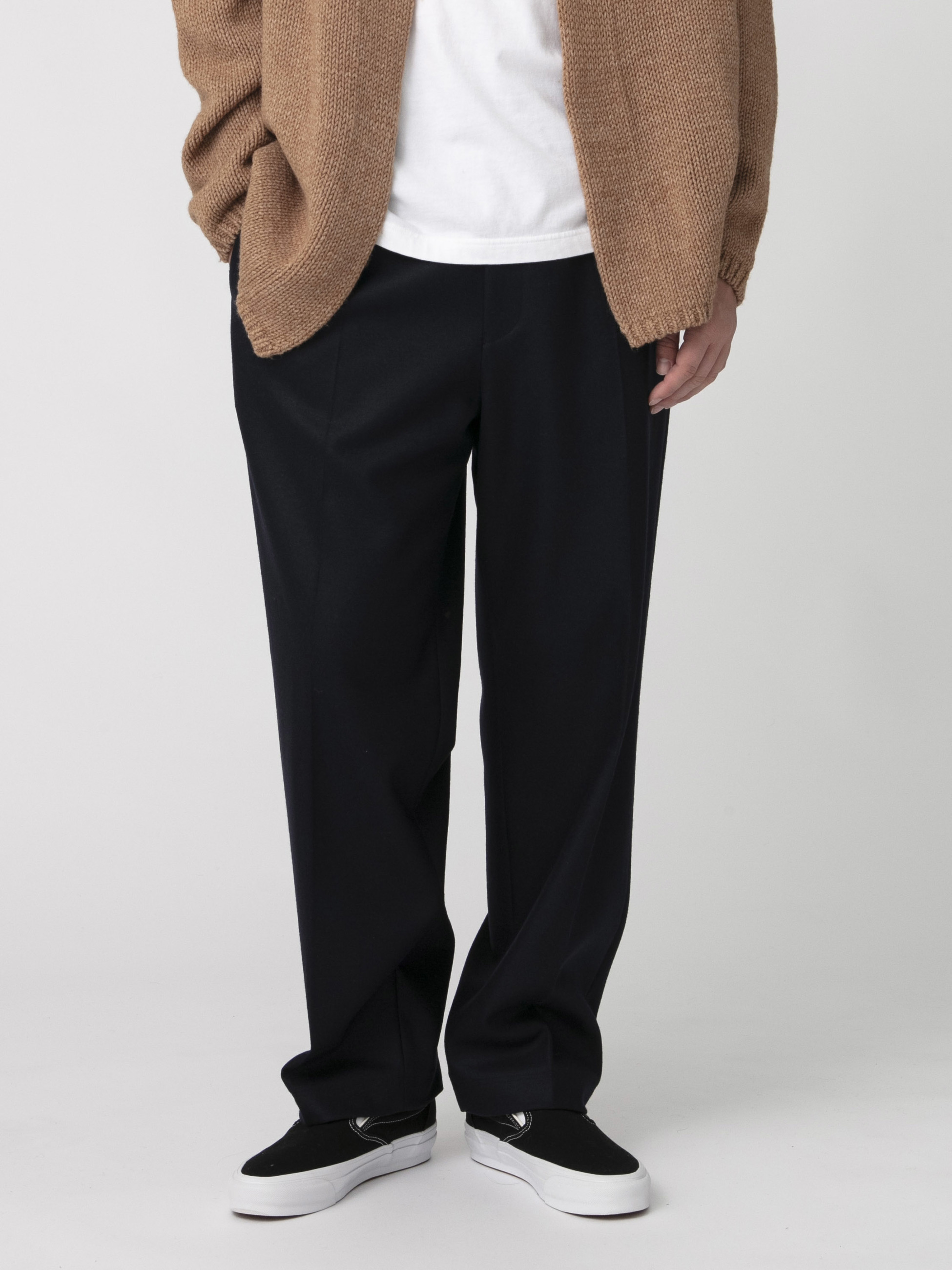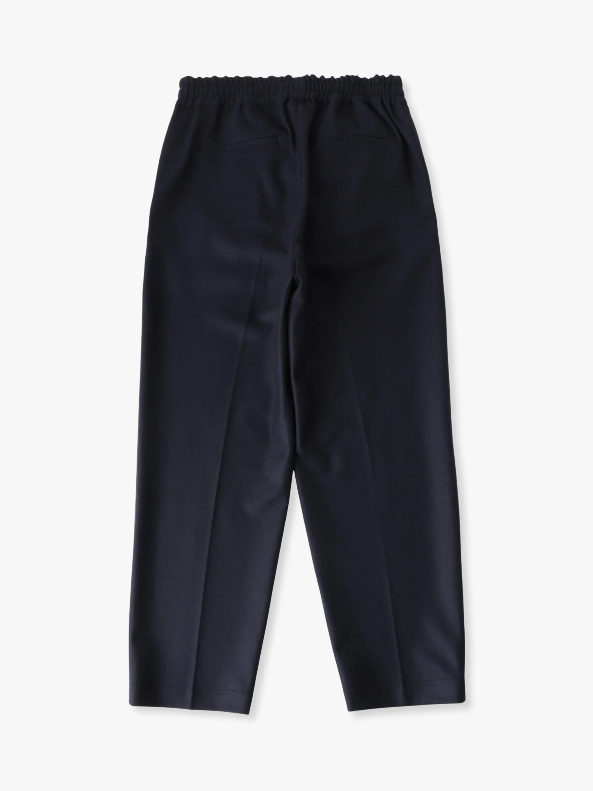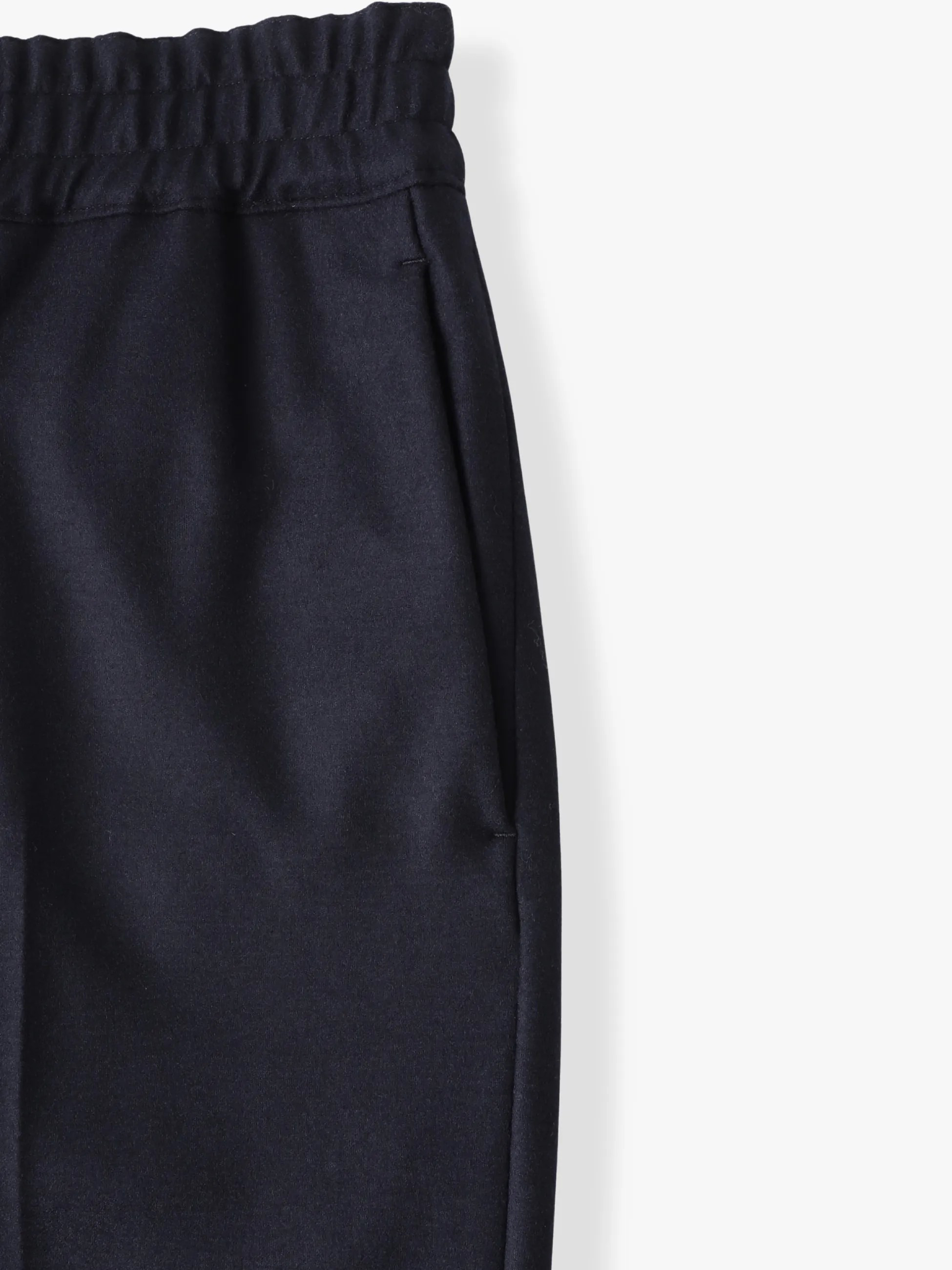 - 圧縮ウールジャージー素材を使用したイージーパンツ。ウール特有の重さのない軽やかな着心地とジャージー素材特有の自然なストレッチ性は、快適な着心地を実現しています。また、ウエストにゴムを配したイージーな穿き心地と落ち感のある風合いが特徴です。ゆったりとしたフィットは、様々なコーディネートに合わせやすく、汎用性の高い一着です。