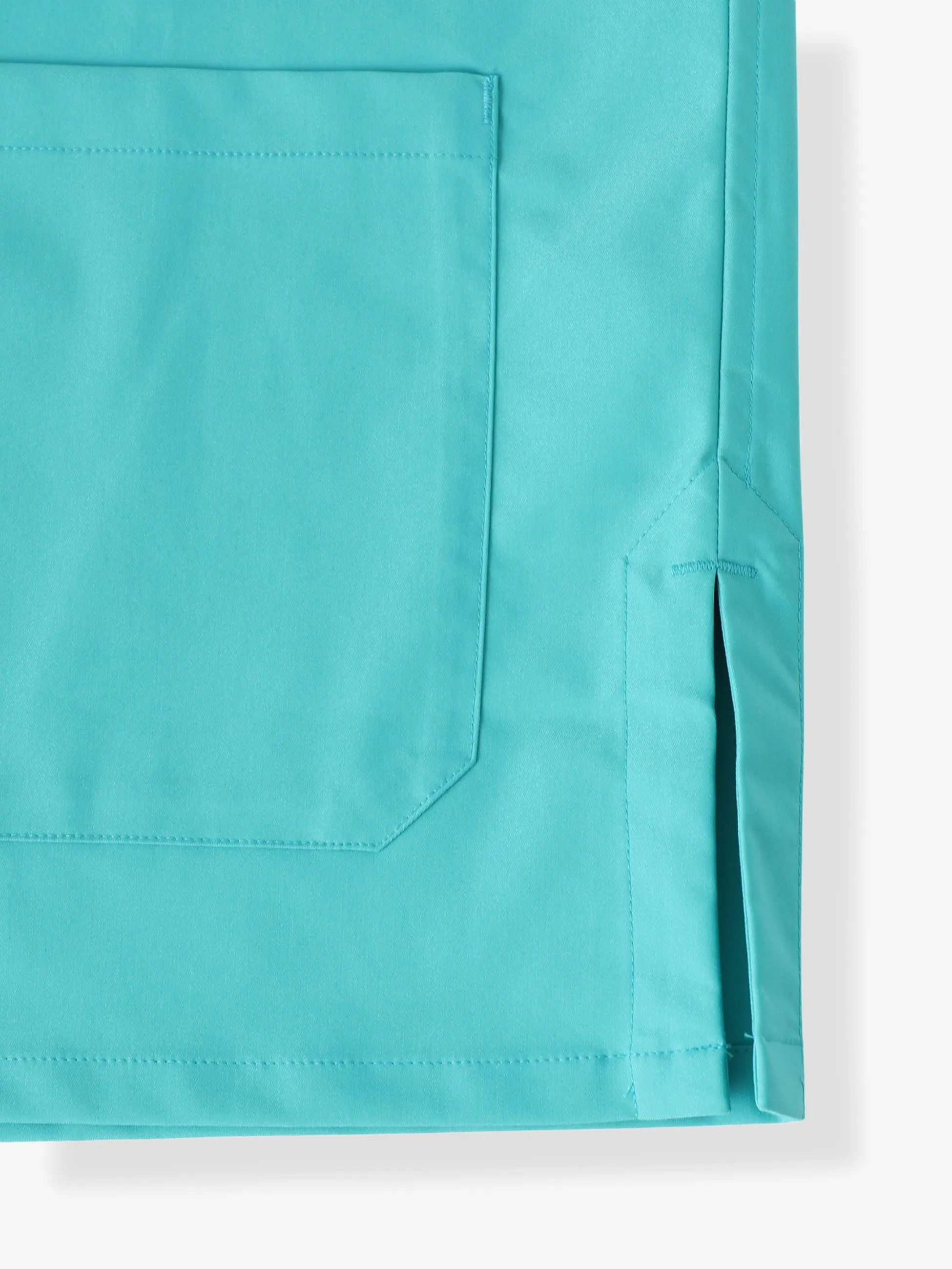 - 2008年に創業し、世界中の医療現場に、人間的で、感性的で、直感的な革新を生むことをミッションとする白衣ブランドClassico(クラシコ)。「なぜかっこいい白衣がないのか?」という医師の一言からスタートし、イタリアのテーラード仕立てのスタイリッシュな白衣・スクラブ・ケーシーのほか、聴診器やシューズなど、医療従事者向けの商品の企画販売を行っています。“尊い命を救うお医者さんに、笑顔と勇気を与えたい” そんな想いからスタートしたクラシコとの特別なコラボレーションです。リラクシングなサイズ感と、身体が自然に馴染んでいく着心地はそのままに、細部をアップデートしたスクラブトップス。襟周りの開きの広がりを少し抑えることで従来よりもインナーが見えにくいように考慮し、清潔感のある着こなしができます。さらに、裾のサイドスリットを深めにすることで着脱がしやすいように改良を加えています。また、研究を重ね開発したオリジナル素材のスクラブ生地は、ヨコ糸に再生PET糸を使用し、環境に配慮したサステナブル素材を採用。医療現場では必須のリネンケアへの高い耐性、院内感染の元になるMRSAを含め、黄色ブドウ球菌、肺炎桿菌(はいえんかんきん)を抑制する制菌加工を施し、洗濯を繰り返しても効果が持続する耐久性も魅力です。