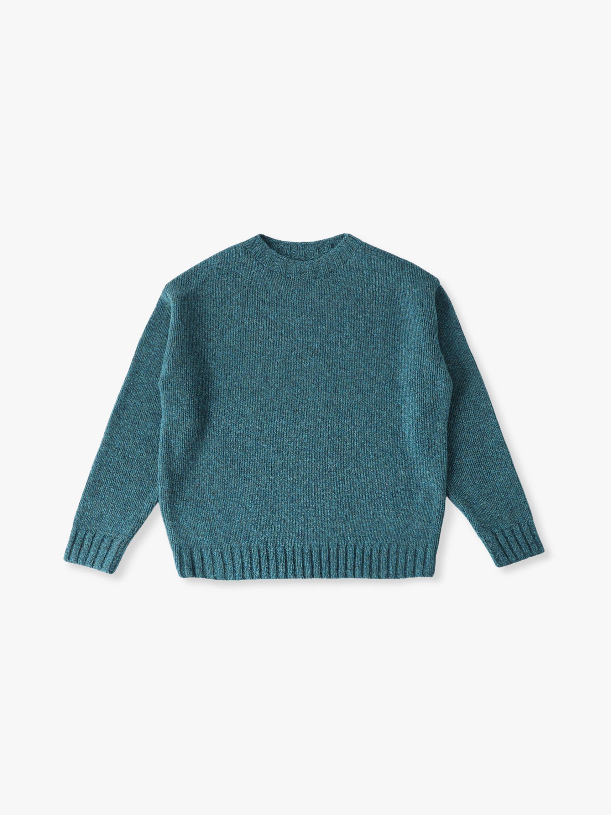1977年にイタリアで設立されたLanecardate社のウール糸を使用したニットプルオーバー。ニュージーランドの子羊の初めての刈り取りによるウールを混紡したふくらみのある風合いと絶妙なメランジカラーが特徴です。また、ベーシックな着回ししやすいデザインとコーディネートを彩る豊富なカラーリングも魅力のひとつ。ゆったりとしたフィットは、デイリーユースしやすい一着です。