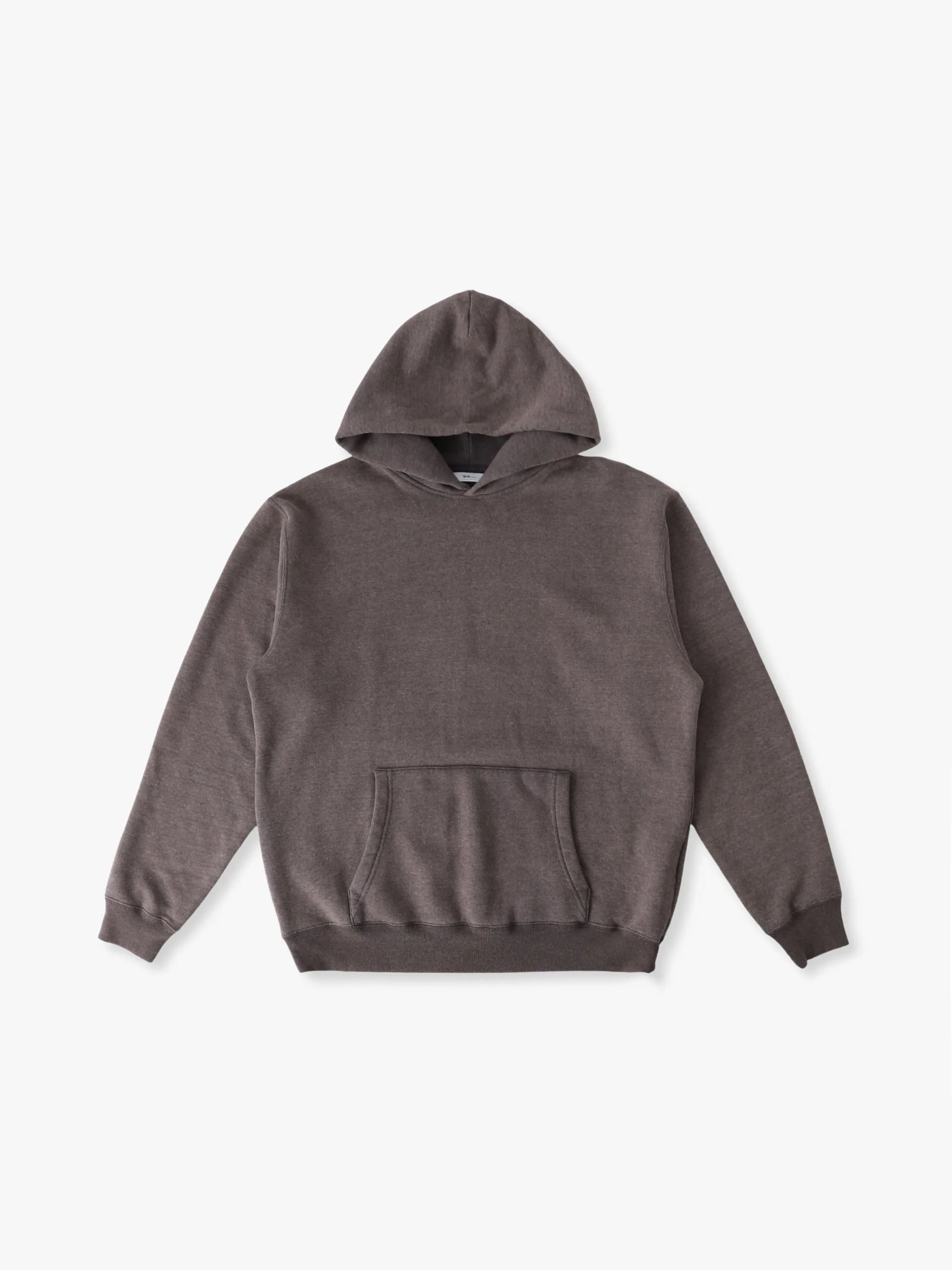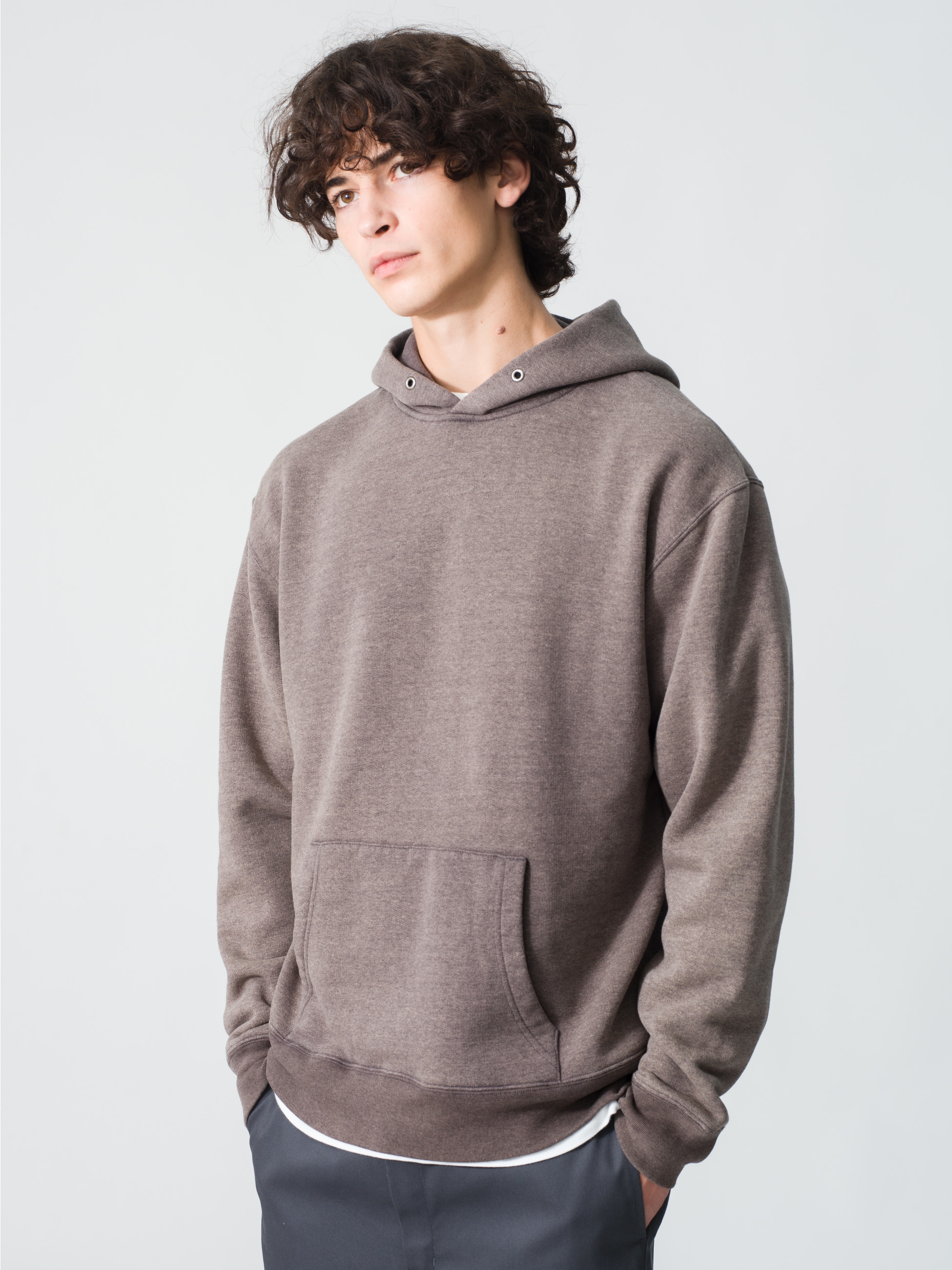 - コットンとポリエステルのT/C裏毛素材を使用したスウェットフーディー。甘目に編まれた生地と半起毛させた裏地は、非常に軽量で柔らかな肌触りが特徴です。また、ドロップ加工を施したヴィンテージのようなフェードしたカラーリングと立体的な陰影も魅力のひとつ。程よくゆったりしたフィットは、デイリーユースしやすい一着です。