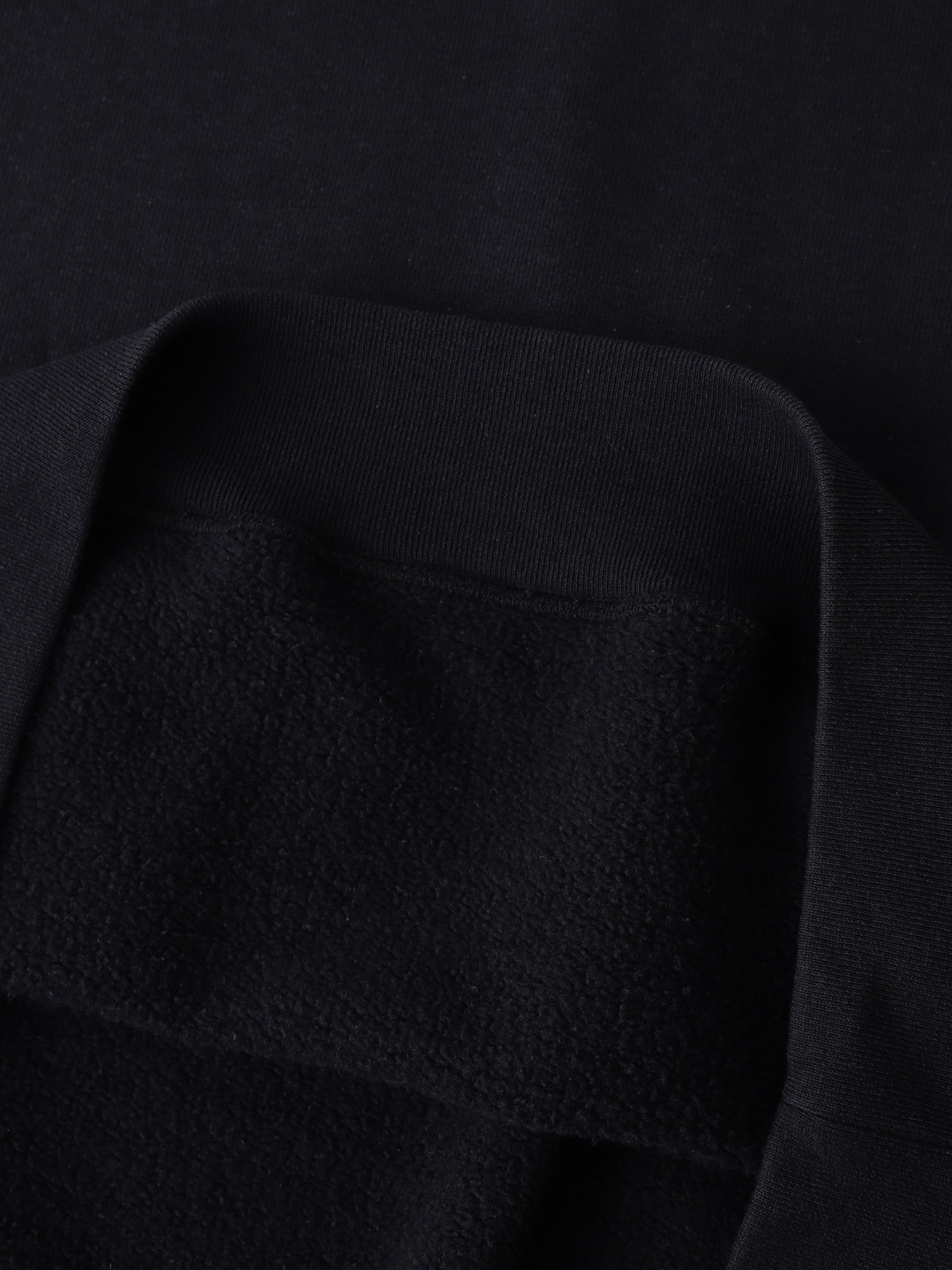 - コットンとポリエステルのT/C裏毛素材を使用したスウェットプルオーバー。甘目に編まれた生地と半起毛させた裏地は、非常に軽量で柔らかな肌触りが特徴です。また、ドロップ加工を施したヴィンテージのようなフェードしたカラーリングと立体的な陰影も魅力のひとつ。程よくゆったりしたフィットは、デイリーユースしやすい一着です。