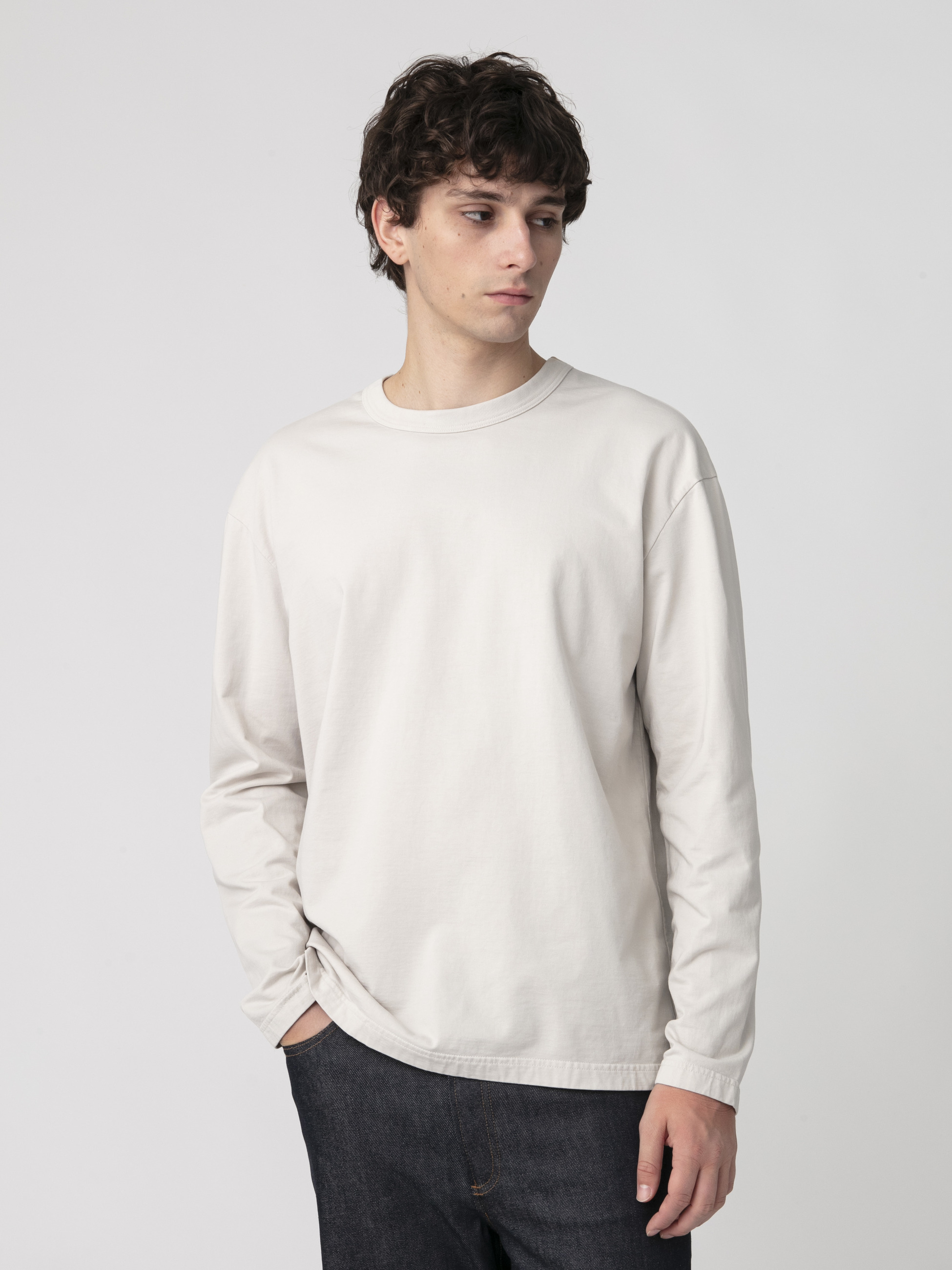 - 細番手糸を高密度で織り上げた裏毛素材のロングスリーブTシャツ。さらっとした肌触りと裏毛素材による肌あたりの良さは、快適な着心地を実現しています。また、ボールウォッシュ加工を施した、程よくフェードしたカラーリングも魅力のひとつ。適度にゆったりとしたレギュラーフィットは、様々なコーディネートに合わせやすく、汎用性の高い一着です。