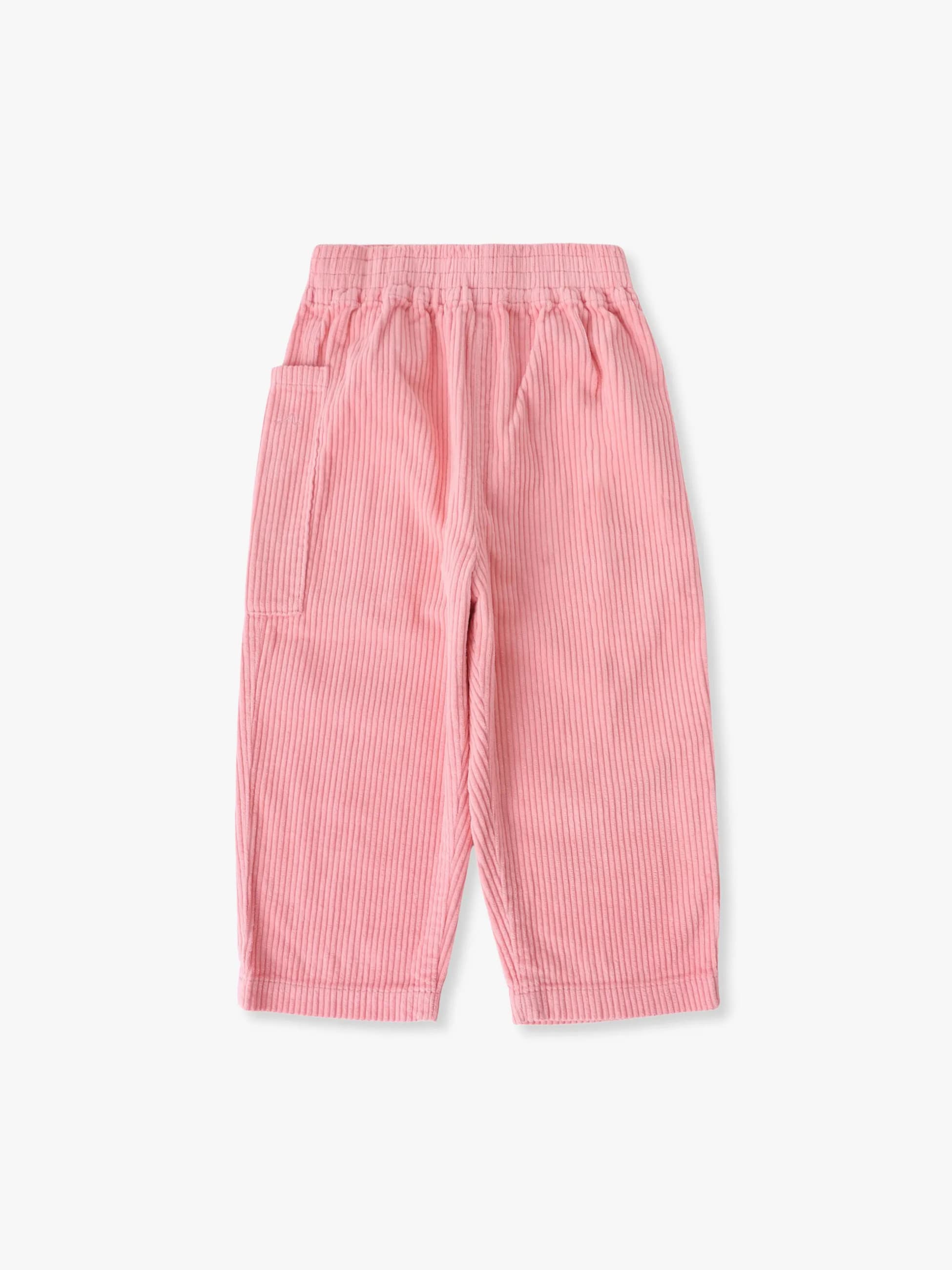 季節感のあるコーデュロイパンツは、遊び心を効かせたユニークなポケット位置がポイントです。鮮やかで元気な印象のピンクとライム、落ち着いたブルーの3色展開です。柔らかくて穿き心地がよく、ウエストはゴム仕様で着脱も簡単。毎日のコーディネートに取り入れやすいアイテムです。