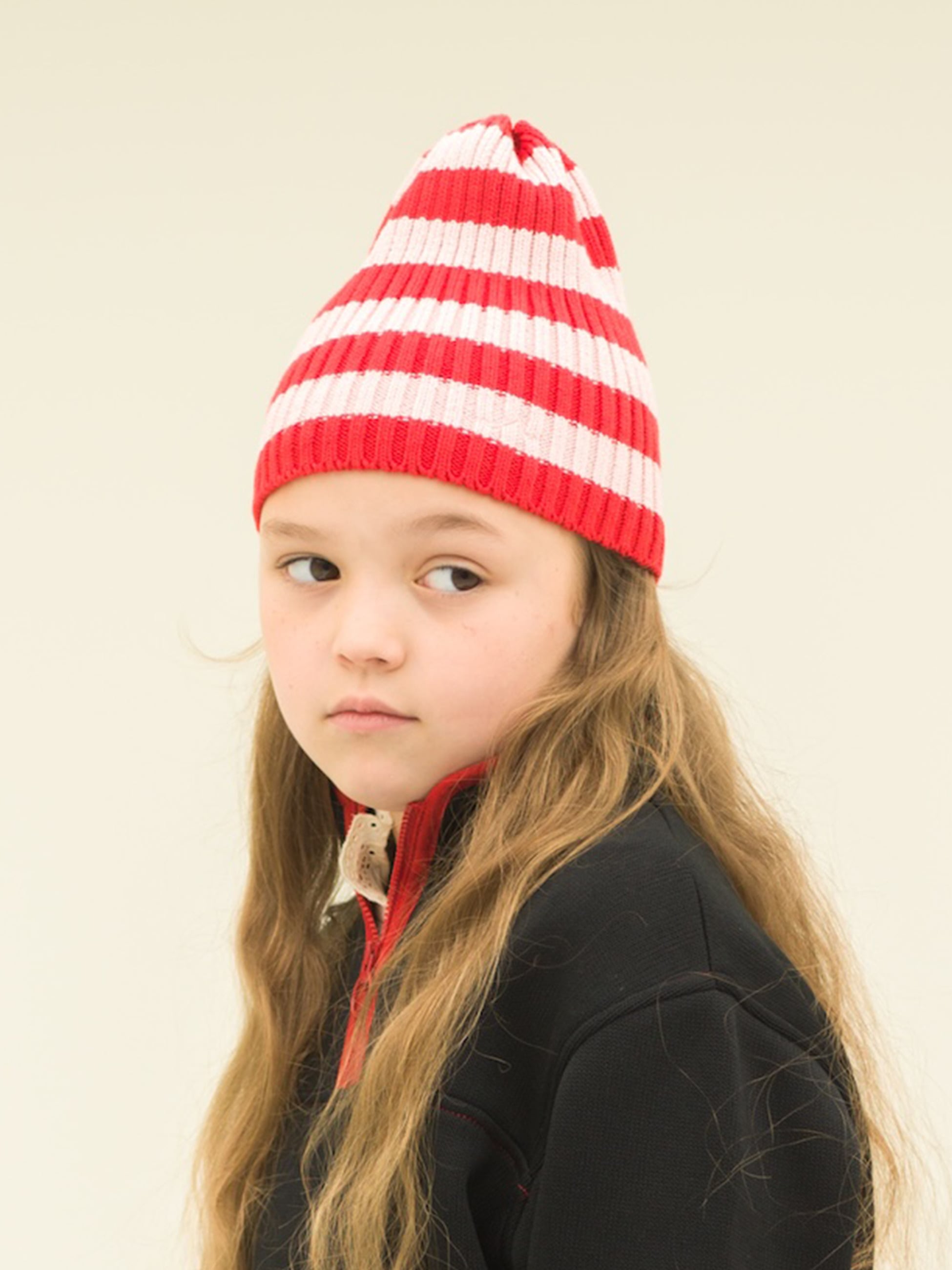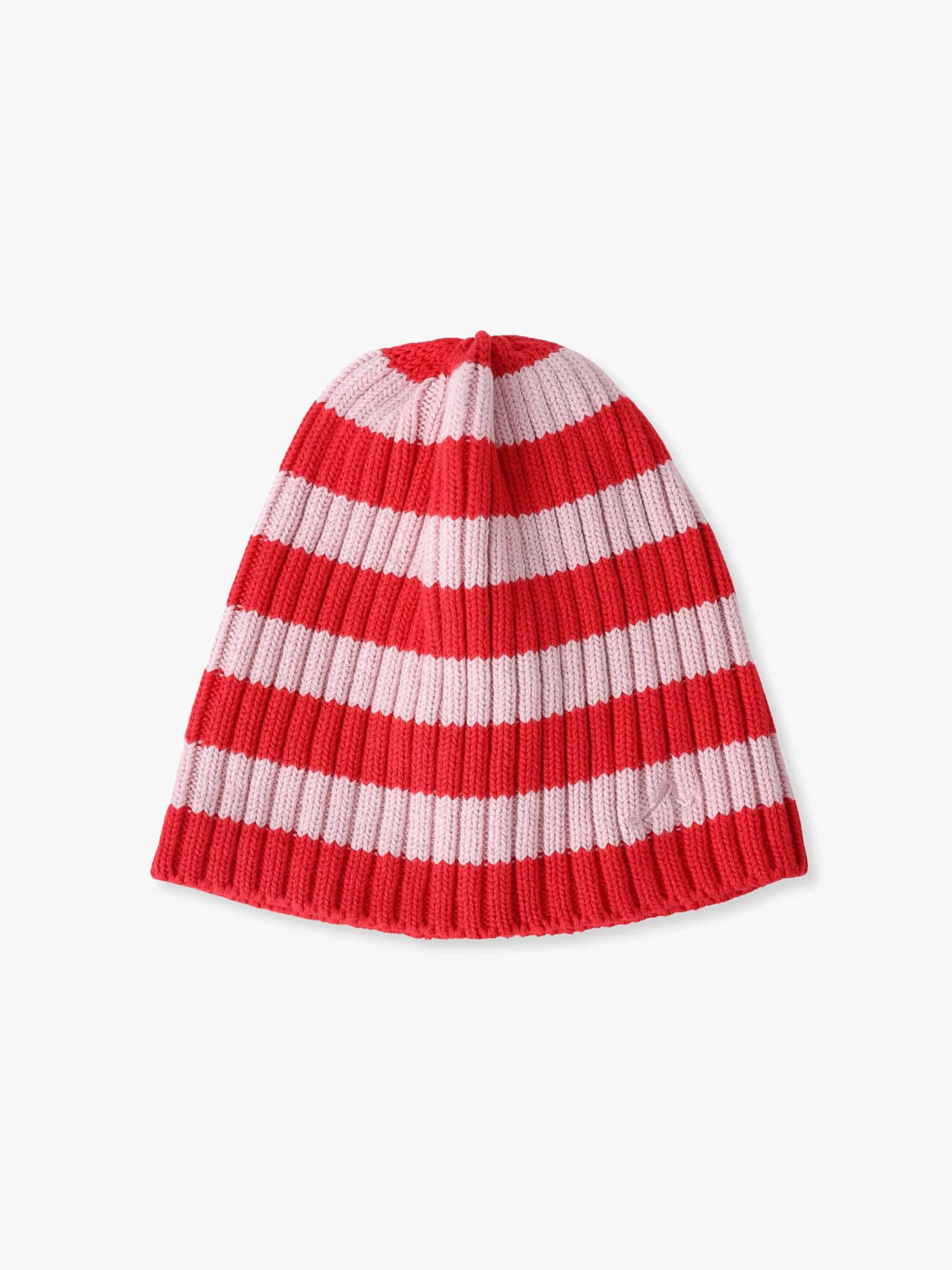 ポップで愛らしい配色が魅力のストライプビーニーが登場しました。細番手の糸を使用しているため、編み目が美しく、カラーも鮮やかに映えます。シンプルなアイテムはもちろん、柄物との組み合わせでも遊び心のあるコーディネートを楽しめます。フリーサイズのため、ギフトにもおすすめです。
