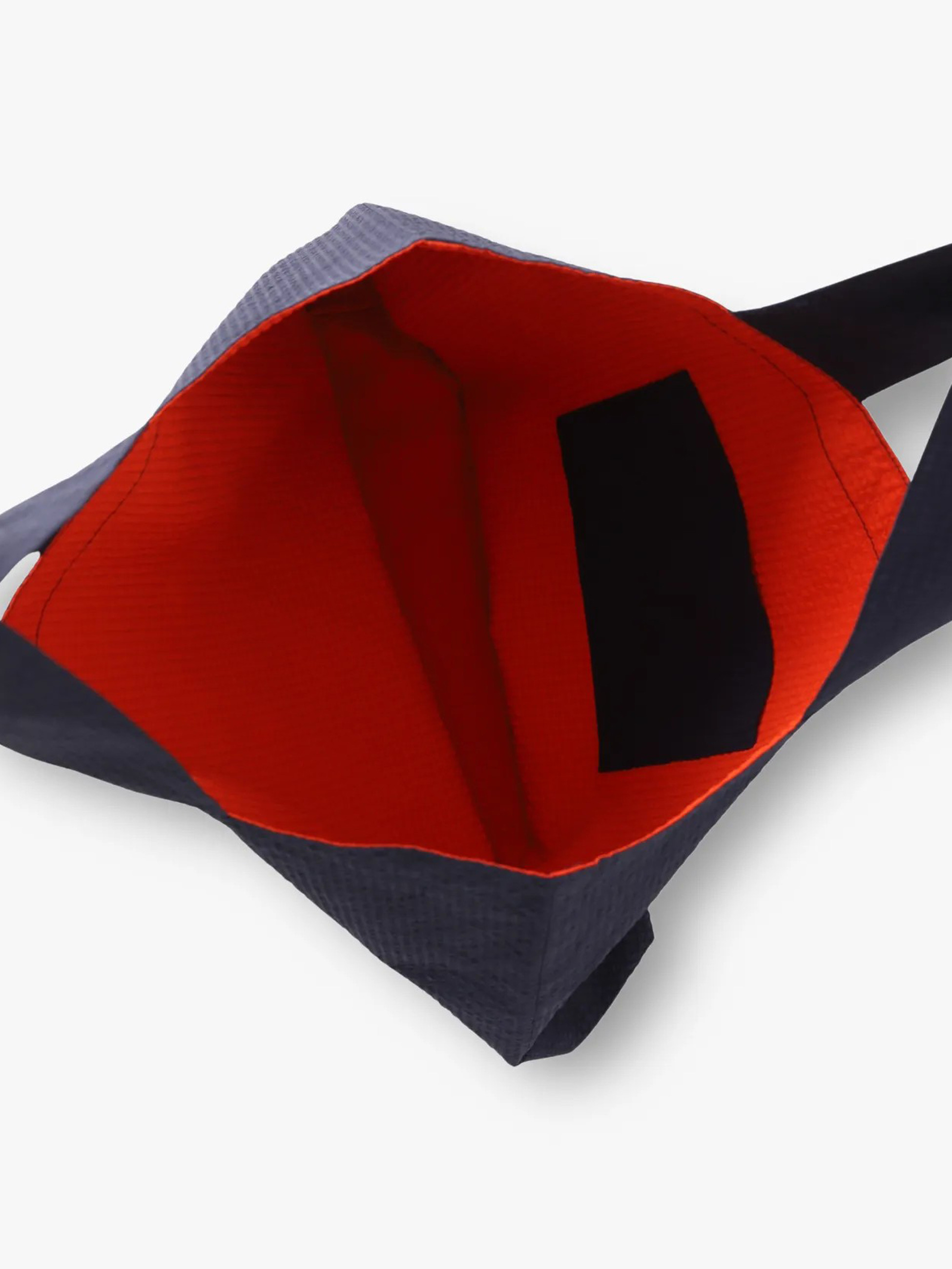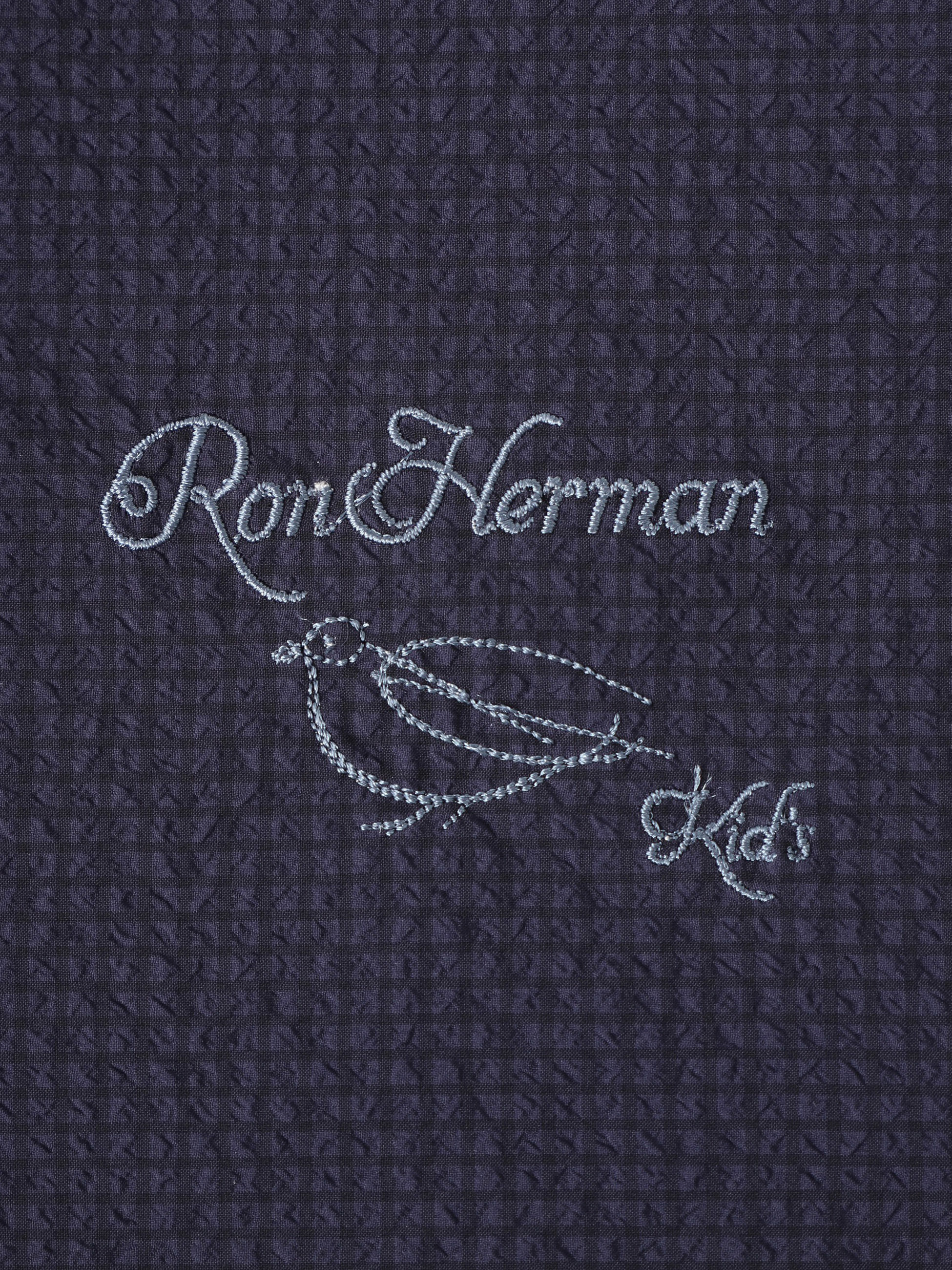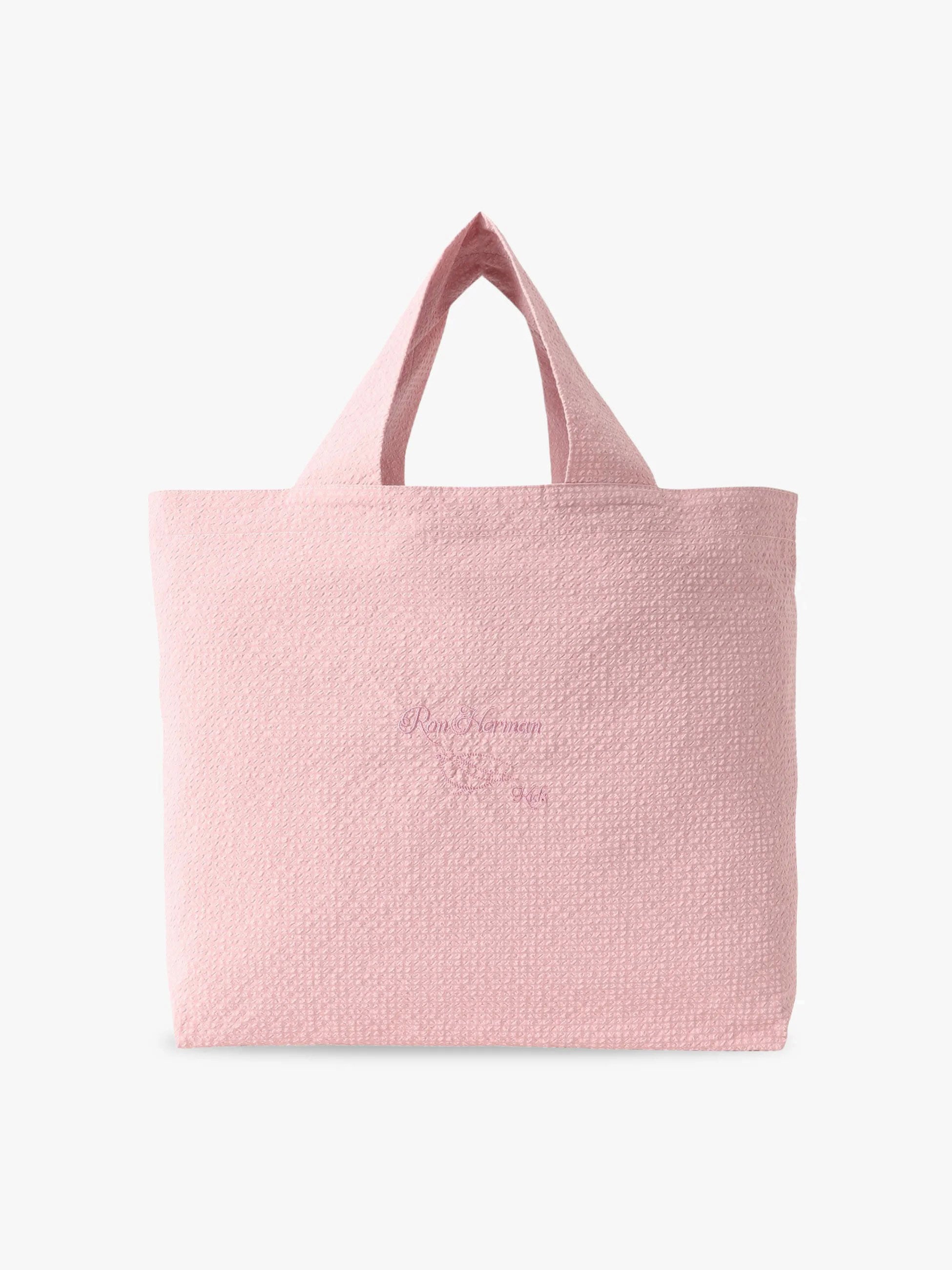 ロンハーマン オンラインストア5周年を記念し、大人気のレッスンバッグから限定アイテムが登場です。リバーシブルでお楽しみいただける配色デザインで、ブランドロゴと愛らしい鳥の刺繍をあしらい、大きなポケットを備えています。さらっと清涼感のある軽量なシアサッカー素材を使用し、シワになりにくく持ち運びにも便利。A4サイズもすっぽりと入り、汎用性も高くギフトにもおすすめです。