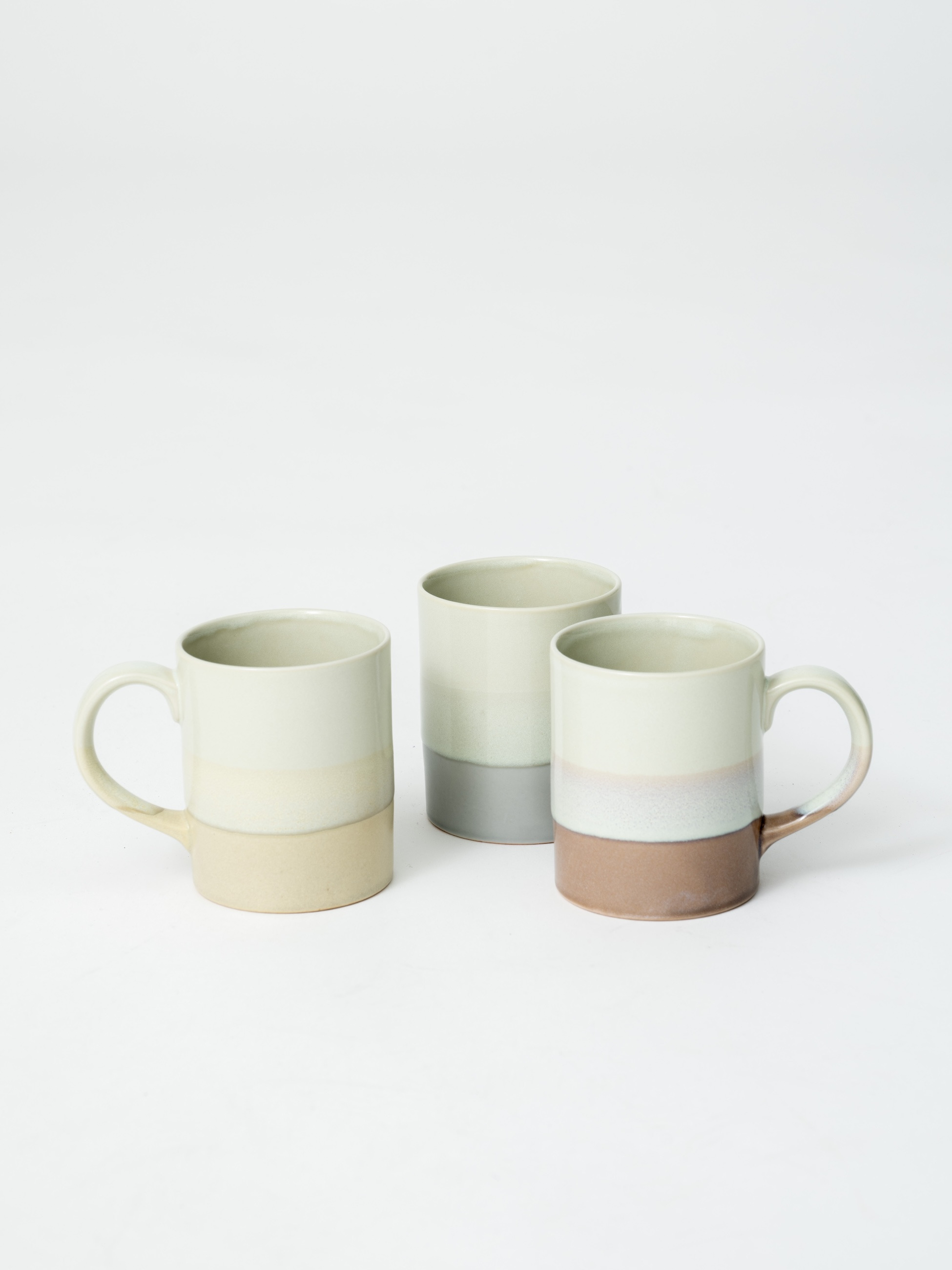 - 手に馴染むやわらかなフォルムと、ほどよい重みが心地よいマグカップ。同系色の釉薬を3色重ねることで生まれるグラデーションが飲み物の色を美しく引き立て、日常のコーヒーやティータイムをより豊かに演出してくれます。普段使いはもちろん、インテリアの一部として並べても楽しめる一品です。