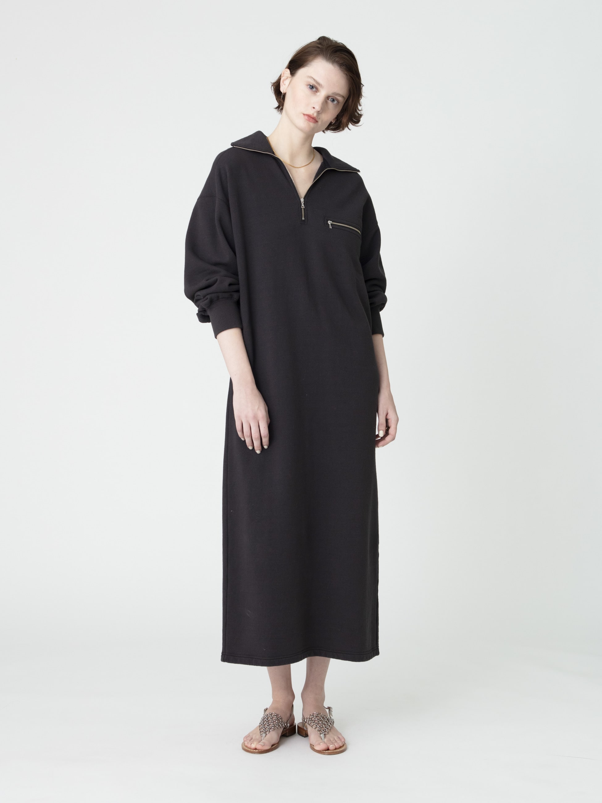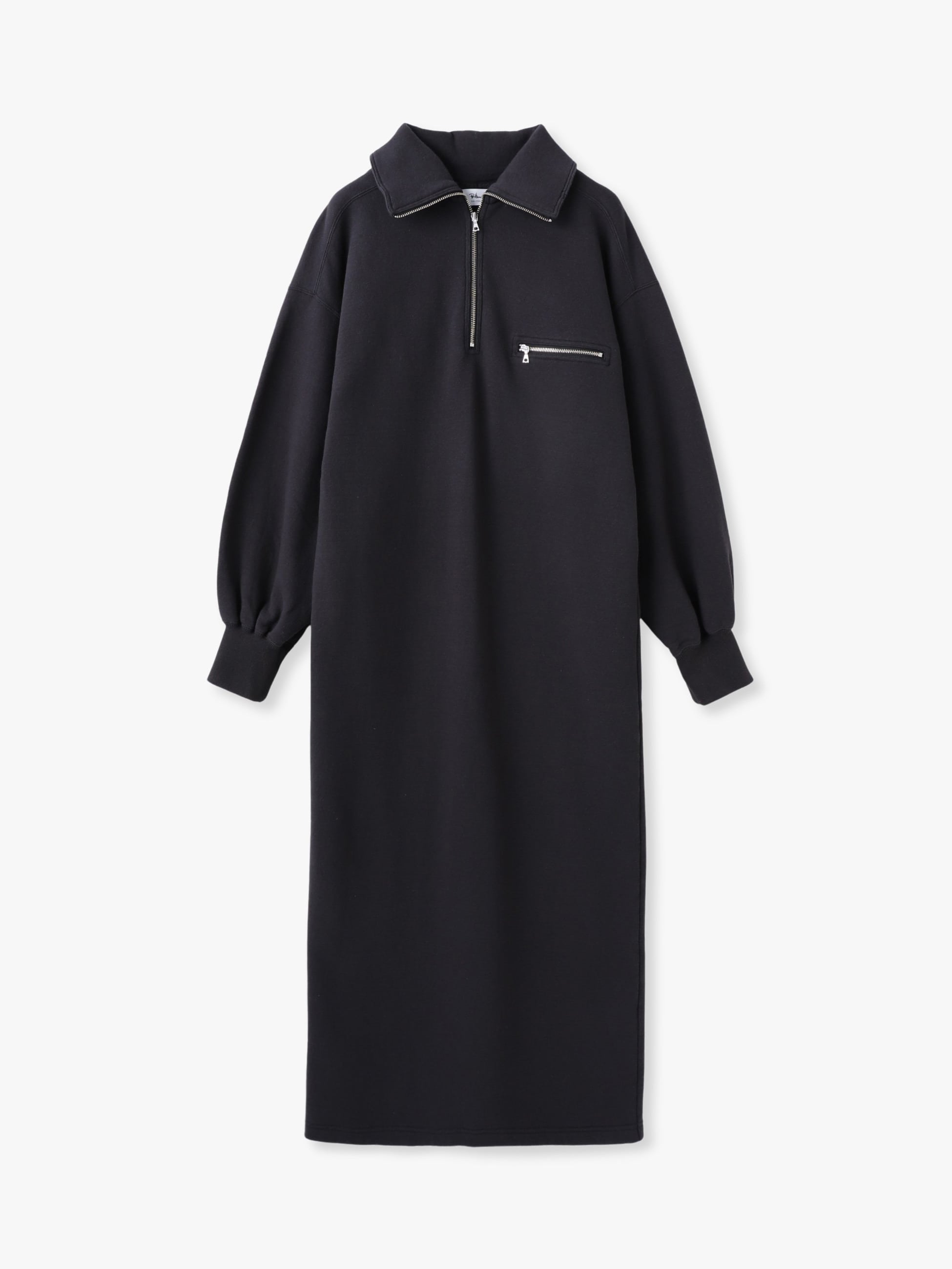 • ハーフジップ スウェット ドレス 詳細画像 black