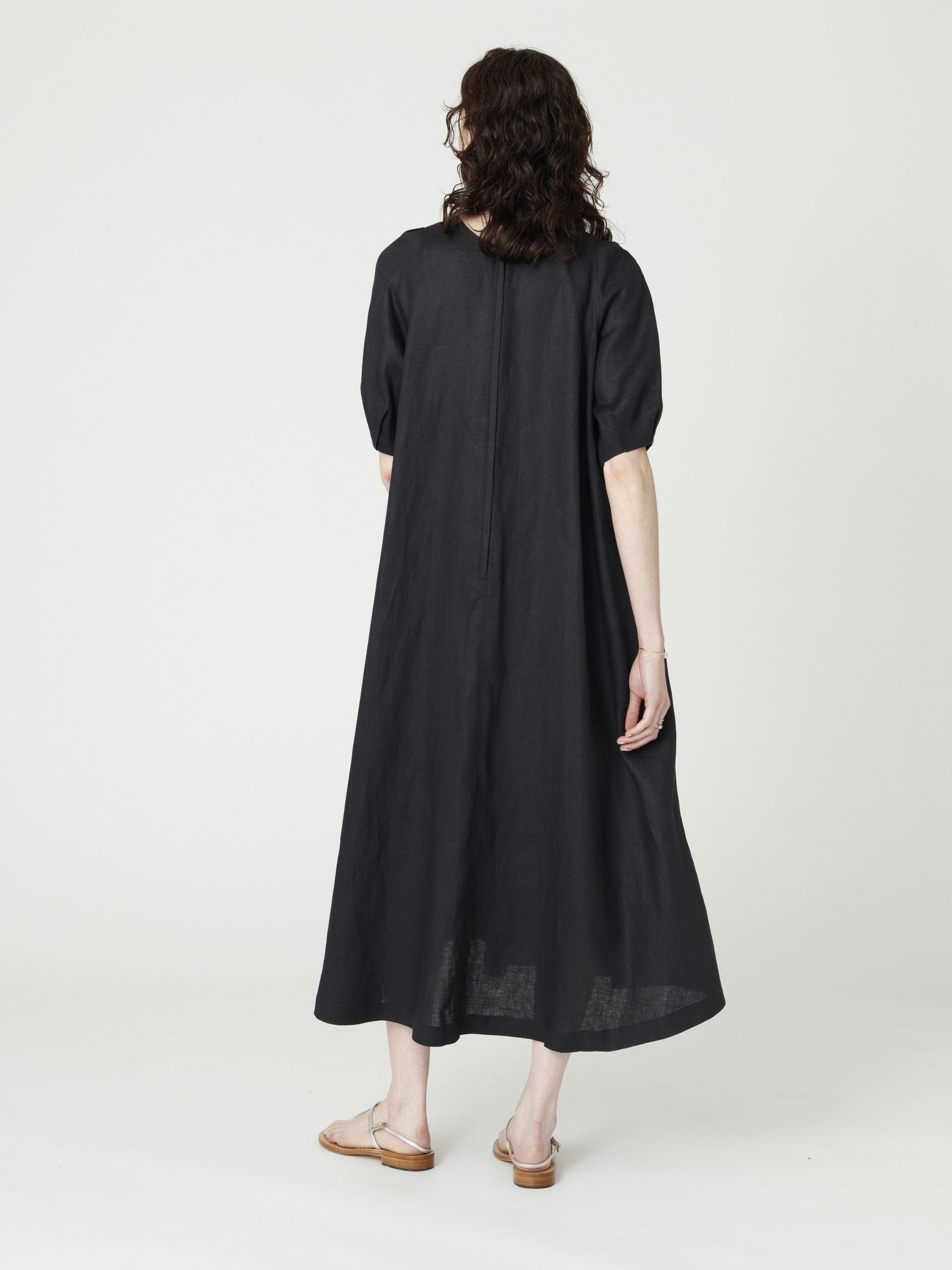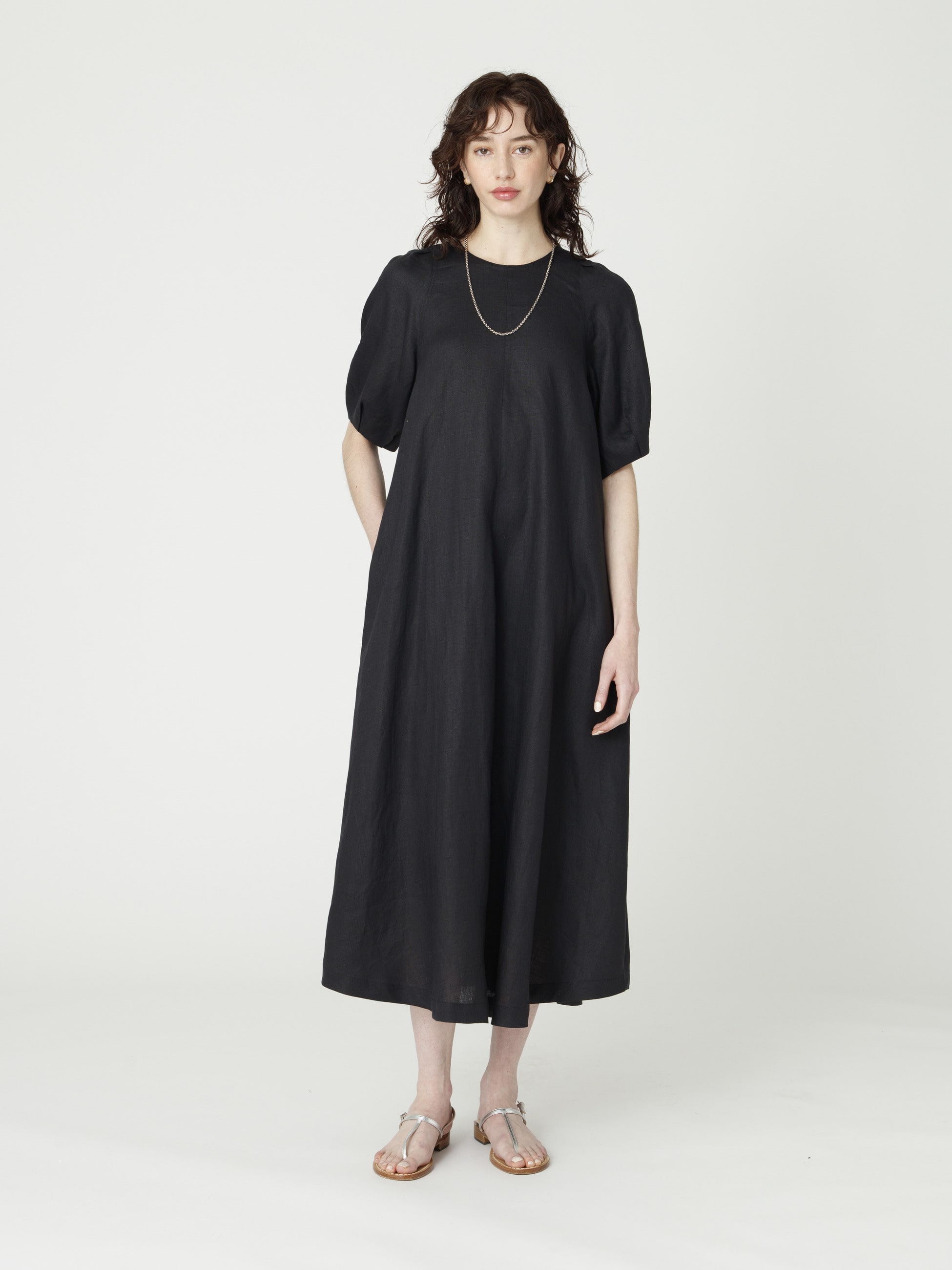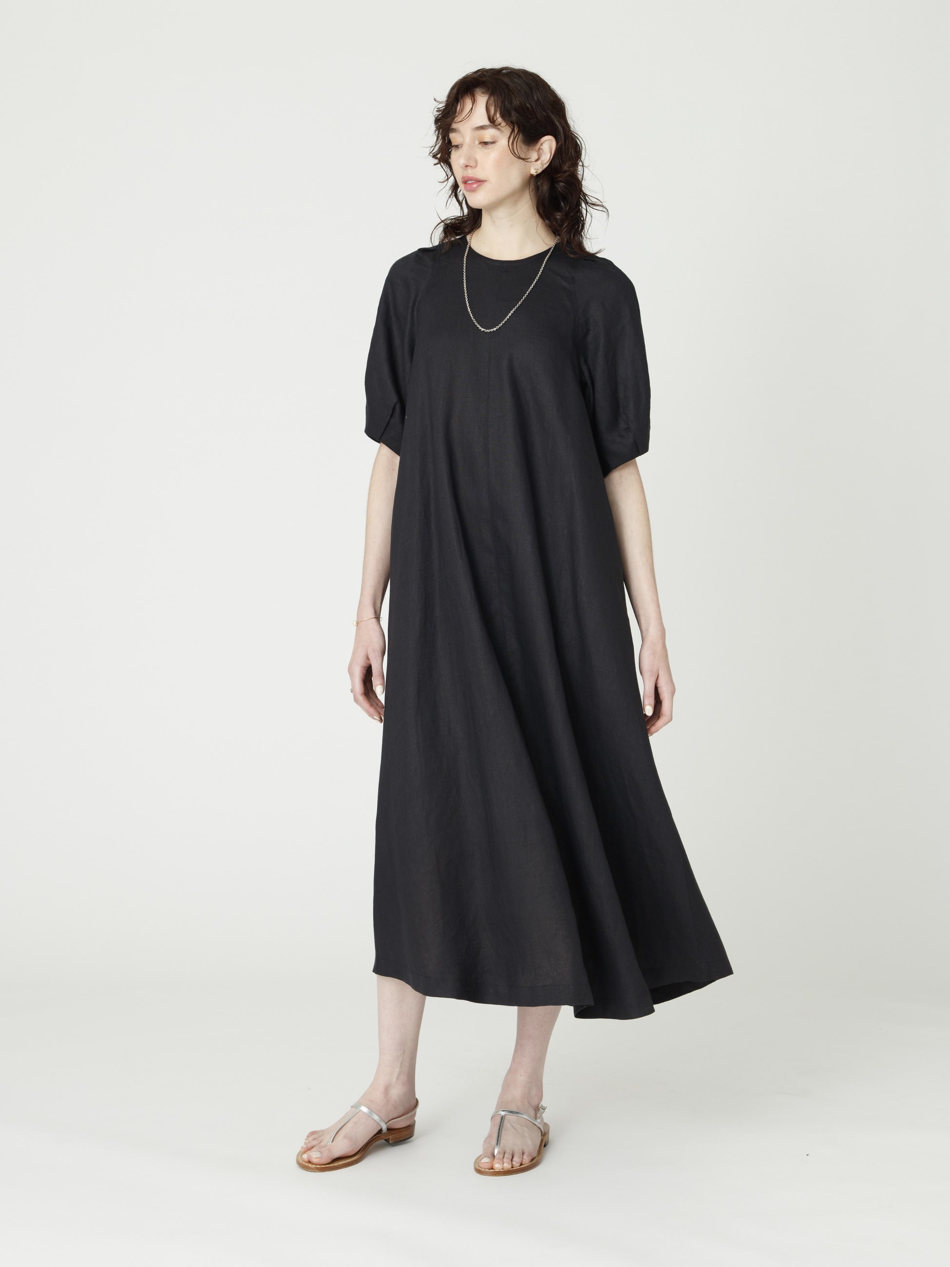 - ハリと光沢感の美しい軽やかなリネン素材のドレスは、バルーン袖とフレアシルエットが可愛らしく、二の腕が隠れる長めの袖も嬉しいポイントに。クローゼットにあるとつい手が伸びてしまう万能アイテムで、ブローチやスカーフなどと合わせた様々なアレンジをお楽しみいただけます。
