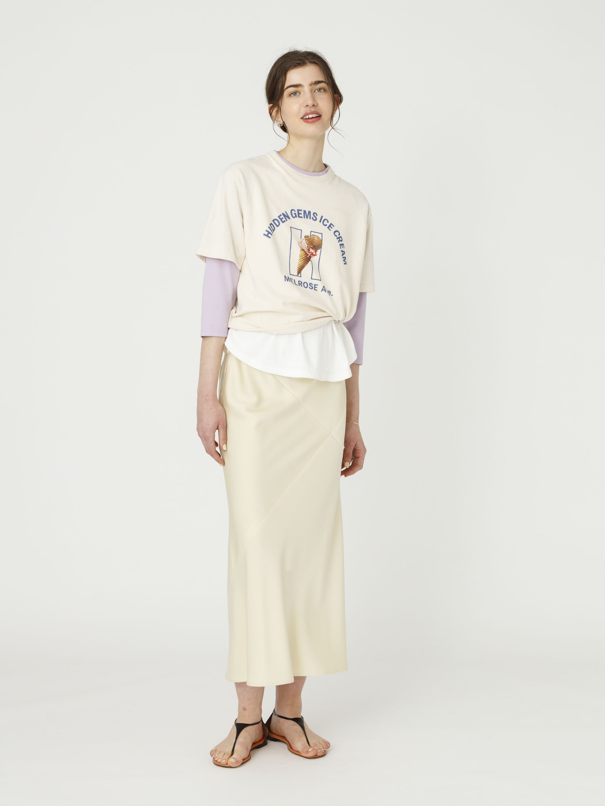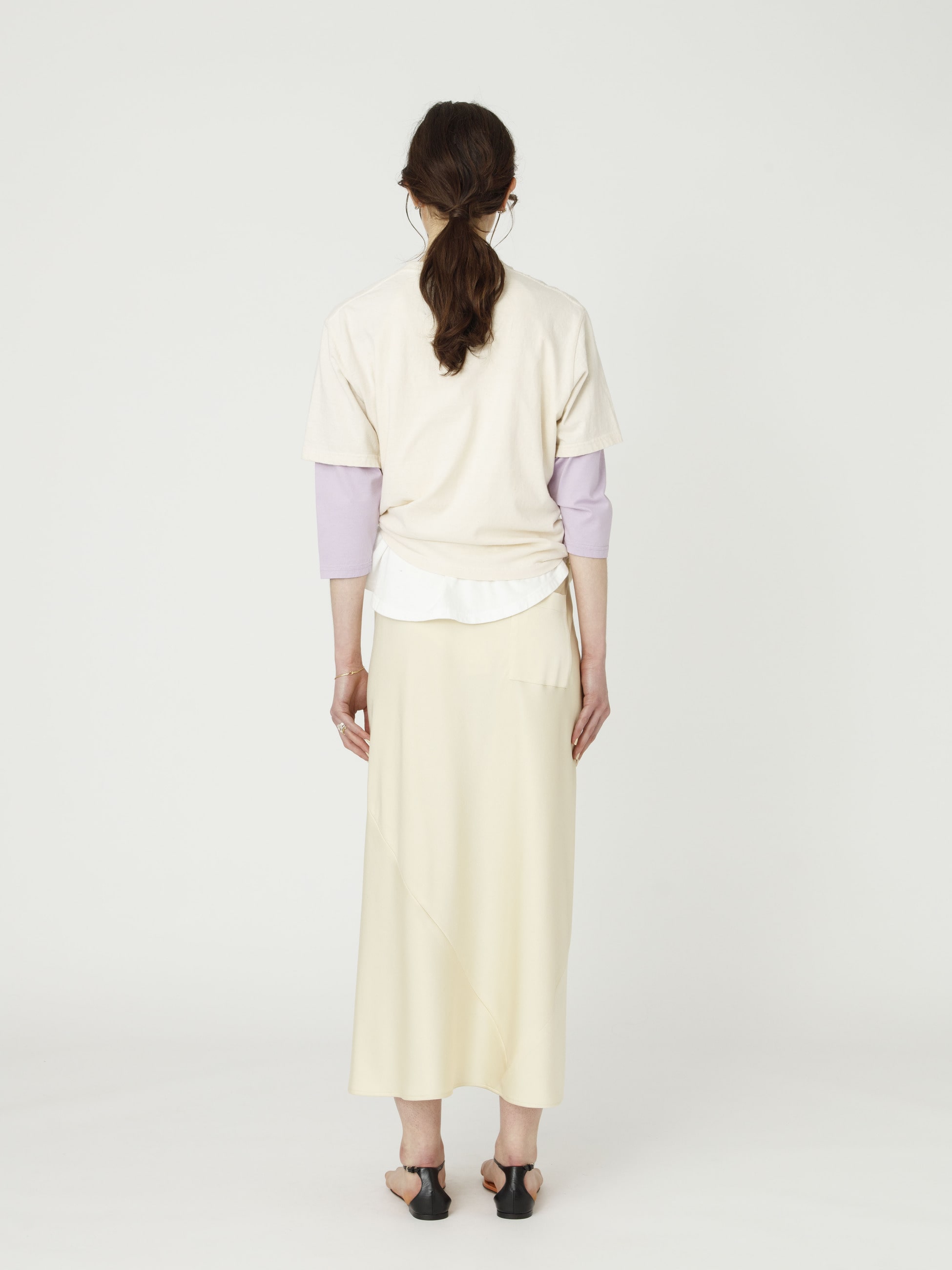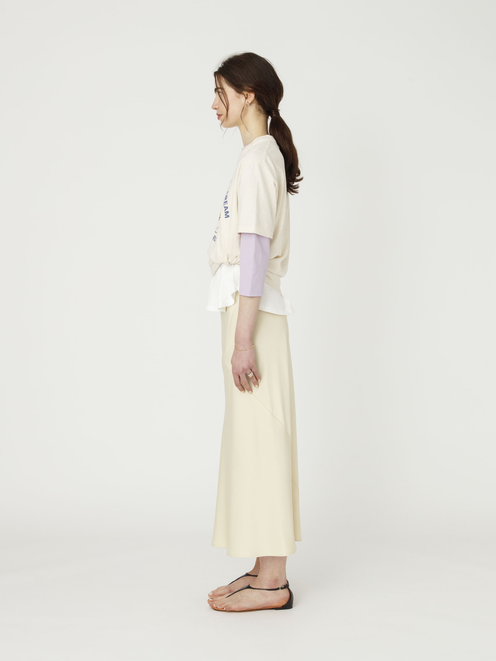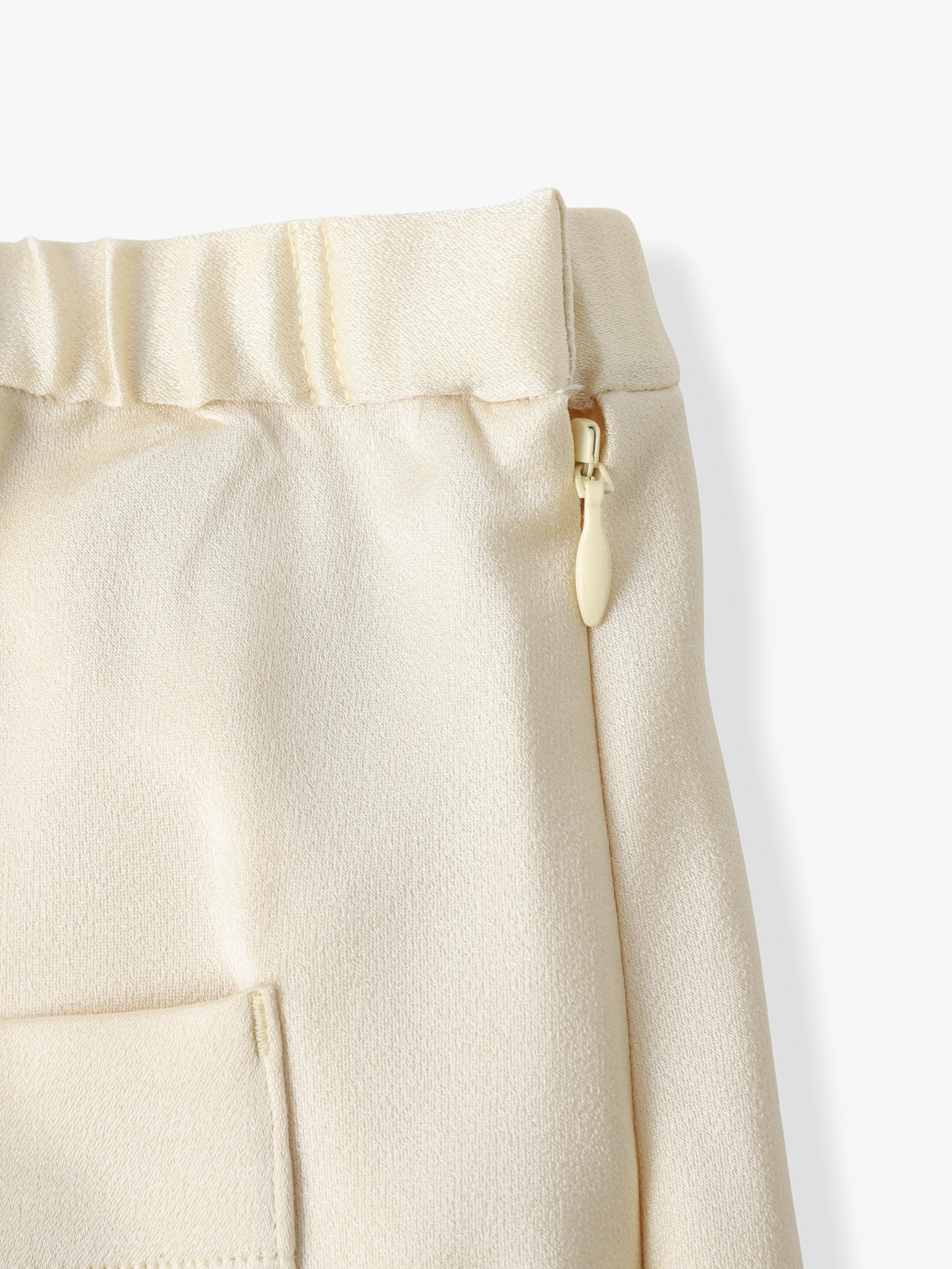 - 華やかな光沢が美しいサテンスカートは、パッチワークのような切り替えが、体のラインを綺麗に見せてくれます。ウエストがゴム仕様のイージーな穿き心地と、バランスの取りやすい着丈の長さが特徴で、オーバーサイズのTシャツや、スウェットとも好相性です。綺麗目からカジュアルまで幅広いシーンで活躍します。