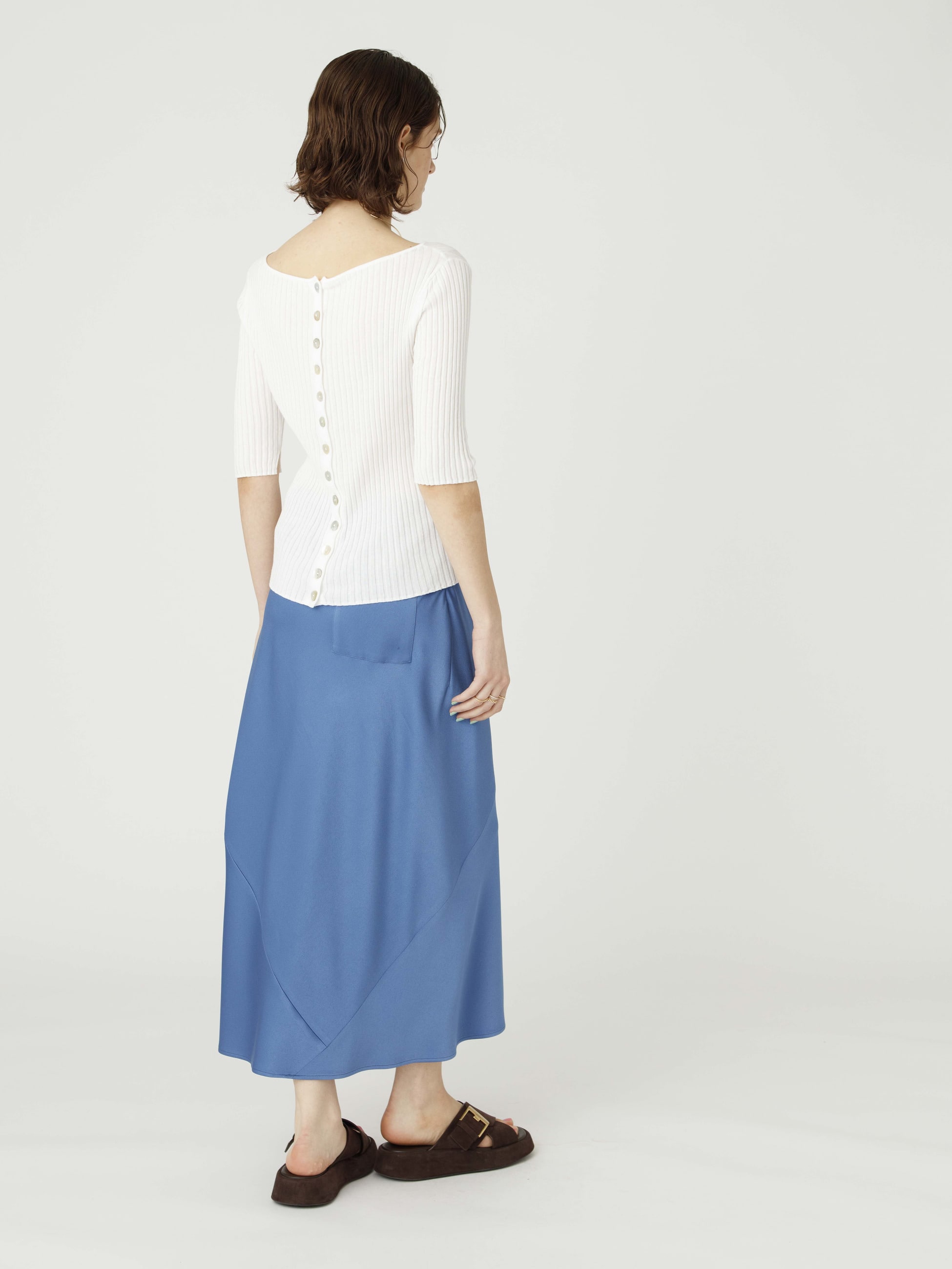 - 華やかな光沢が美しいサテンスカートは、パッチワークのような切り替えが、体のラインを綺麗に見せてくれます。ウエストがゴム仕様のイージーな穿き心地と、バランスの取りやすい着丈の長さが特徴で、オーバーサイズのTシャツや、スウェットとも好相性です。綺麗目からカジュアルまで幅広いシーンで活躍します。