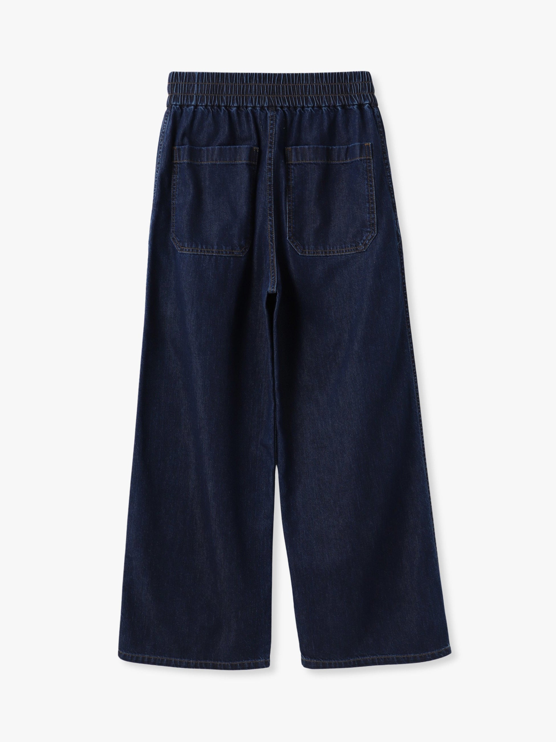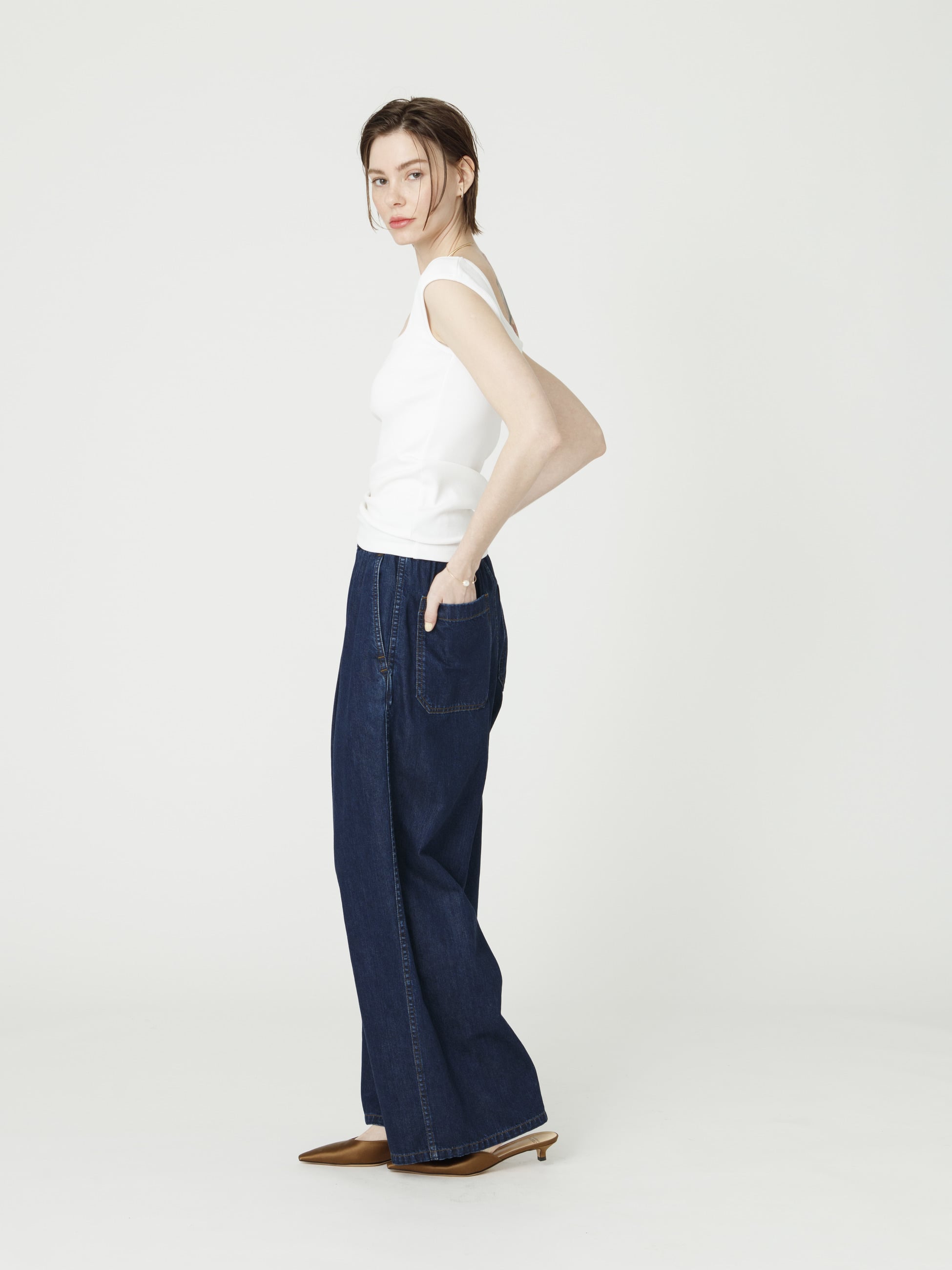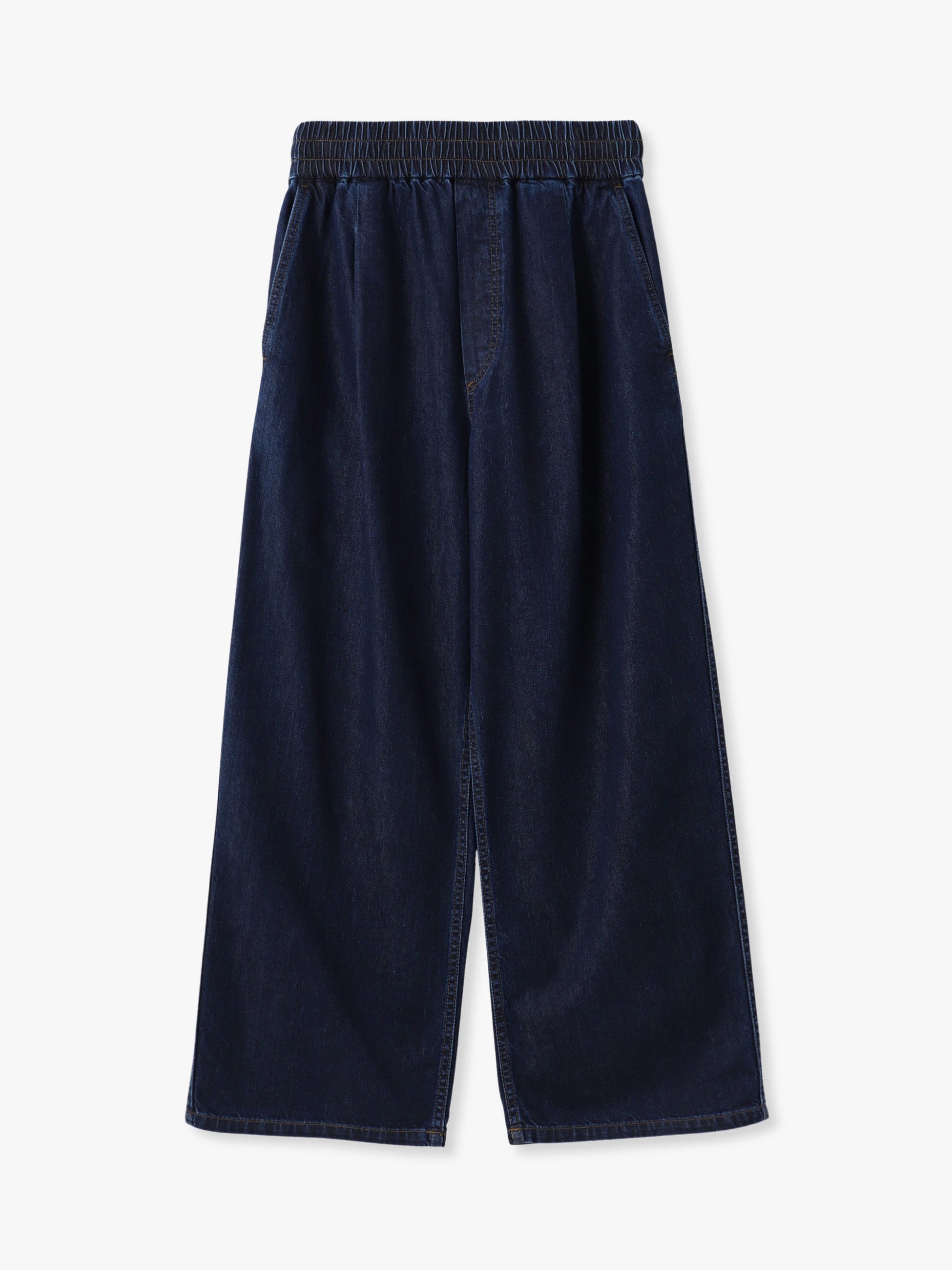 ゆったりとしたワイドシルエットのデニムパンツです。9.5ozの薄手のコットンテンセルデニムを使用し、程よい落ち感と柔らかい風合いを兼ね備えています。さらっとした肌触りなので、暑い時期にも快適な穿き心地です。ほのかに光沢感があるため、カジュアルながらも上品な印象の1枚です。