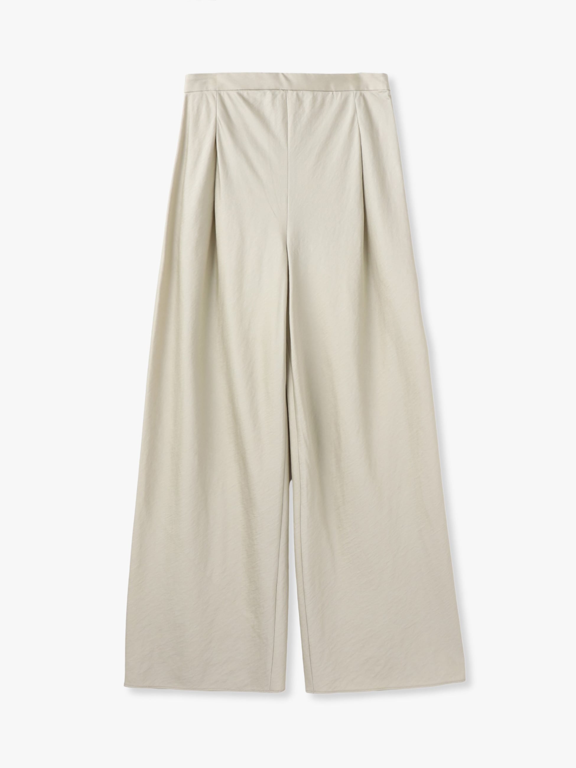 ナチュラルな光沢とシワ感が特徴のサテン素材を使用したワイドパンツです。バイアスパターンの美しいストレートシルエットが上品な印象を引き立てます。ウエストのバックはゴム仕様で心地よく穿いていただけ、ほどよい厚みとハリ感を備え、透け感が気になりにくいのも嬉しいポイントです。同シリーズのマキシスカートもございます。