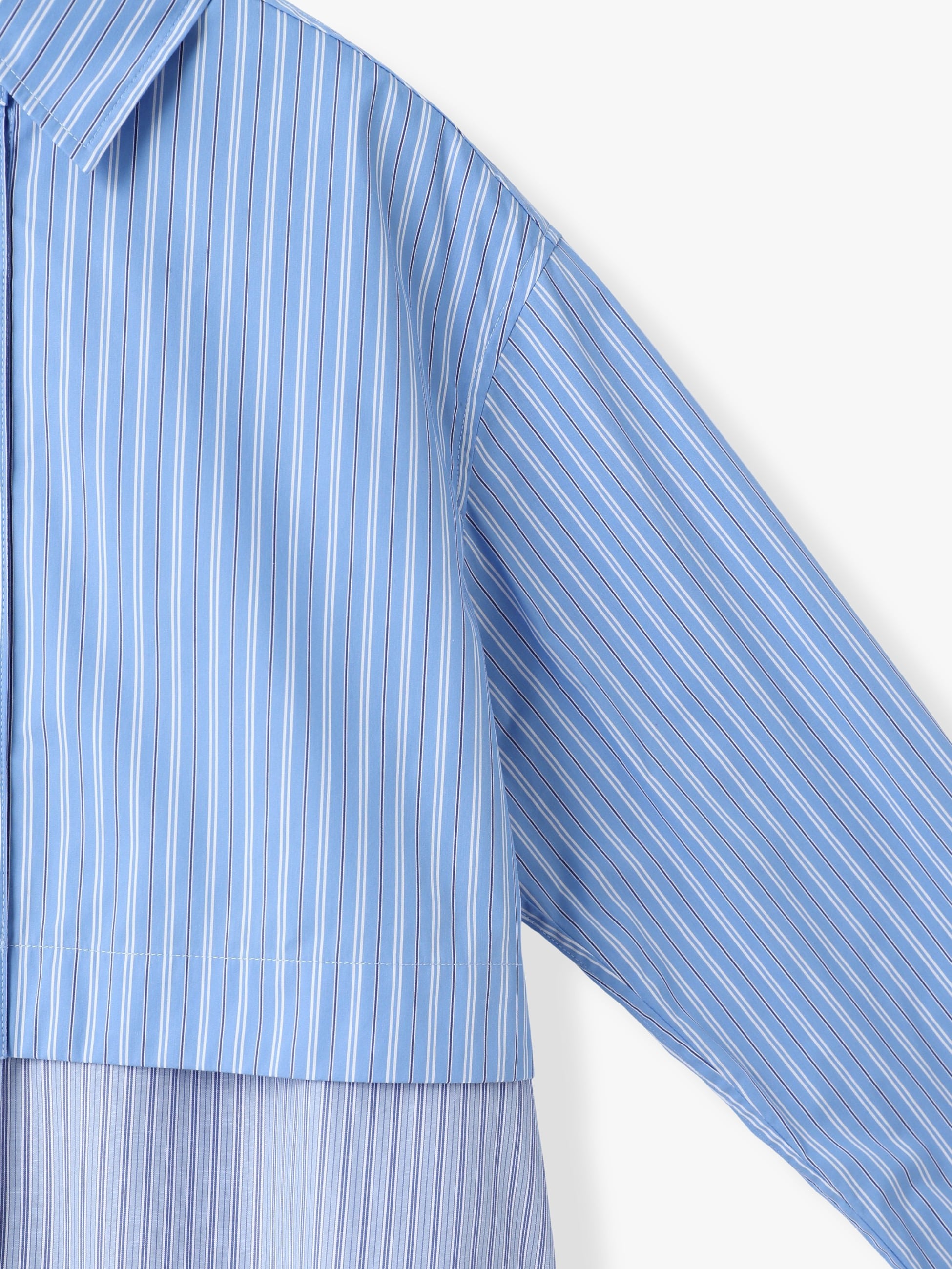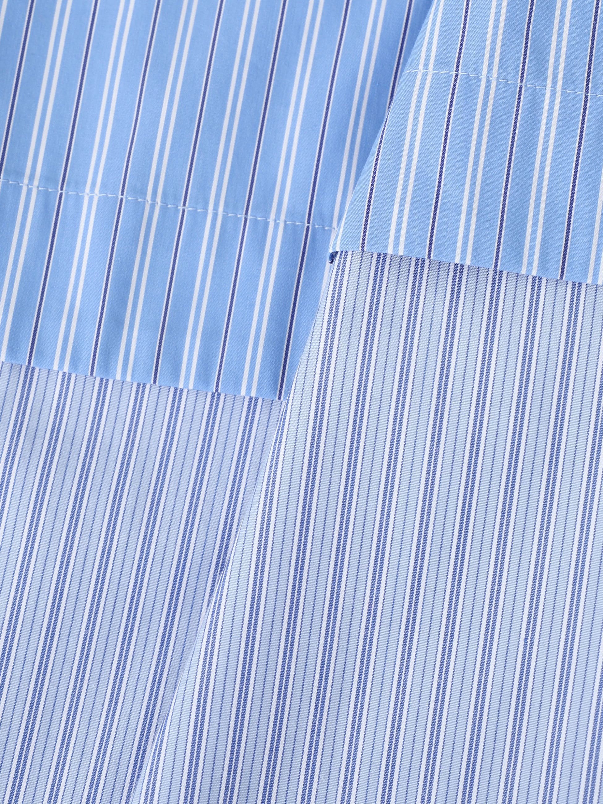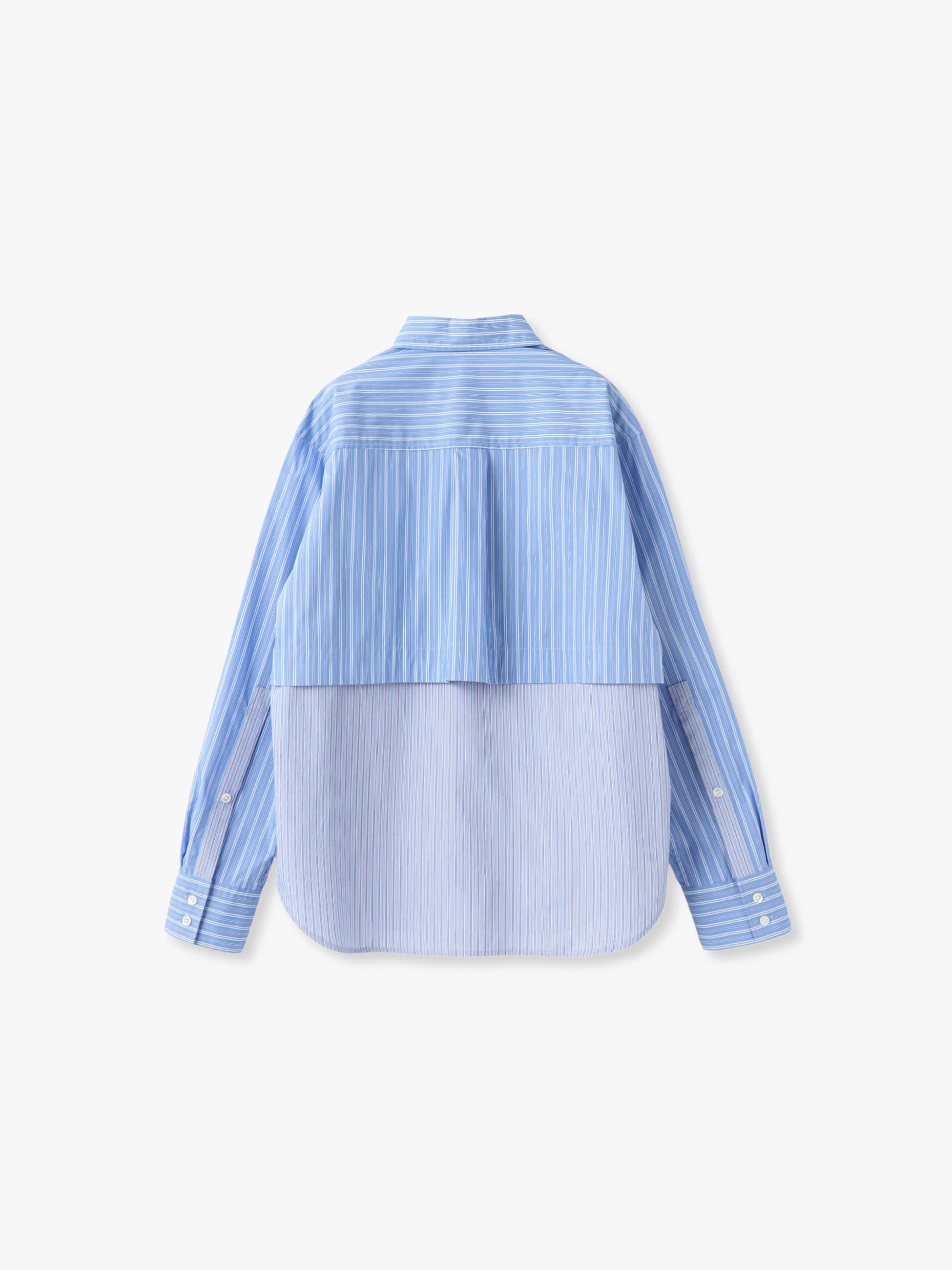 - 異なるストライプ柄のシャツをレイヤードしたようなデザインが新鮮なストライプシャツが登場です。春の装いにもぴったりなブルーとピンクの2色展開で、デニムやスウェットなど、シンプルなボトムを合わせるだけで遊び心のあるスタイリングをお楽しみいただけます。