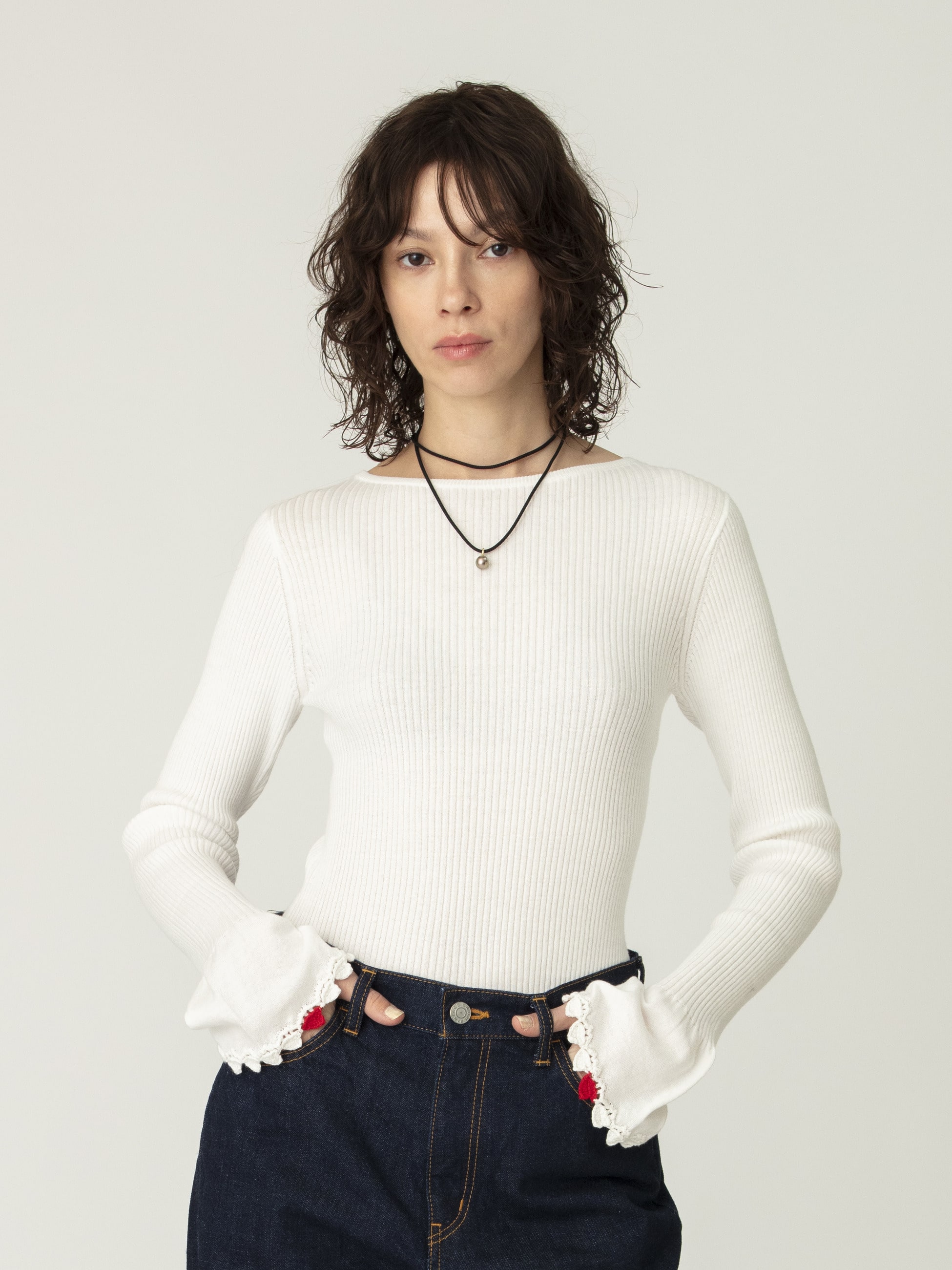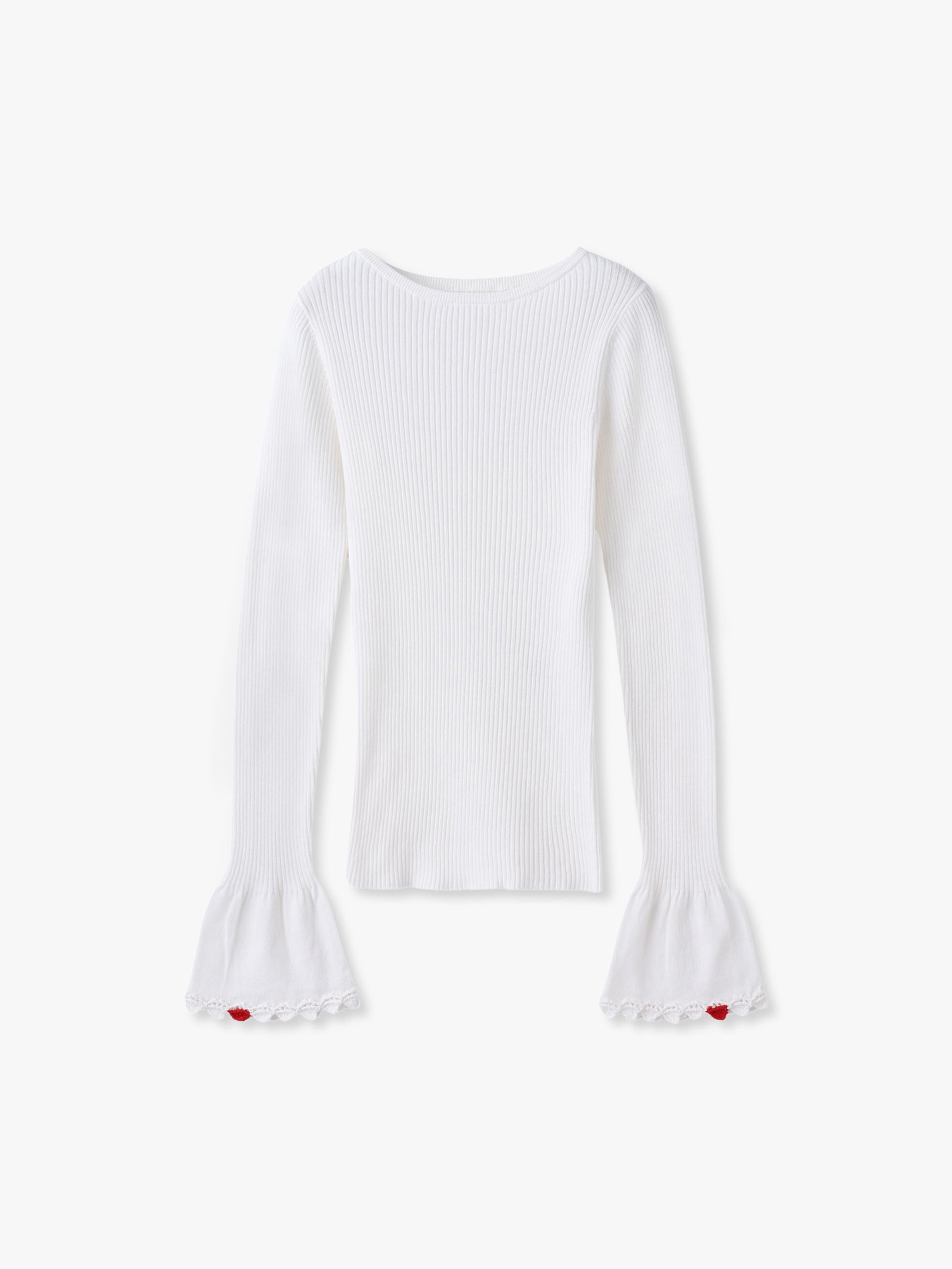 • ハート クロシェ リブ ニットトップ 詳細画像 white