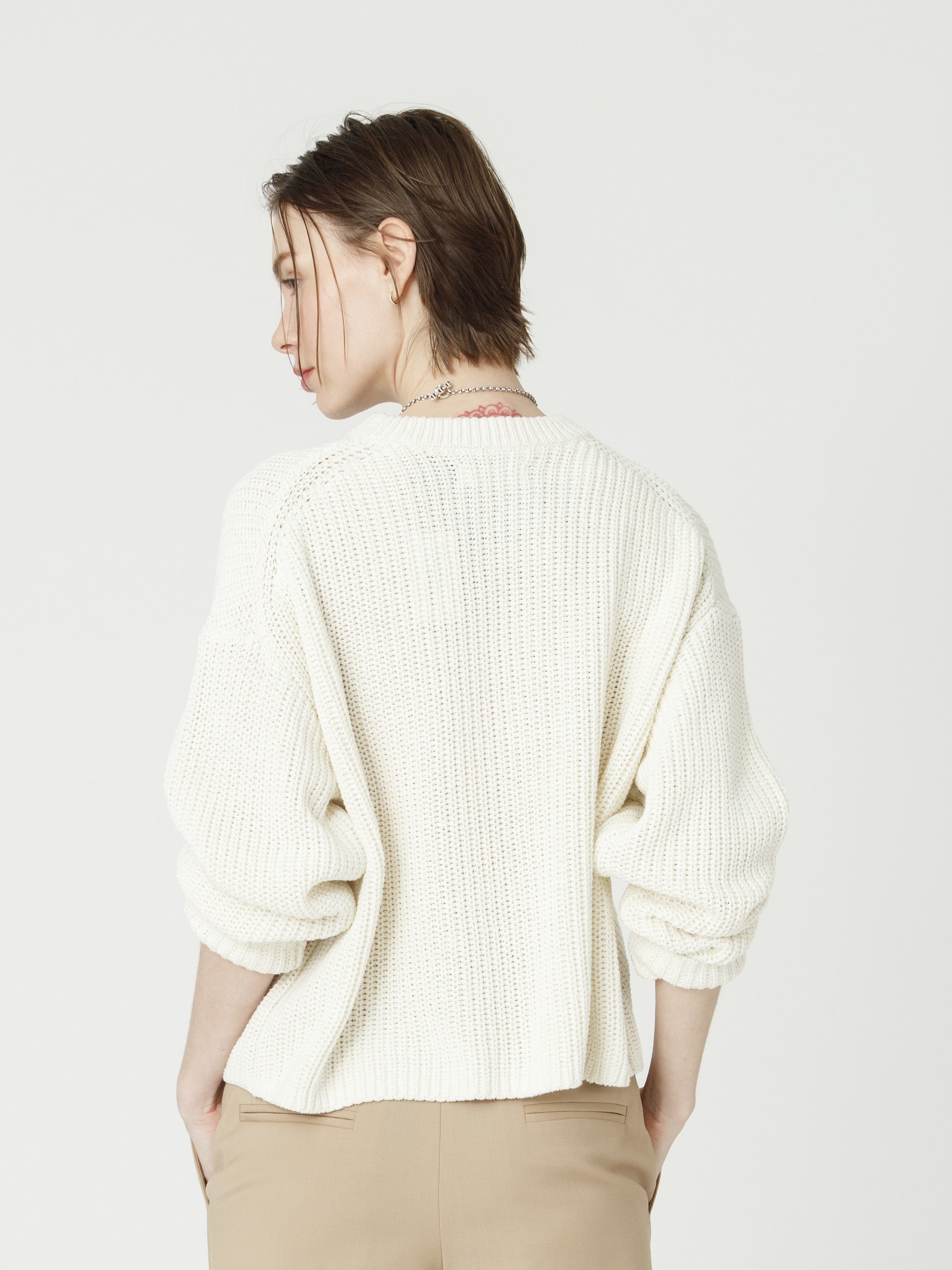 - シルクを贅沢に100%使用したローゲージ編みのニットトップスです。ギマ加工を施すことでハリ感を生み、シルクならではの艶も引き立つ美しい風合いをお楽しみいただけます。ベーシックなホワイト、ブラックと春らしいピンクの3色展開で、ボトムスを選ばずスタイリングが上品に決まります。