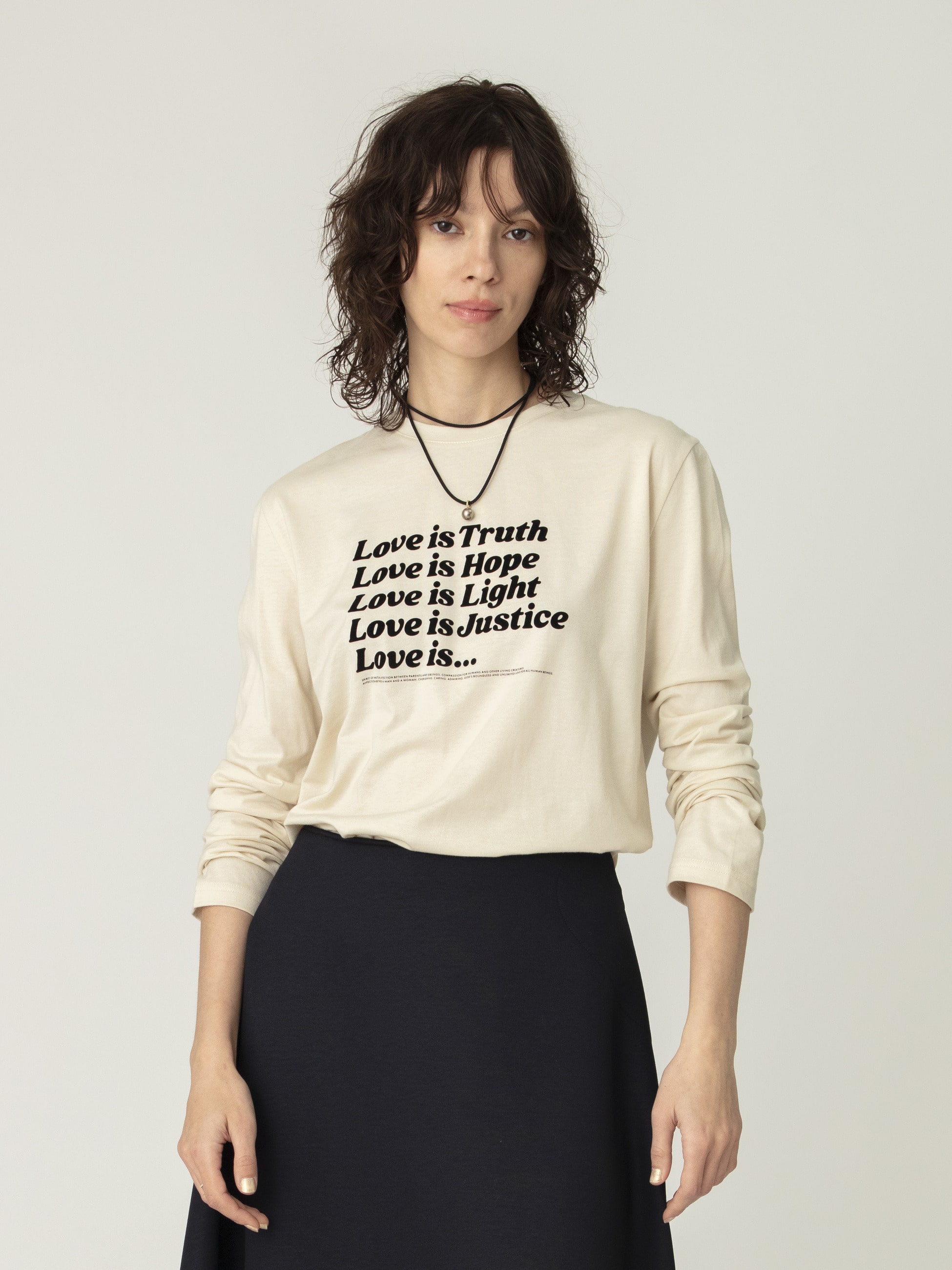 ロンハーマンオリジナルから、ハートモチーフをさりげなく忍ばせた心擽るアイテムが登場です。「Love is...」とメッセージの込められたロングスリーブティーは、コットンを100%使用し着心地も良く、デイリーに着回しのきく1着です。ジャケットやカーディガンのインナーとしてメッセージを覗かせても素敵です。