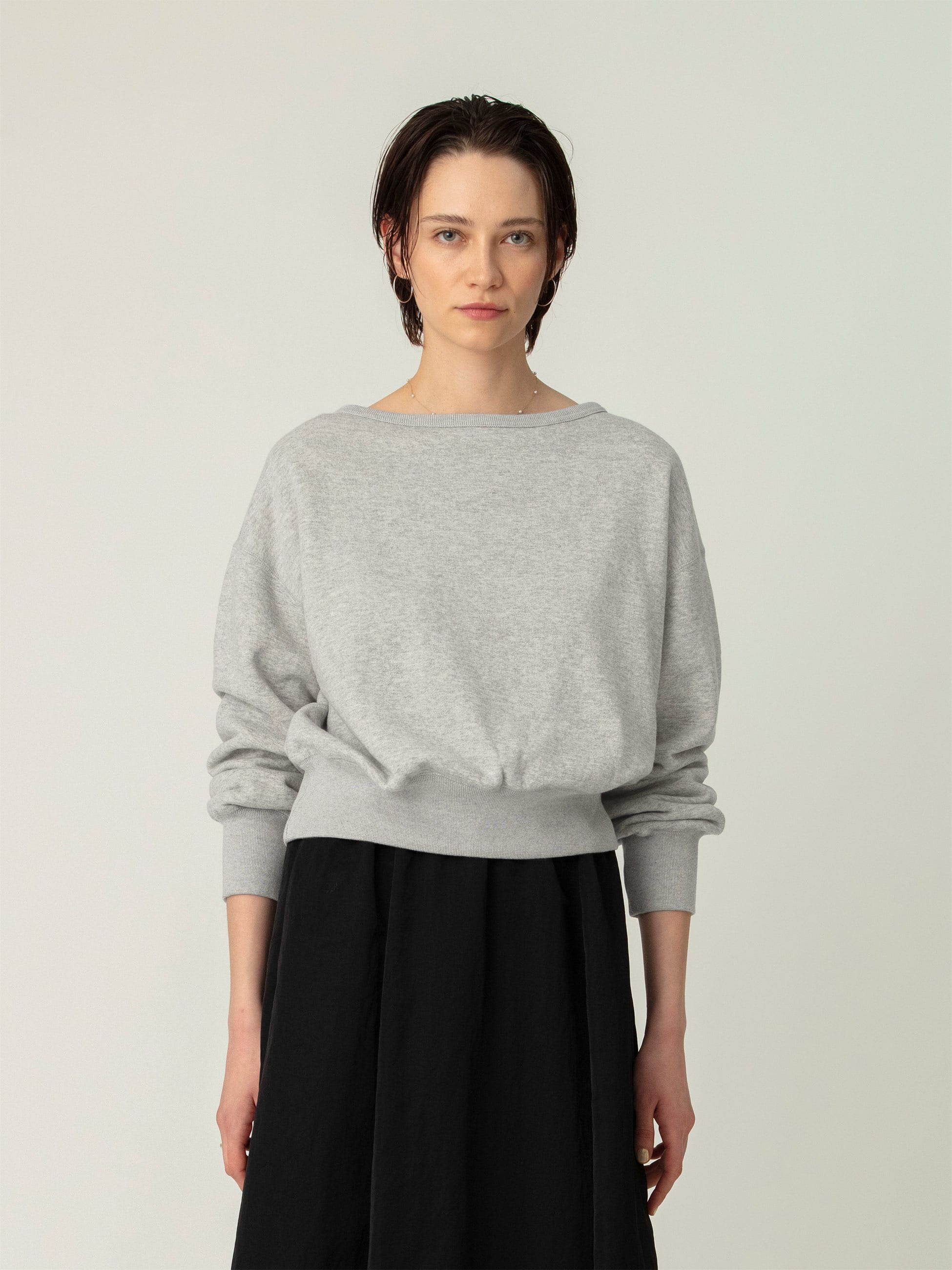 - 吊裏毛のスウェットプルオーバーは、厚みがありながらも柔らかく、もっちりとした肌触りが素肌に心地良い一着です。ボートネックとドロップショルダー、ややボリュームを持たせたスリーブが好バランスで、華やかな印象で着ていただけます。同シリーズのフーディーもございます。