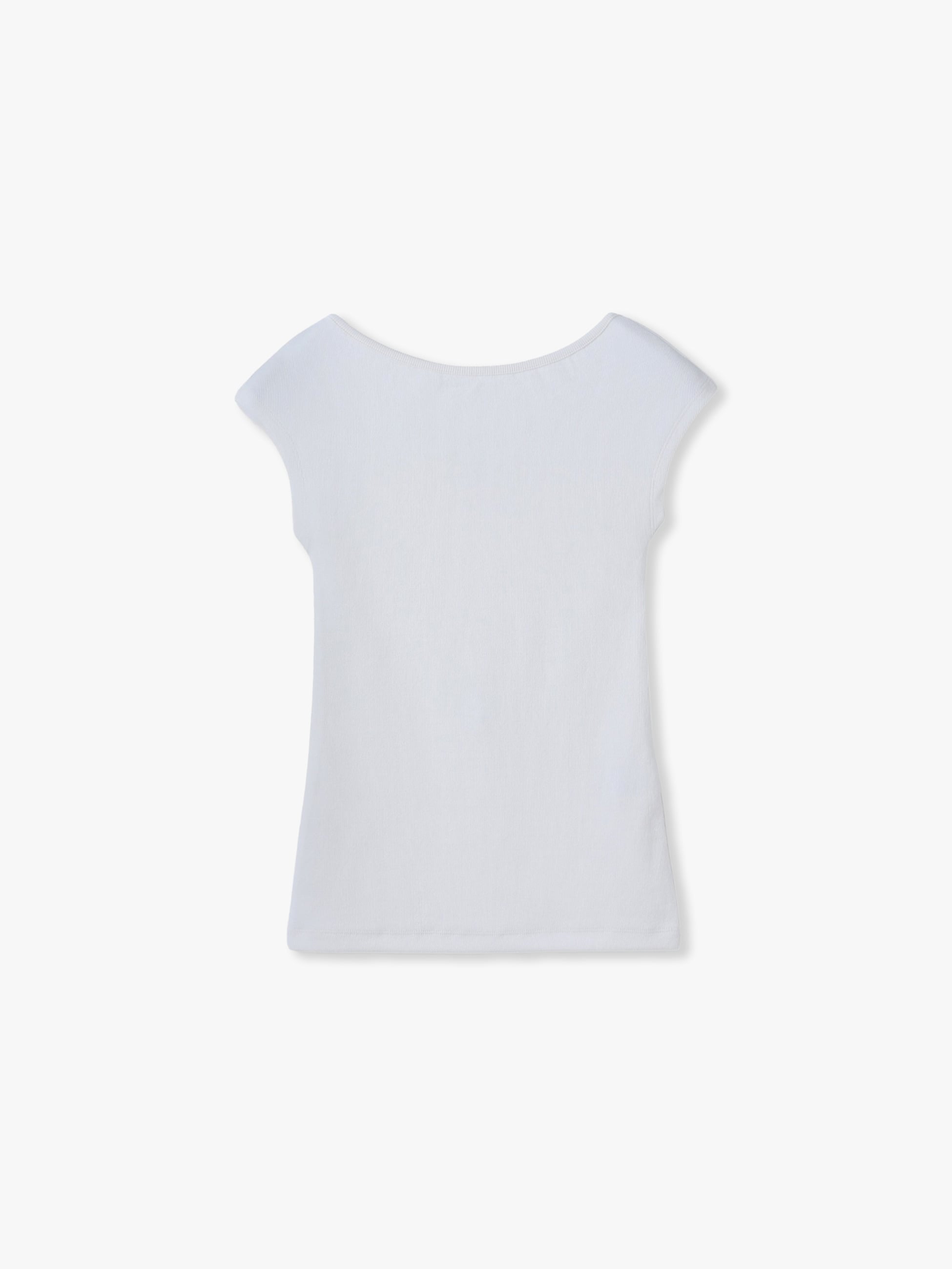 - 毎年定番のベアリブシリーズのフレンチスリーブトップスから26SSの新色としてブルーが登場。ストレッチの効いたリブ生地は、フィット感のある快適な着心地で、繰り返し着用してもきれいな生地感を保ちます。フロントは上品なボートネックで、肩を程よくカバーしながら洗練された印象に。バックスタイルは大胆に開いたデザインで、後ろ姿まで美しく演出します。同素材を使用したスリーブレストップスの展開もございます。