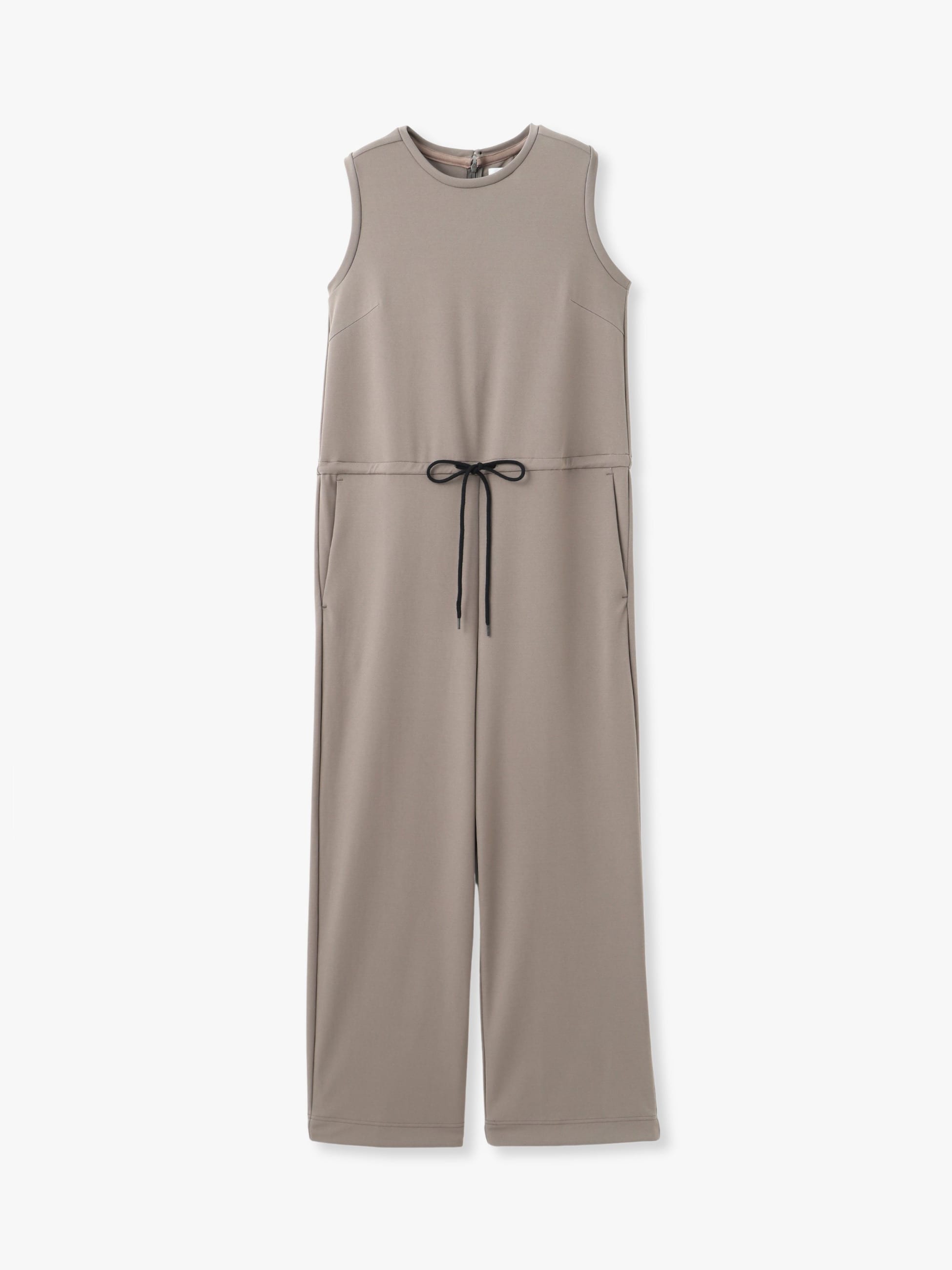 - ふくらみのあるダンボール素材を使用した、スリーブレスのオールインワンは、さらっとした肌触りが心地よく、身体のラインを拾いすぎない、上品なシルエットが特徴です。ウエストのドローコートを絞り、ブラウジングして着ることができ、リラックス感と洗練された印象を引き立てます。