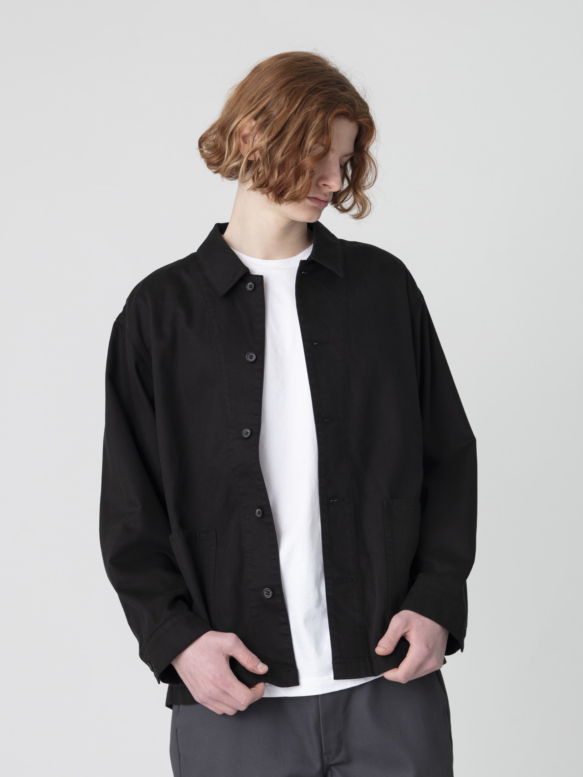 - コットンとリヨセルの混紡糸のツイル生地を使用したカバーオールジャケット。ストーンウォッシュ加工とバイオウォッシュ加工を施した柔らかなドレープ性のある生地感とヴィンテージのような風合いが特徴です。また、トリプルステッチで仕上げた仕様やポケットのディテールなど細部まで拘ったつくりも魅力のひとつ。ゆったりとしたフィットは、デイリーユースしやすい一着です。