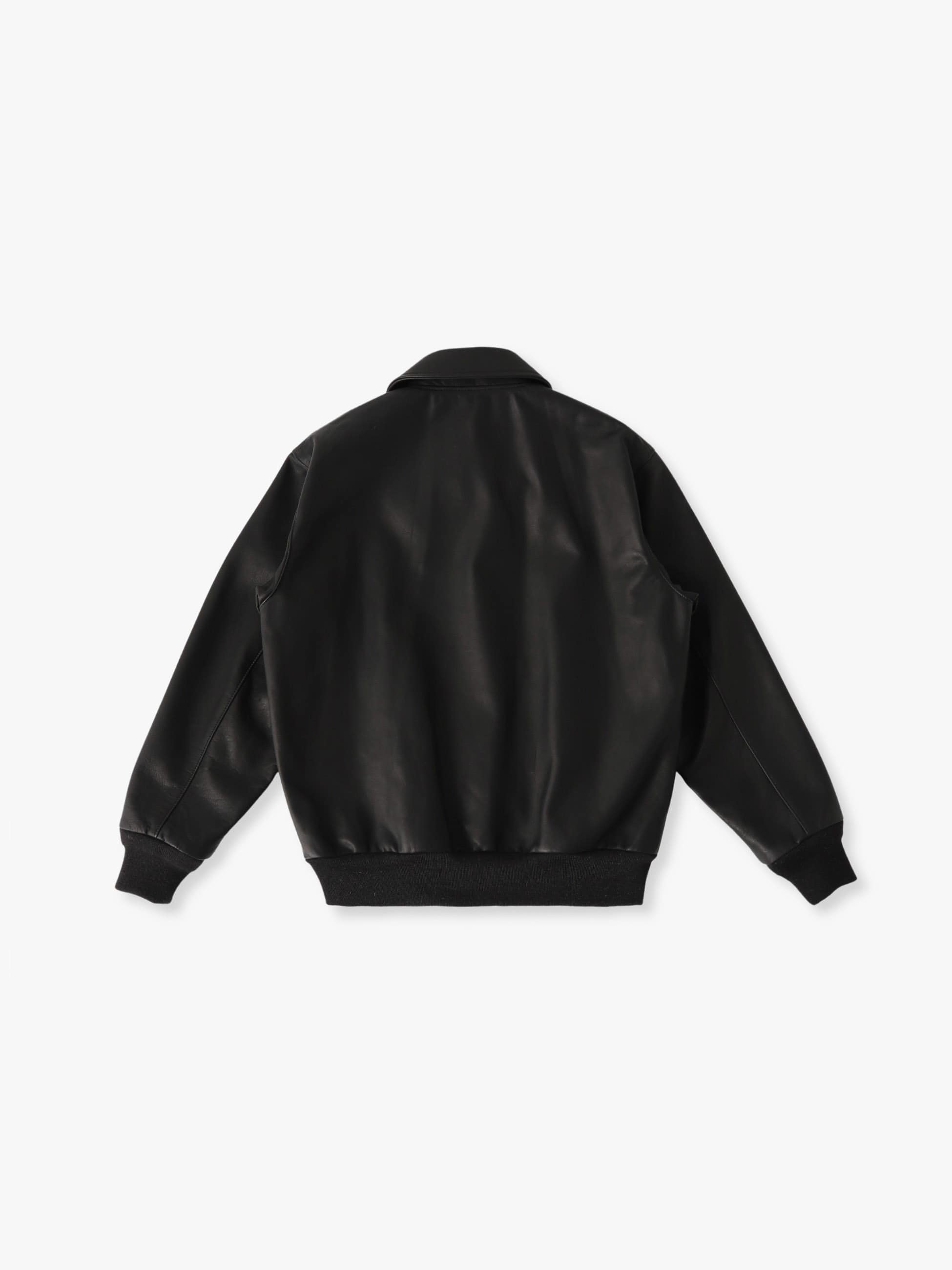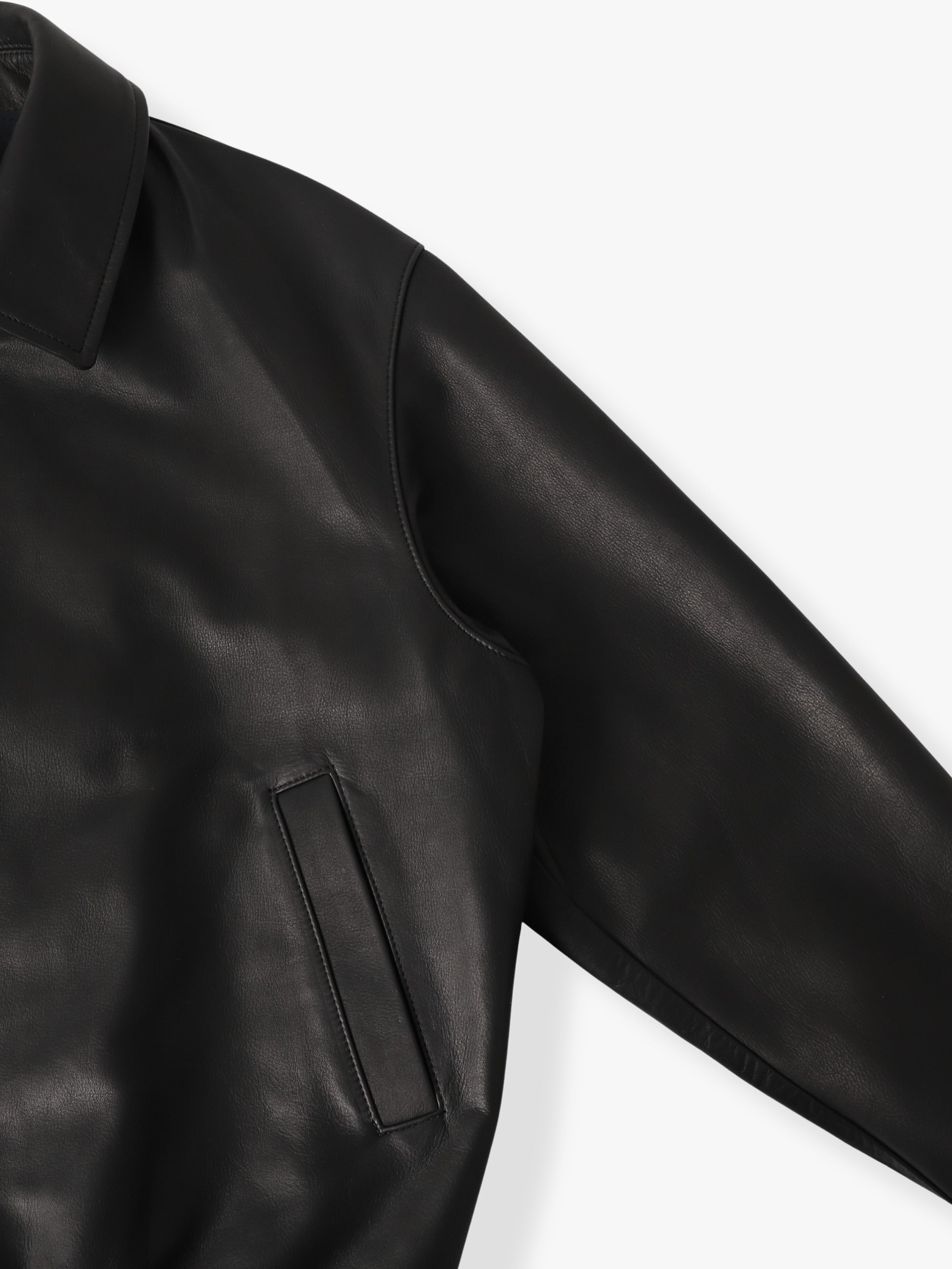 - 表地に上質な牛革と裏地にシルクナイロン素材を配したレザージャケット。表面に顔料加工による水性染料で芯まで染めたナチュラルなレザーは、しっとりとした肌触りと柔らかな風合いが特徴です。また、使い込むほどに肌なじみが増す経年変化を楽しめる素材や袖口と裾に配したリブ部分にはアルパカ100%素材を使用した滑らかな肌触りも魅力のひとつ。程よくゆったりとしたフィットは、コーディネートの主役になる1着です。