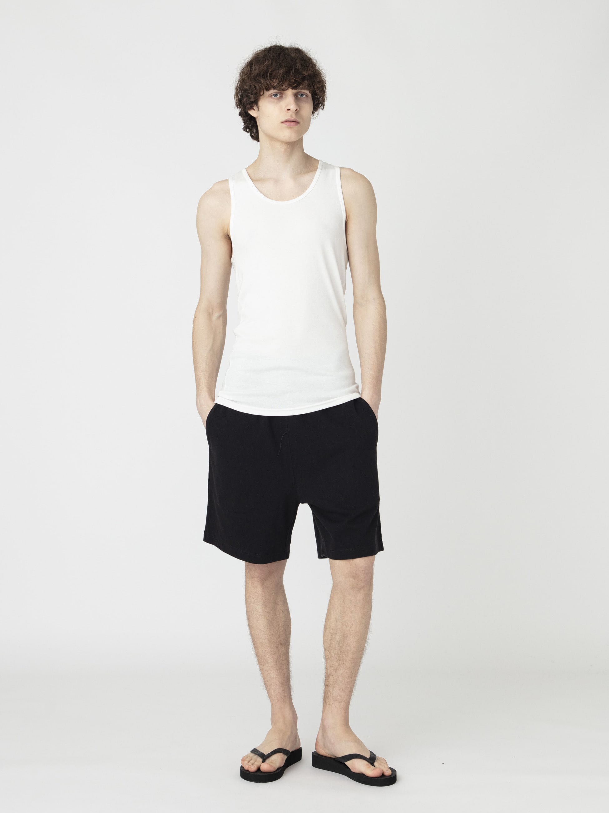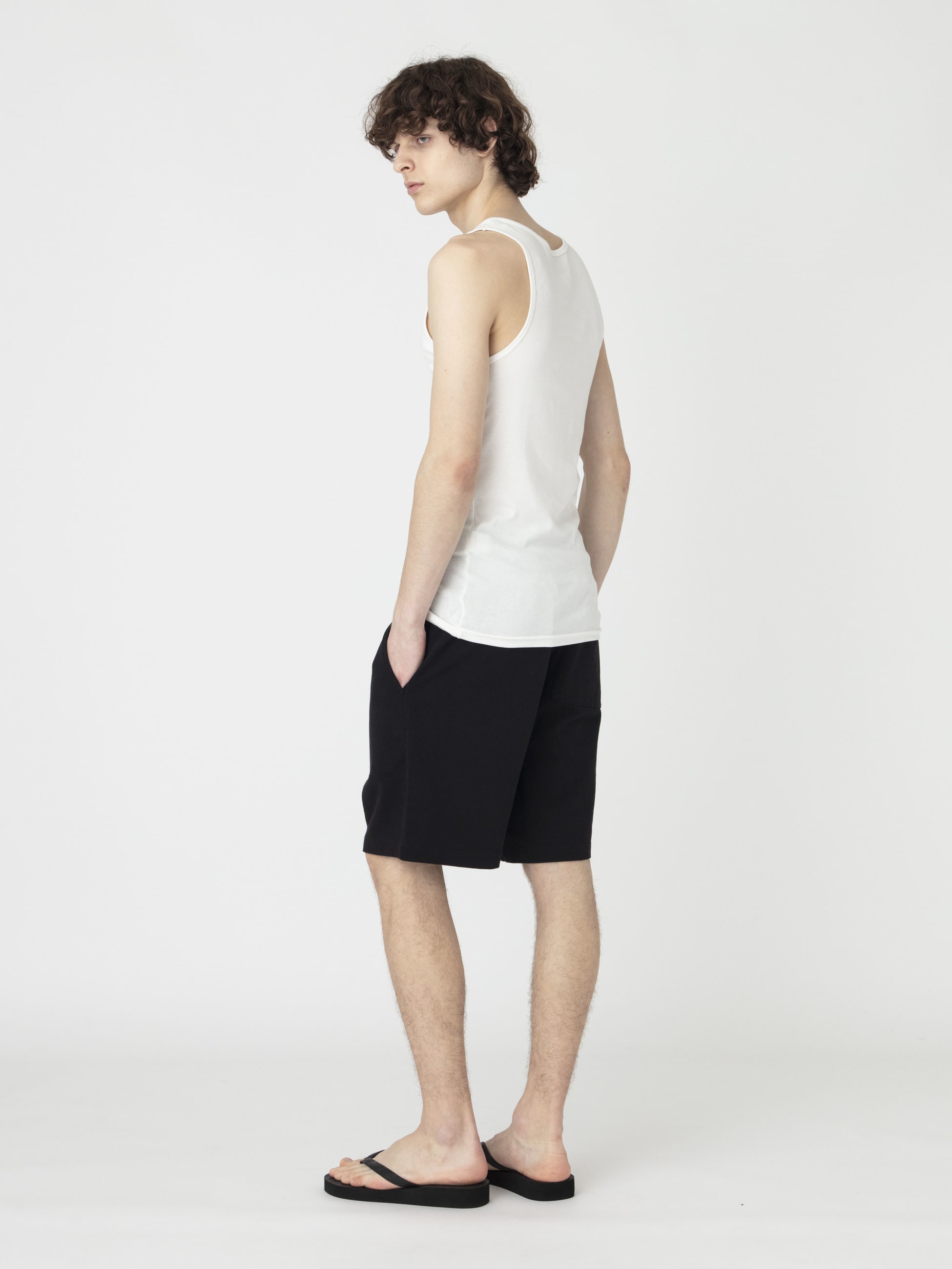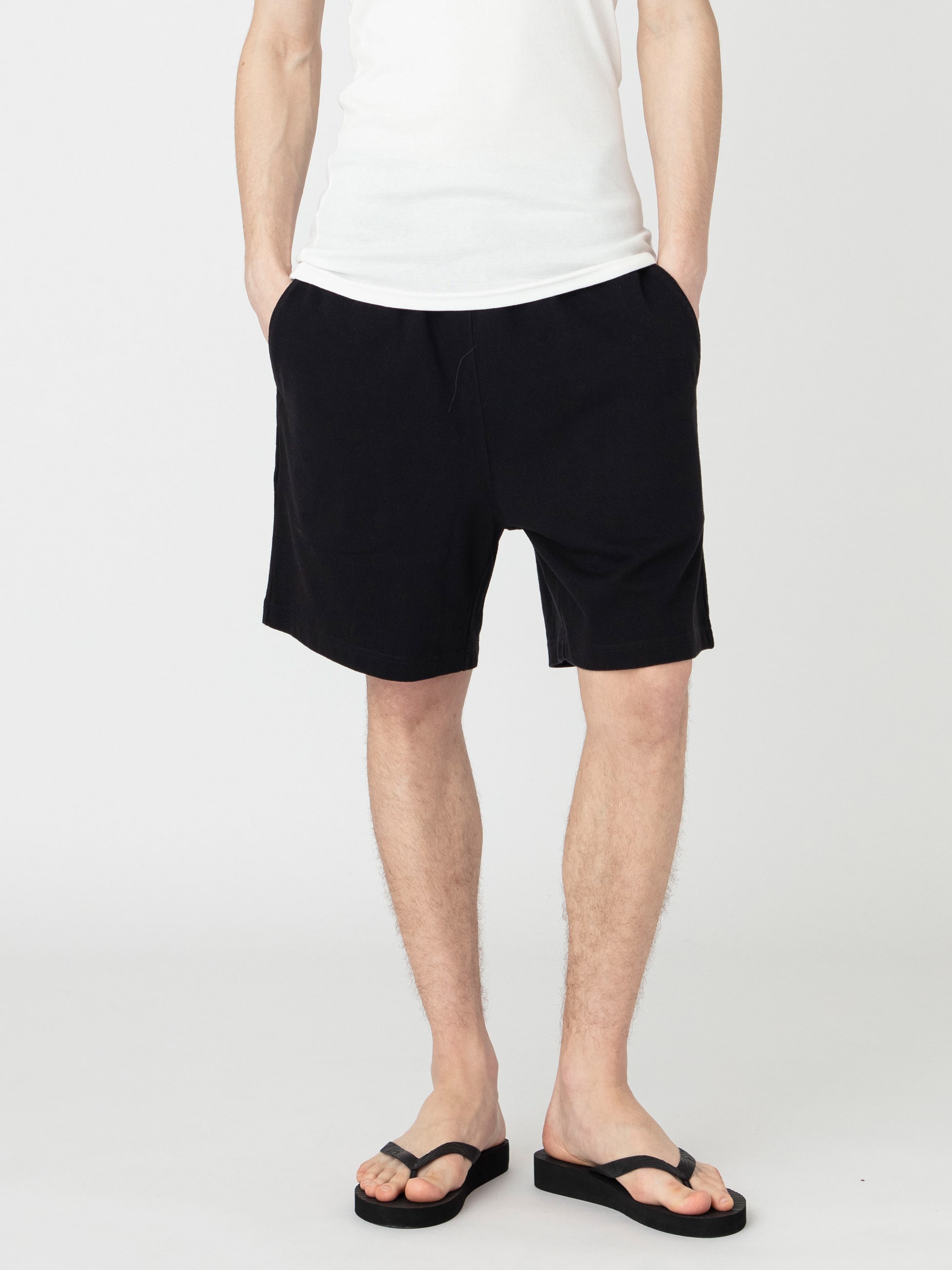 - 天竺素材のショートパンツは、裏地の裏毛ループを無くし、程よく厚みのある生地感とコシがありながらも柔らかな肌触りを兼ね備えた特殊な生地構造が特徴です。また、ベーシックなカラーリングとウエスト部分にゴムを配したイージーな穿き心地や程よくゆったりとしたフィットは、デイリーユースしやすい一着です。
