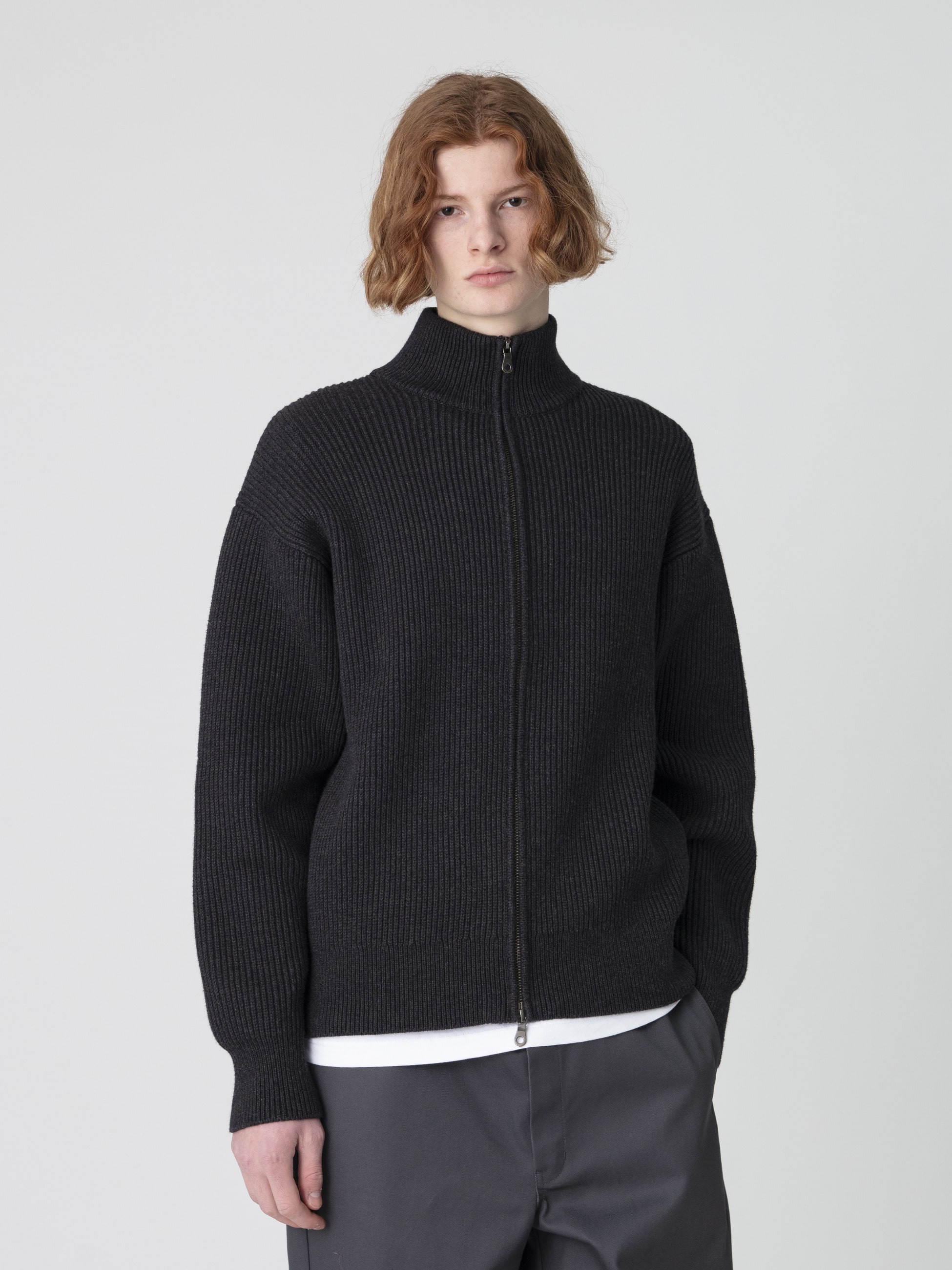 - コットンとカシミア素材にリサイクルポリエステル糸を混ぜて編み上げた生地を使用したドライバーズニットカーディガン。カシミアによる滑らかな肌触りやポリエステル糸による形状安定性に優れた生地が特徴です。また、両畦編みで仕上げた立体的な肉感やもっちりとした風合いも魅力のひとつ。程よくすっきりとしたレギュラーフィットは、様々なコーディネートに合わせやすく、汎用性の高い一着です。