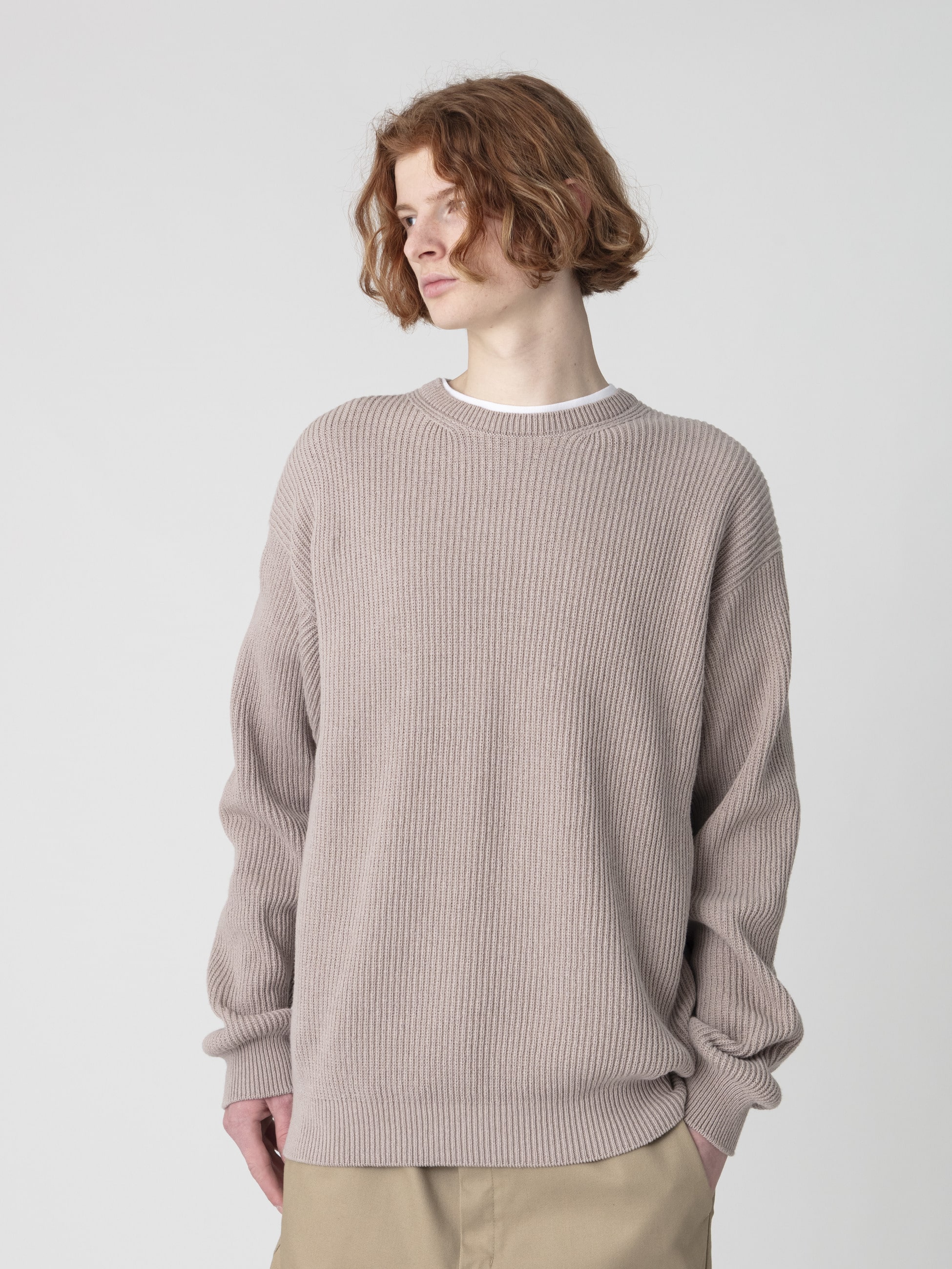- 国内の綿紡績で発生した落ち綿をリサイクルし、強撚をかけた糸を使用したニットプルオーバー。コットン特有のさらっとした風合いと程よく厚みのある生地感が特徴です。シンプルなデザインと程よくゆったりとしたレギュラーフィットは、デイリーユースしやすい一着です。